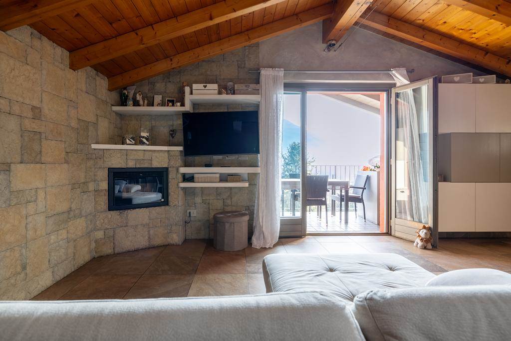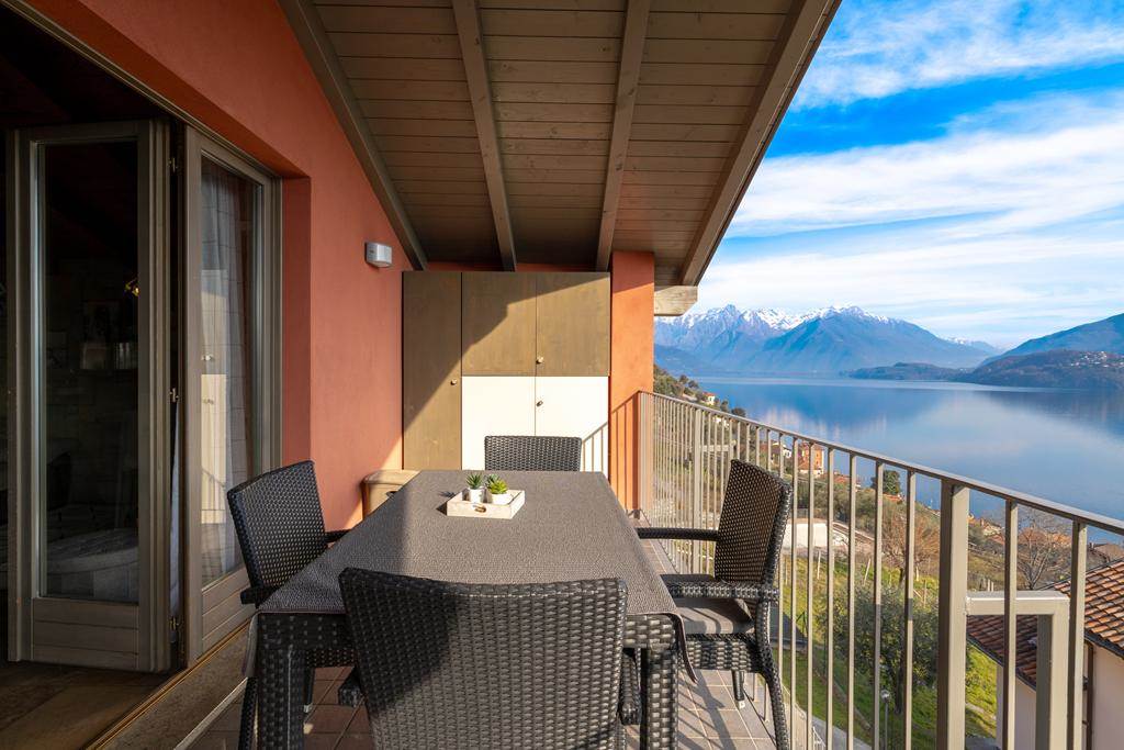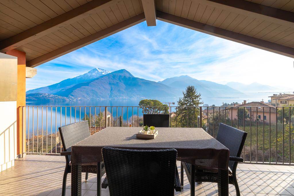 In Musso, op een zonnige locatie met spectaculair uitzicht op het meer, in een vrijstand pand met slechts 5 appartementen. bieden wij een prachtig penthouse van 100 m2 over de gehele bovenverdieping. Het appartement heeft een eigen ingang en is mooi afgewerkt met houten balken in zicht. Vanaf het ruime terras kunt u genieten van het prachtige panoramische uitzicht!