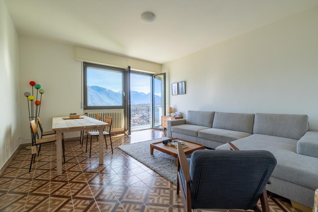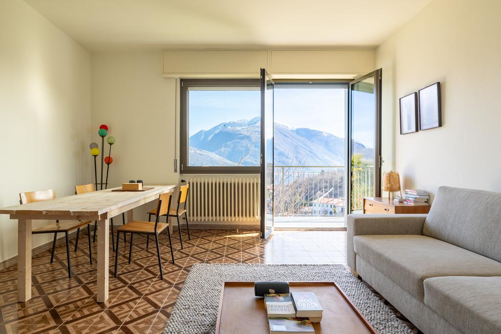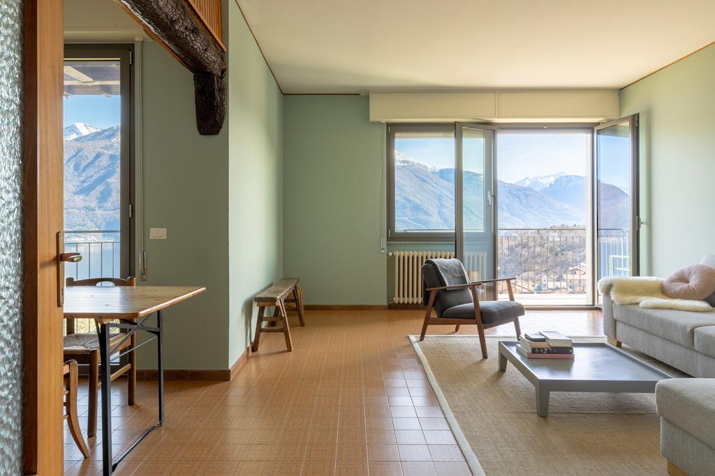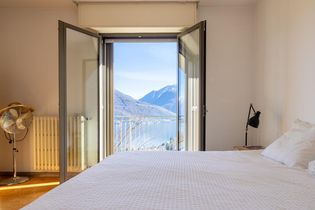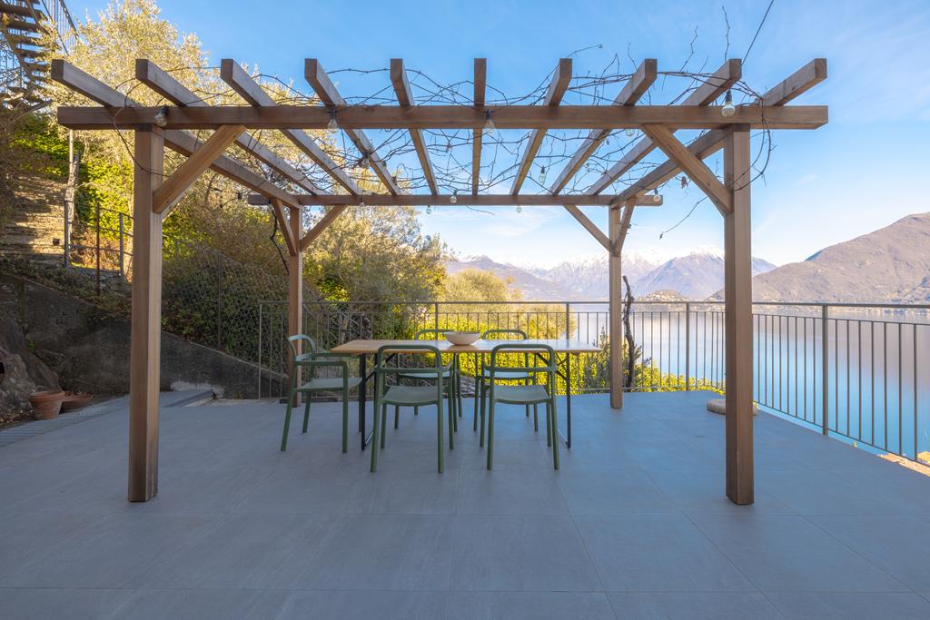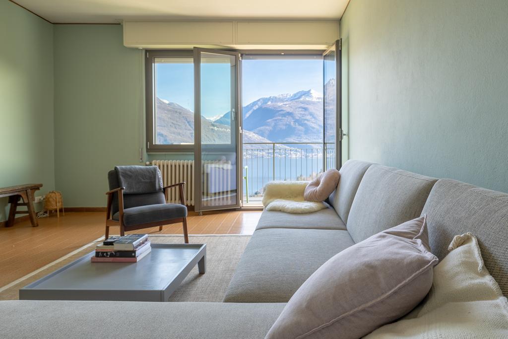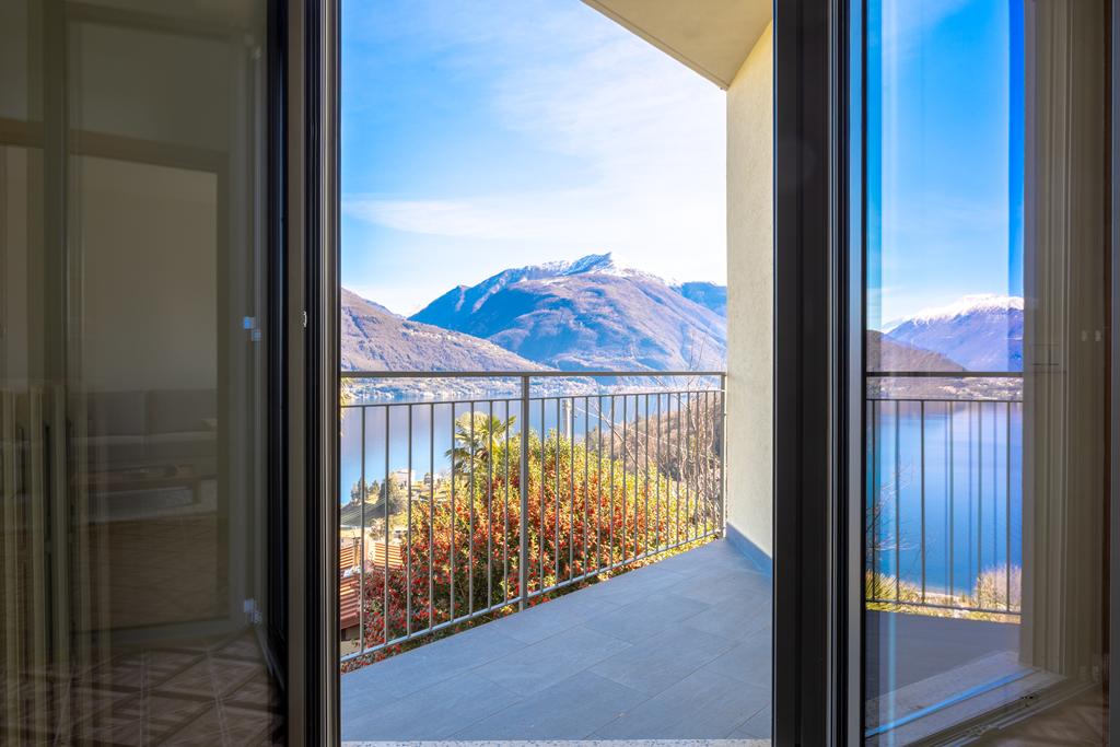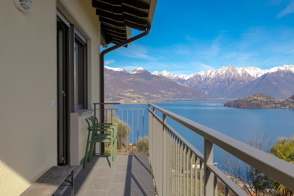 entree, een keuken, een ruime lichte woonkamer met toegang tot het grote balkon met uitzicht over het meer, 2 slaapkamers, 2 badkamers en opbergruimtes. Naast het appartement ligt een prachtig groot terras met pergola, een heerlijke rustige plek met privacy, om te genieten van zwoele zomeravonden aan een lange tafel met familie en vrienden en het onvoorstelbaar mooie uitzicht op het meer en de bergtoppen.