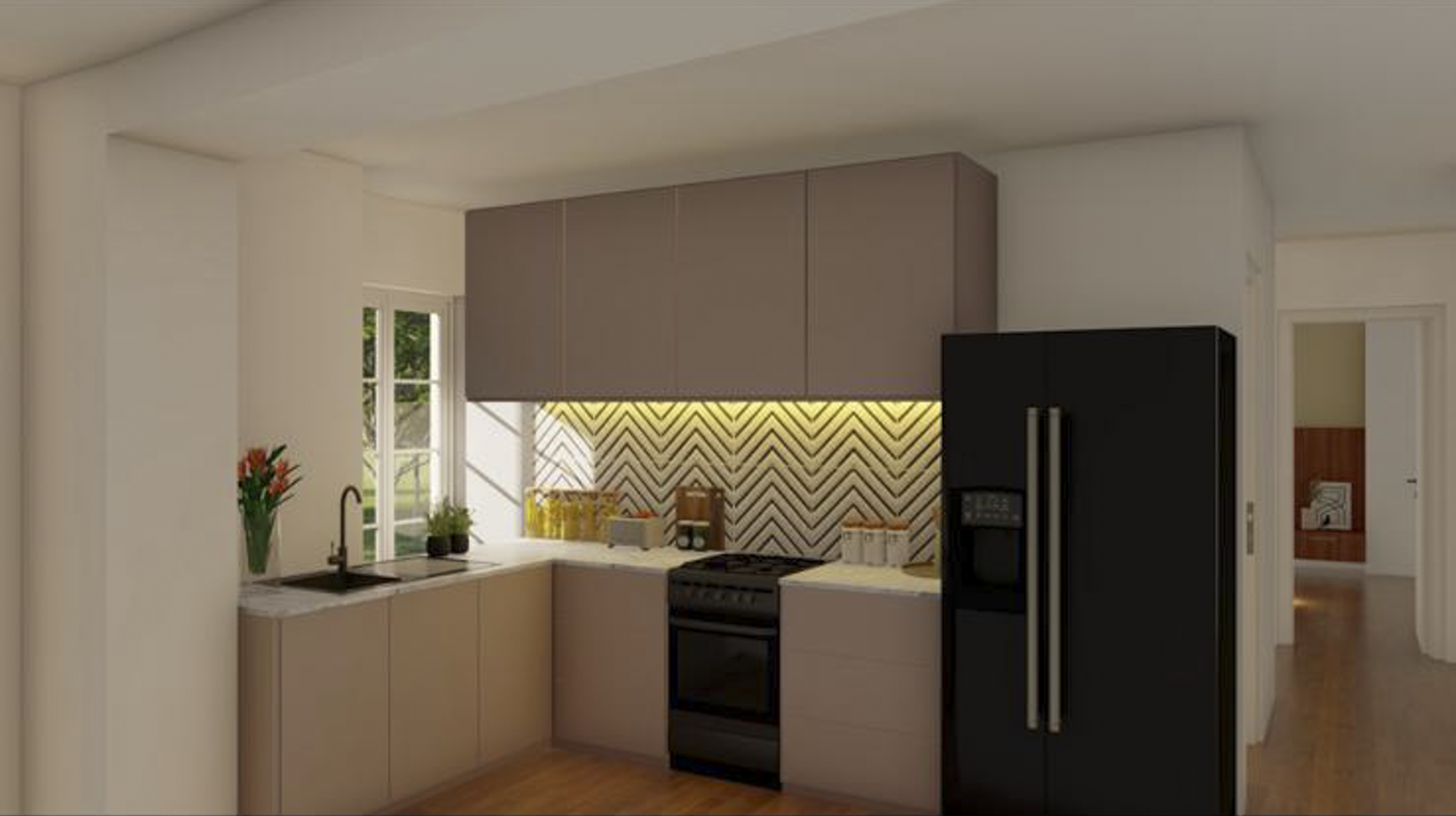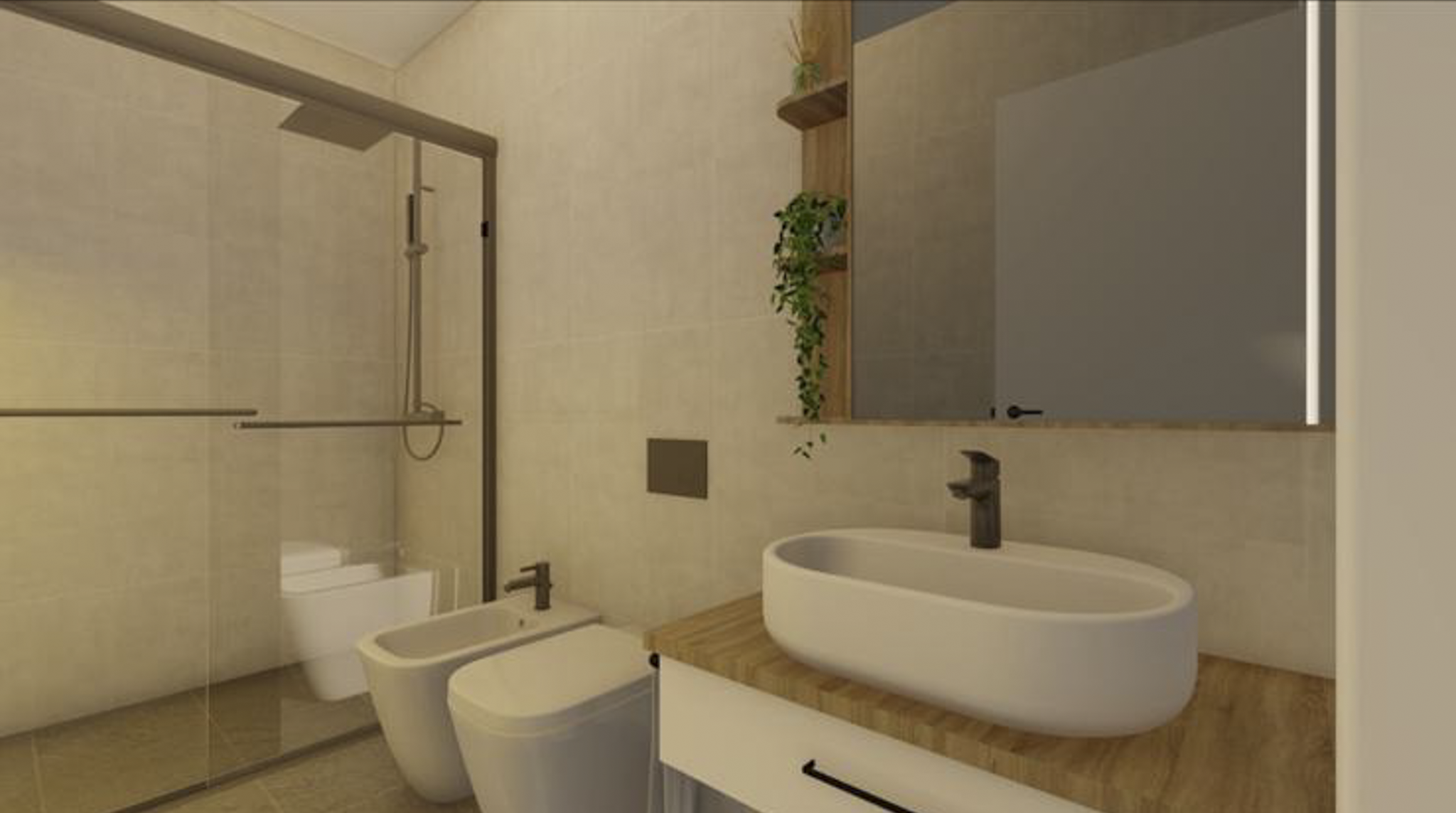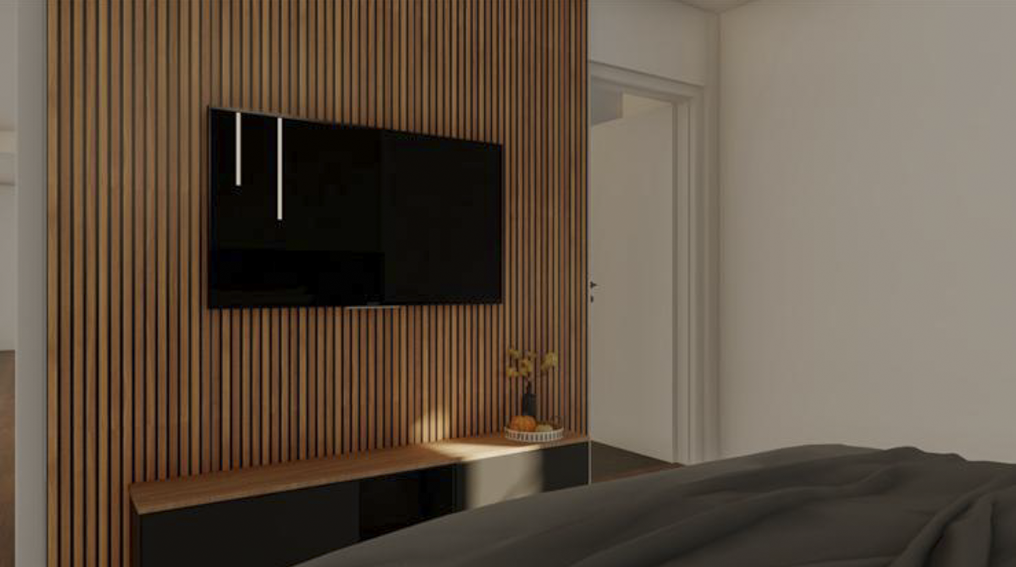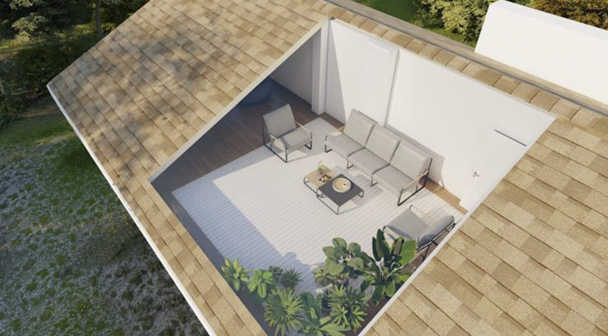 Het appartement is verdeeld over twee verdiepingen: de eerste verdieping beschikt over een lichte woonkamer met open keuken, een badkamer, een slaapkamer en de hoofdslaapkamer met eigen badkamer. Boven is er een grote zolderkamer die kan worden gebruikt als studeerkamer, hobbykamer of extra logeerkamer, waar een dakterras zal worden geplaatst.