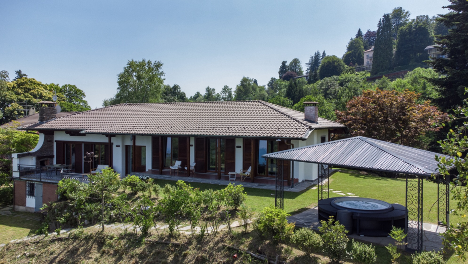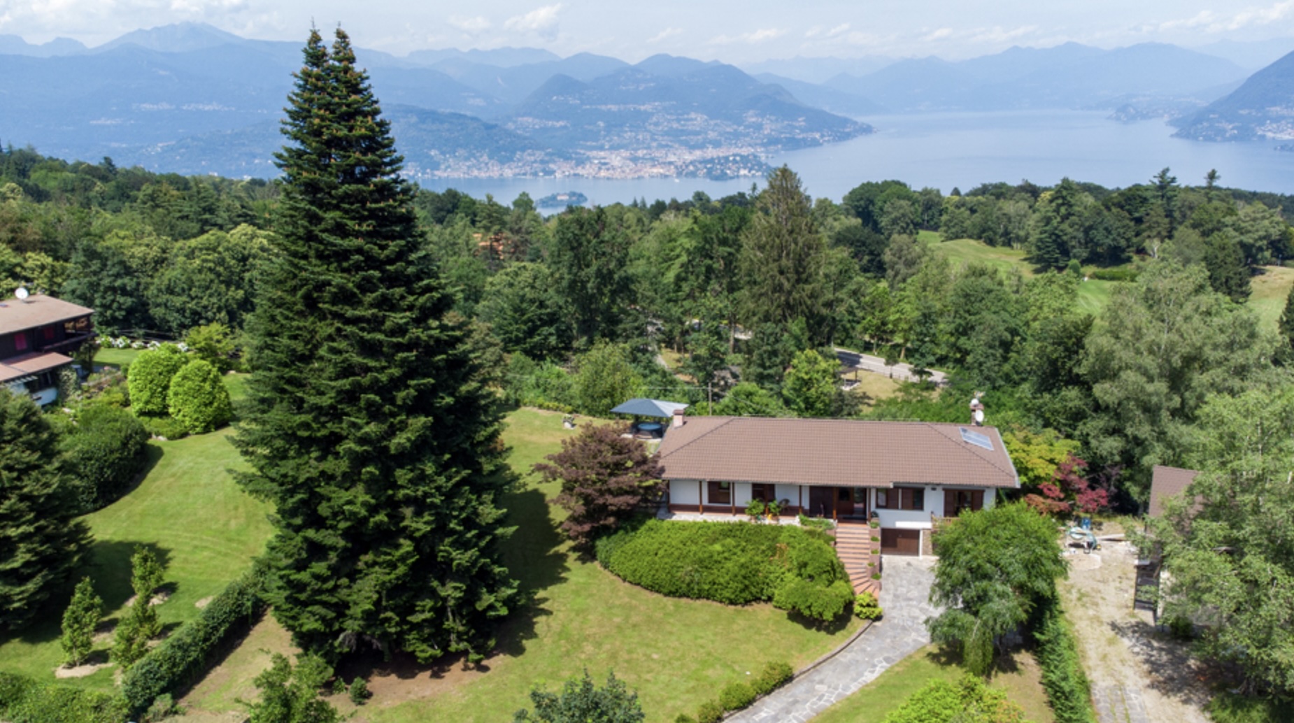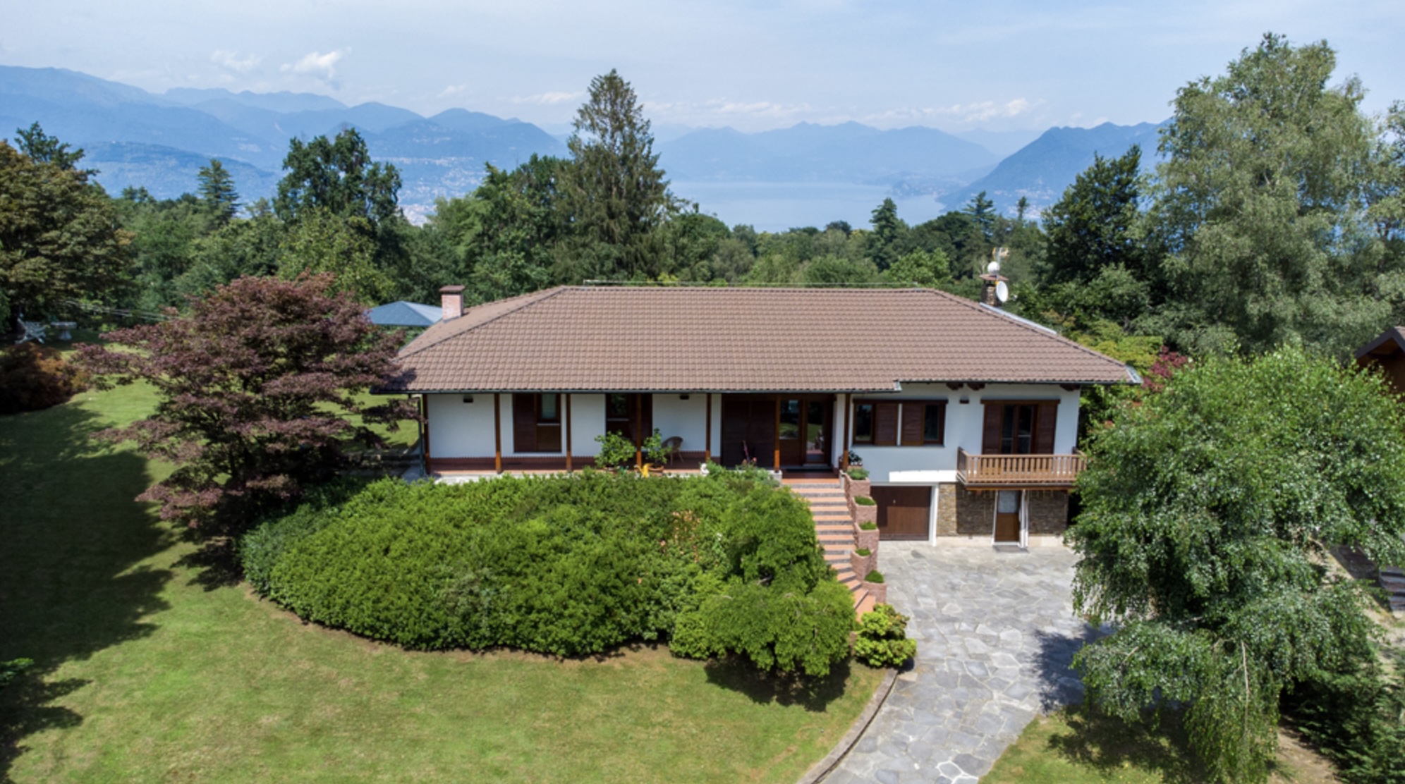 De woning is volledig vrijstaand, heeft een dominante en besloten ligging, maar ligt toch dichtbij het stadscentrum en essentiële voorzieningen. De woning is omgeven door een grote tuin met prachtige hoge bomen en biedt een panoramisch uitzicht op het Lago Maggiore en de omliggende Alpentoppen.