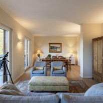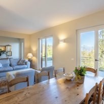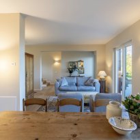 Vanuit de woonkamer leiden enkele treden naar het slaapgedeelte, met een ruime hal met inloopkast. Deze leidt naar een tweepersoonsslaapkamer, een eenpersoonsslaapkamer en een badkamer, terwijl de hoofdslaapkamer een eigen ensuite badkamer heeft. Alle woon- en slaapvertrekken hebben toegang tot de tuin via grote openslaande deuren die uitkomen op comfortabele veranda's.