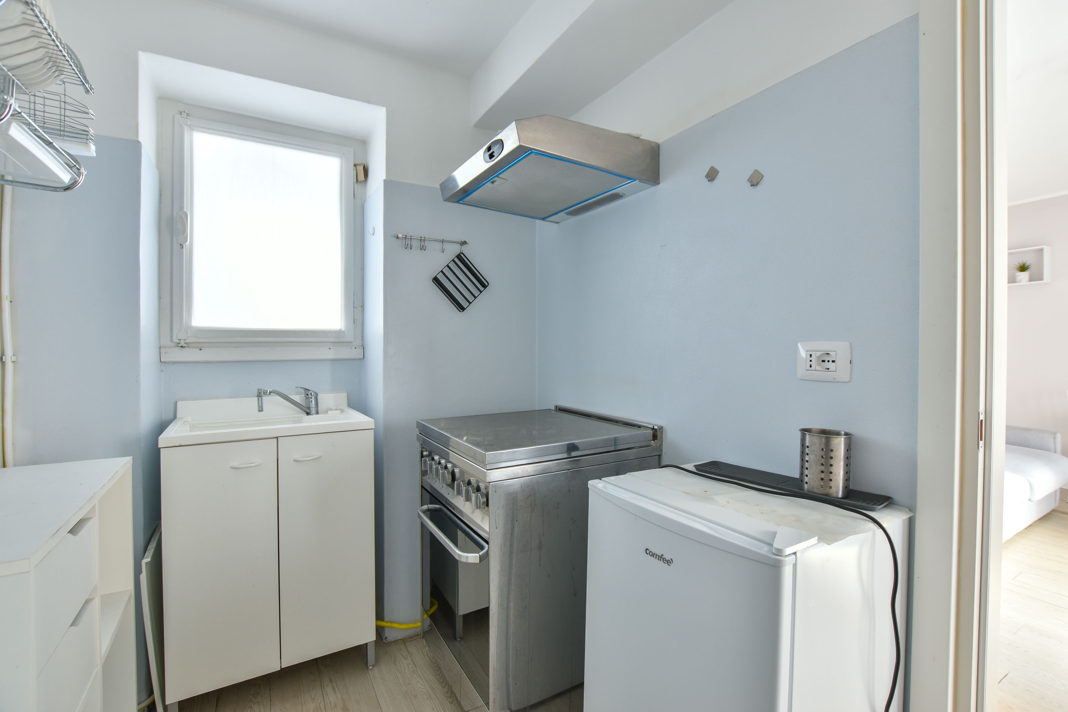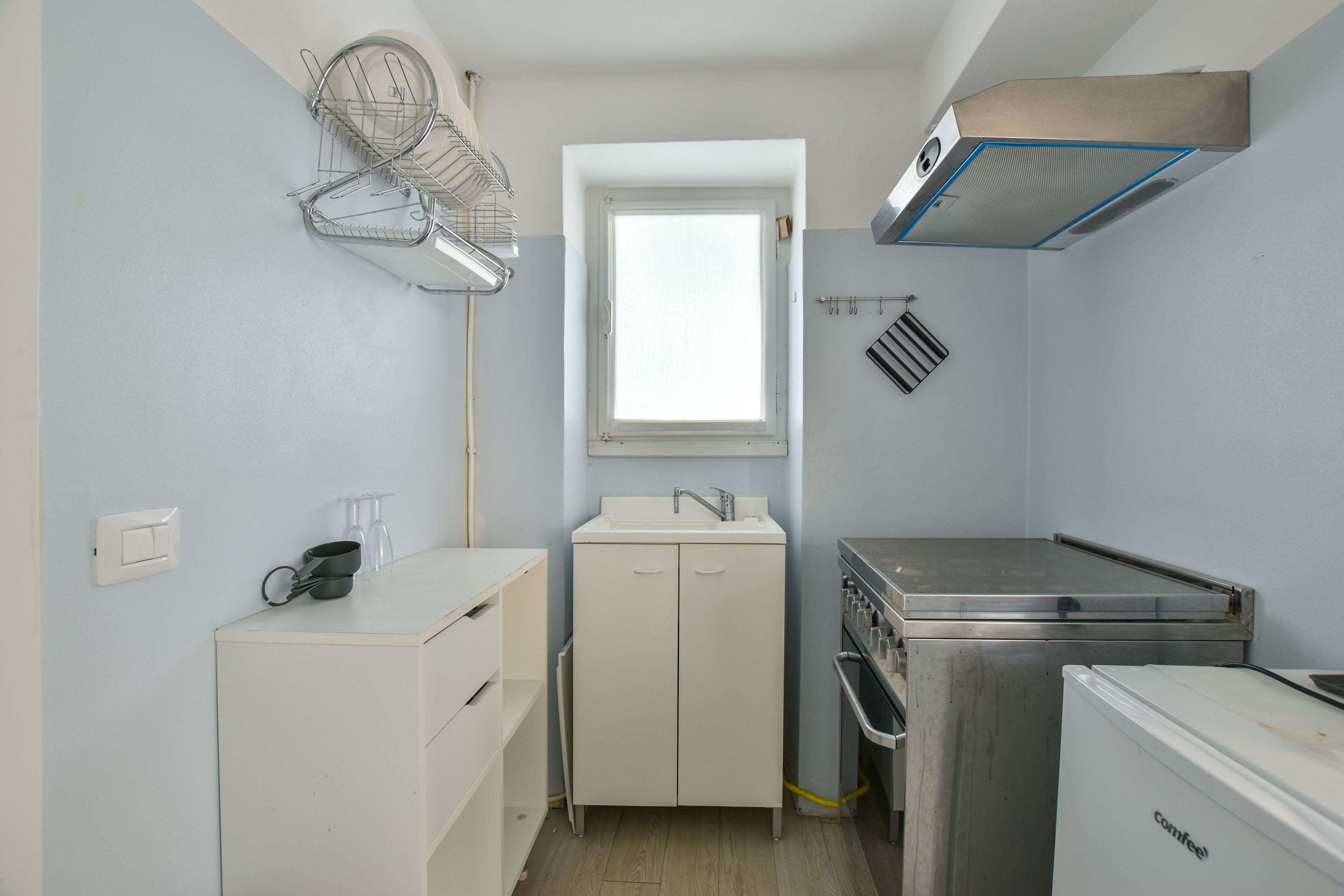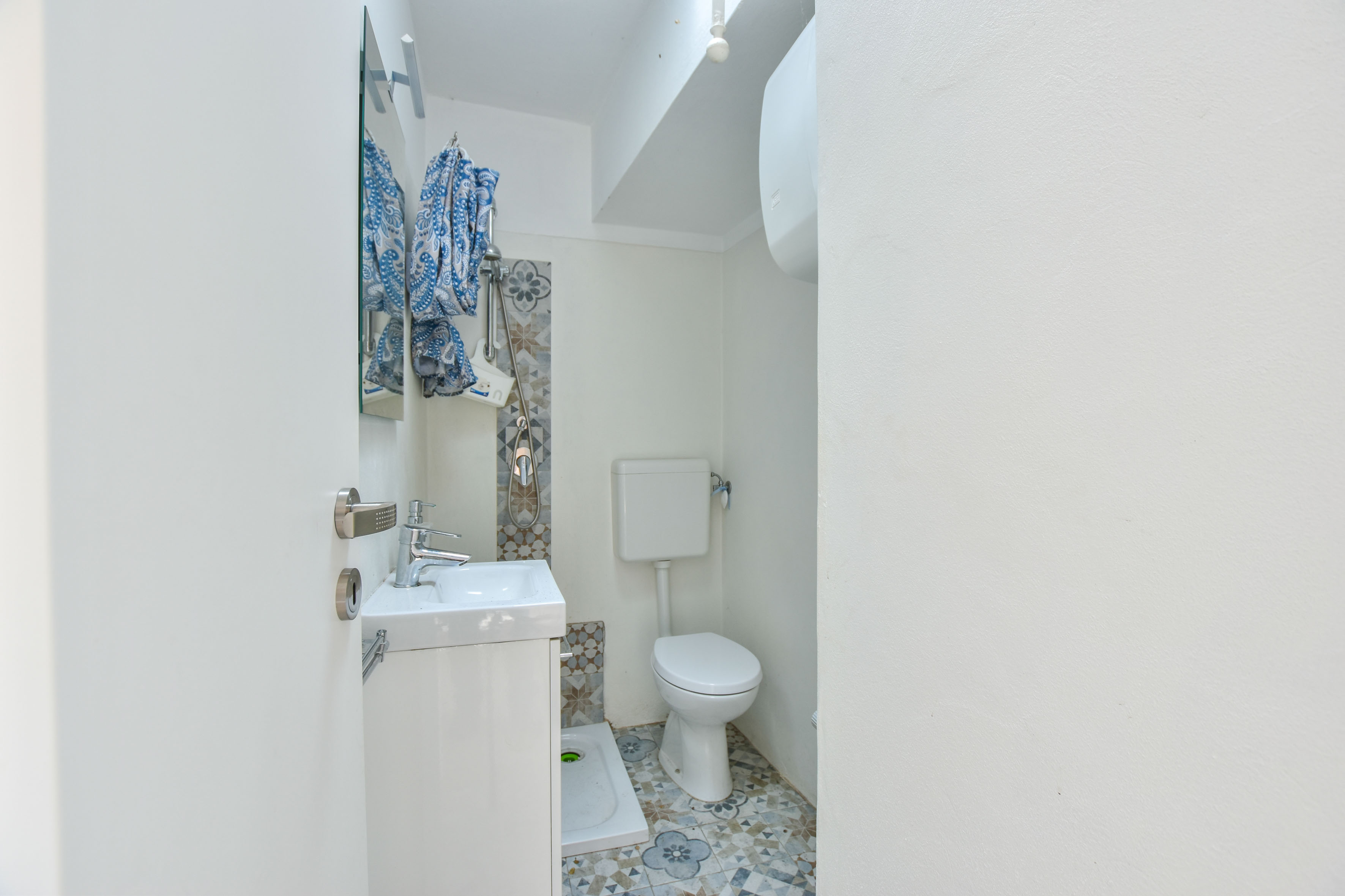 De woning strekt zich uit over meerdere niveaus. Op de eerste verdieping bevindt zich een appartement met een kleine woonkamer, een aparte keuken, twee slaapkamers en een badkamer met douche. Buiten beschikt deze unit over een klein terras, ingericht als ontspanningsruimte.