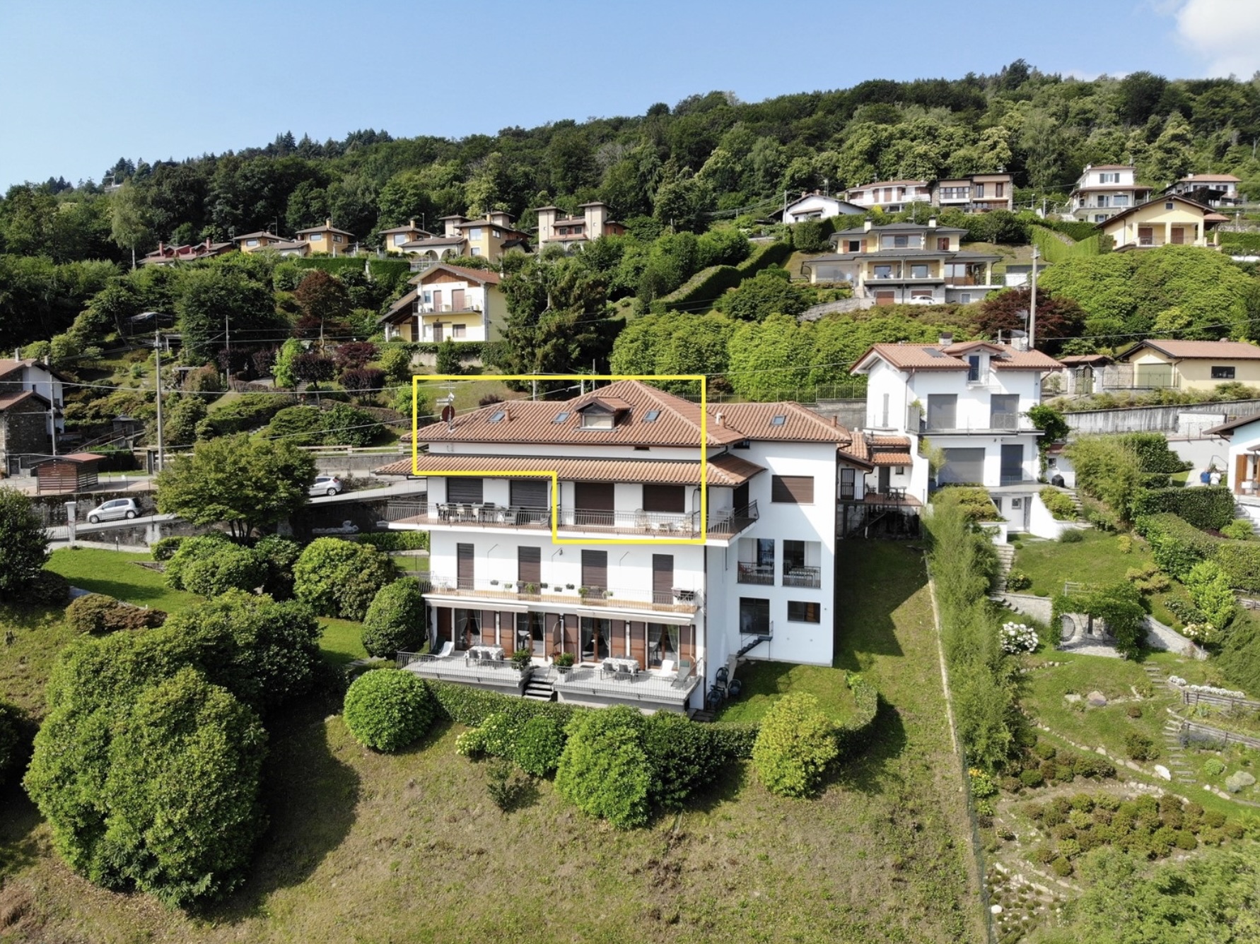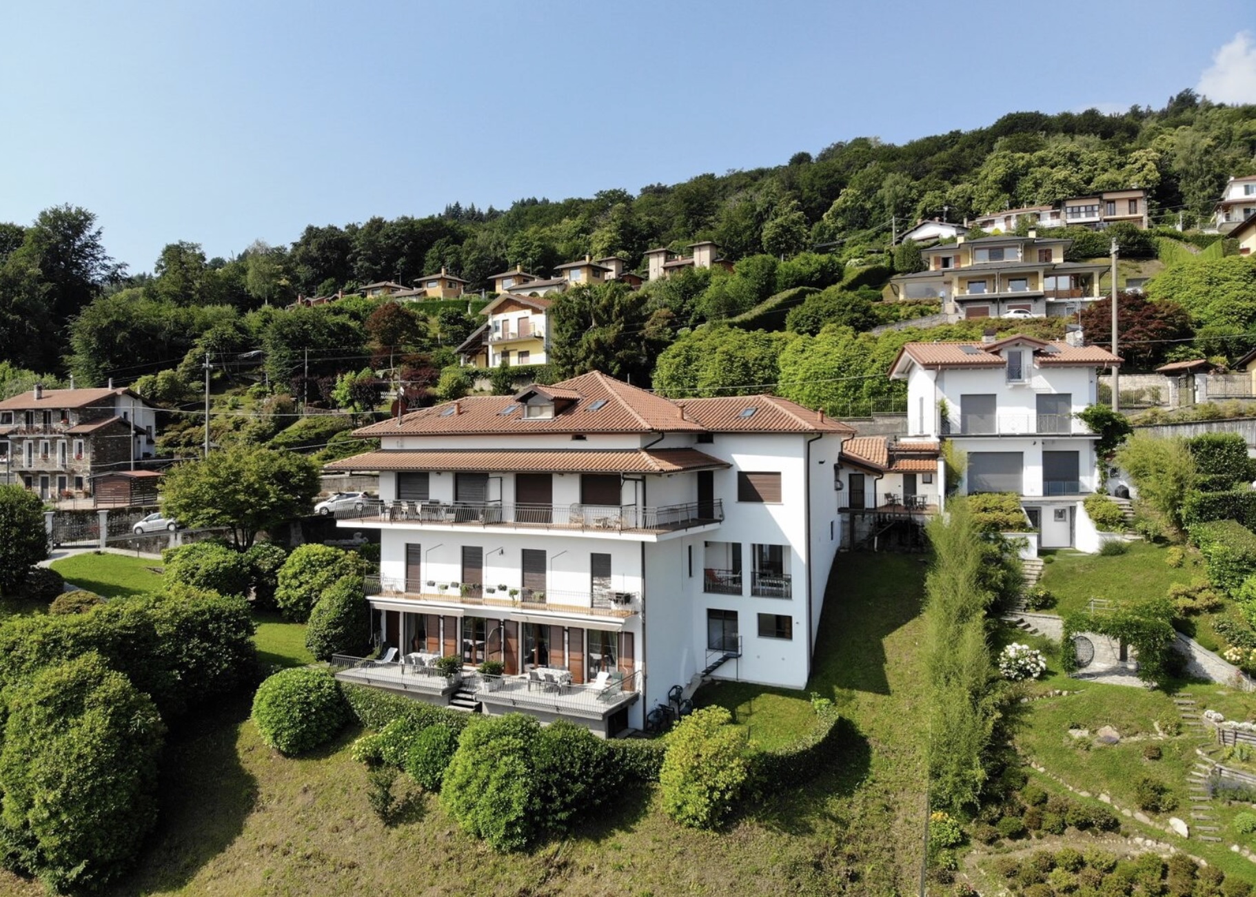 Op de eerste heuvels boven Stresa, de parel van het Lago Maggiore, in het dorpje Levo, staat dit mooie appartement met adembenemend uitzicht op het meer te koop.