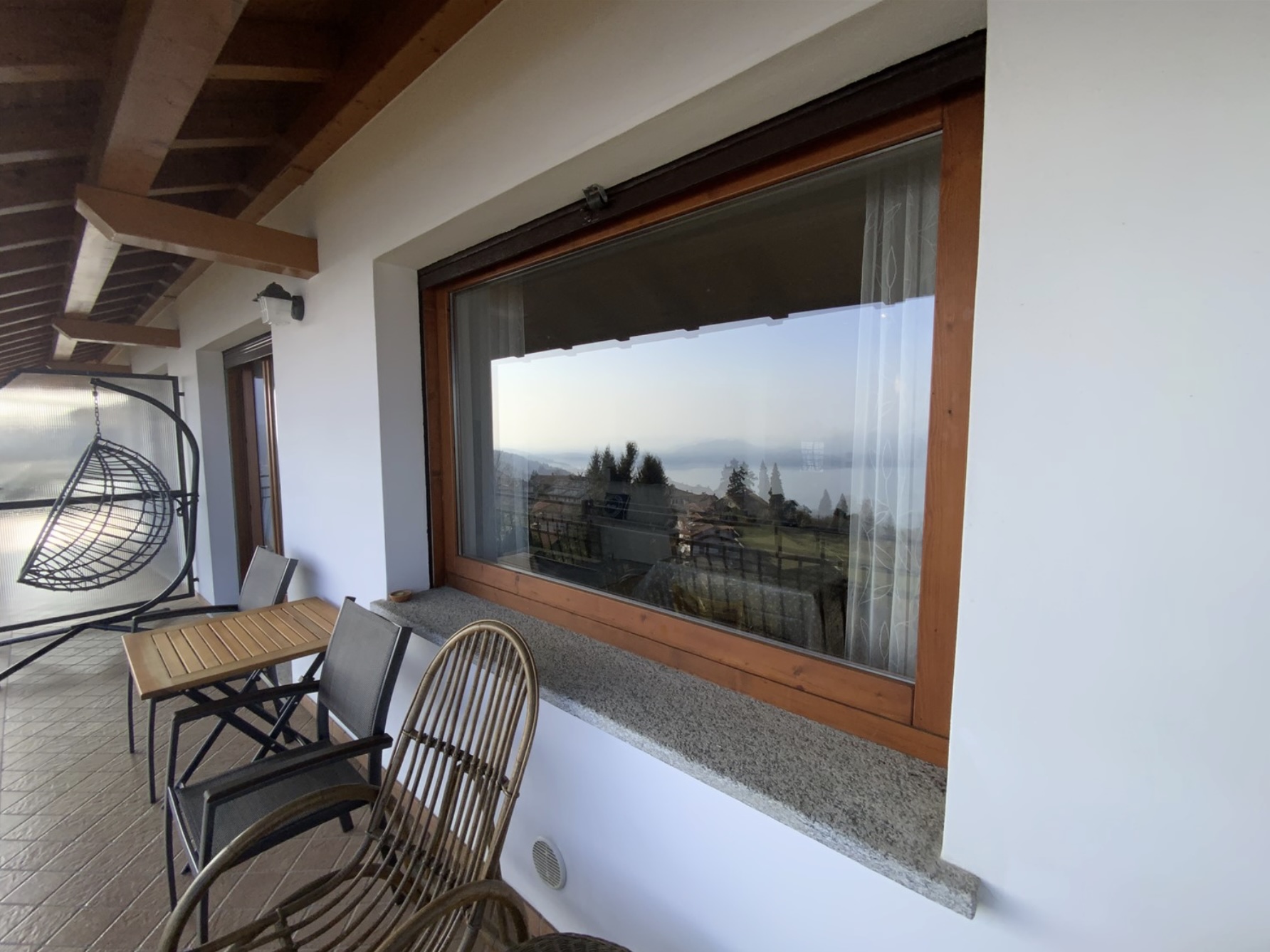De indeling is als volgt: via een gezamenlijk pad bereikt u een kleine binnenplaats. Onder een fraai overdekt portiek bevindt zich de entree naar de ruime woonkamer met open keuken. Vanuit de woonkamer heeft u toegang tot een balkon waar u kunt genieten van een schitterend uitzicht over het Lago Maggiore en de Borromeïsche eilanden. Op deze verdieping bevindt zich tevens een comfortabele badkamer.