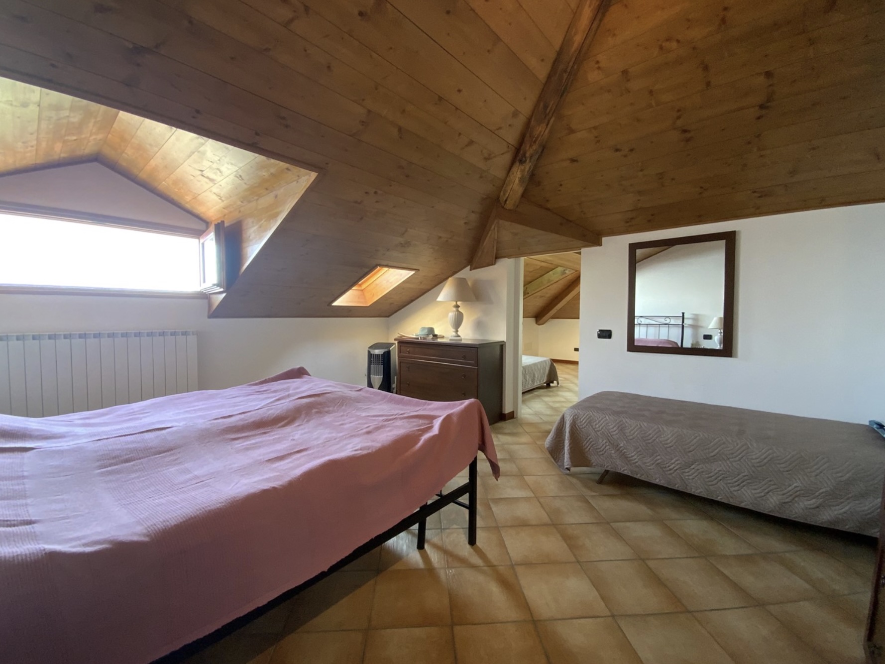 Via een interne trap bereikt u de zolderverdieping, waar zich twee ruime slaapkamers bevinden, een badkamer met zowel ligbad als douche, een extra zolderruimte en een wasruimte.