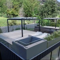 Een exclusieve buitenruimte op het dak van de woning, ideaal voor ontspanning en genieten van het uitzicht, voorzien van een solarium en een jacuzzi.