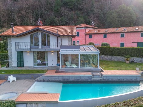 Exclusieve panoramische villa met infinity pool aan het Lago Maggiore In het prestigieuze en rustige Brezzo di Bedero bieden wij deze uitzonderlijke moderne villa te koop aan, gelegen op een dominante en volledig private locatie met een adembenemend, vrij uitzicht over het Lago Maggiore. Een residentiële omgeving van hoog niveau, waar rust, privacy en comfort samenkomen, op korte afstand van alle essentiële voorzieningen. De villa strekt zich uit over drie verdiepingen en werd volledig gerenoveerd in 2012, met bijkomende verfijningen en technologische upgrades in de daaropvolgende jaren. Vandaag presenteert de woning zich in perfecte staat en is zij volledig instapklaar.