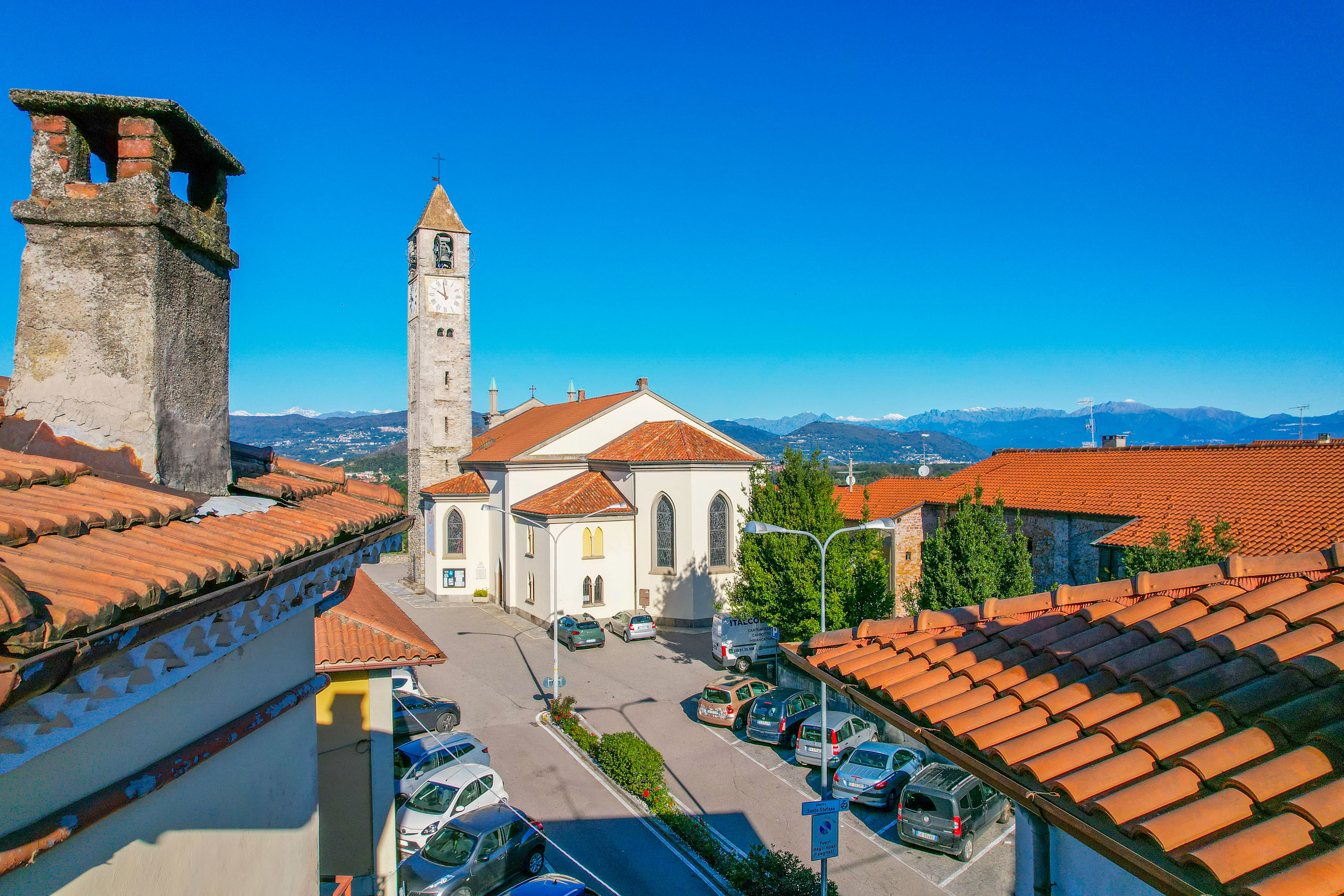 De centrale ligging garandeert het gemak van het dorpsleven, met een open uitzicht op het kerkje en de Rocca di Angera in de verte, in een rustige en goed onderhouden omgeving.