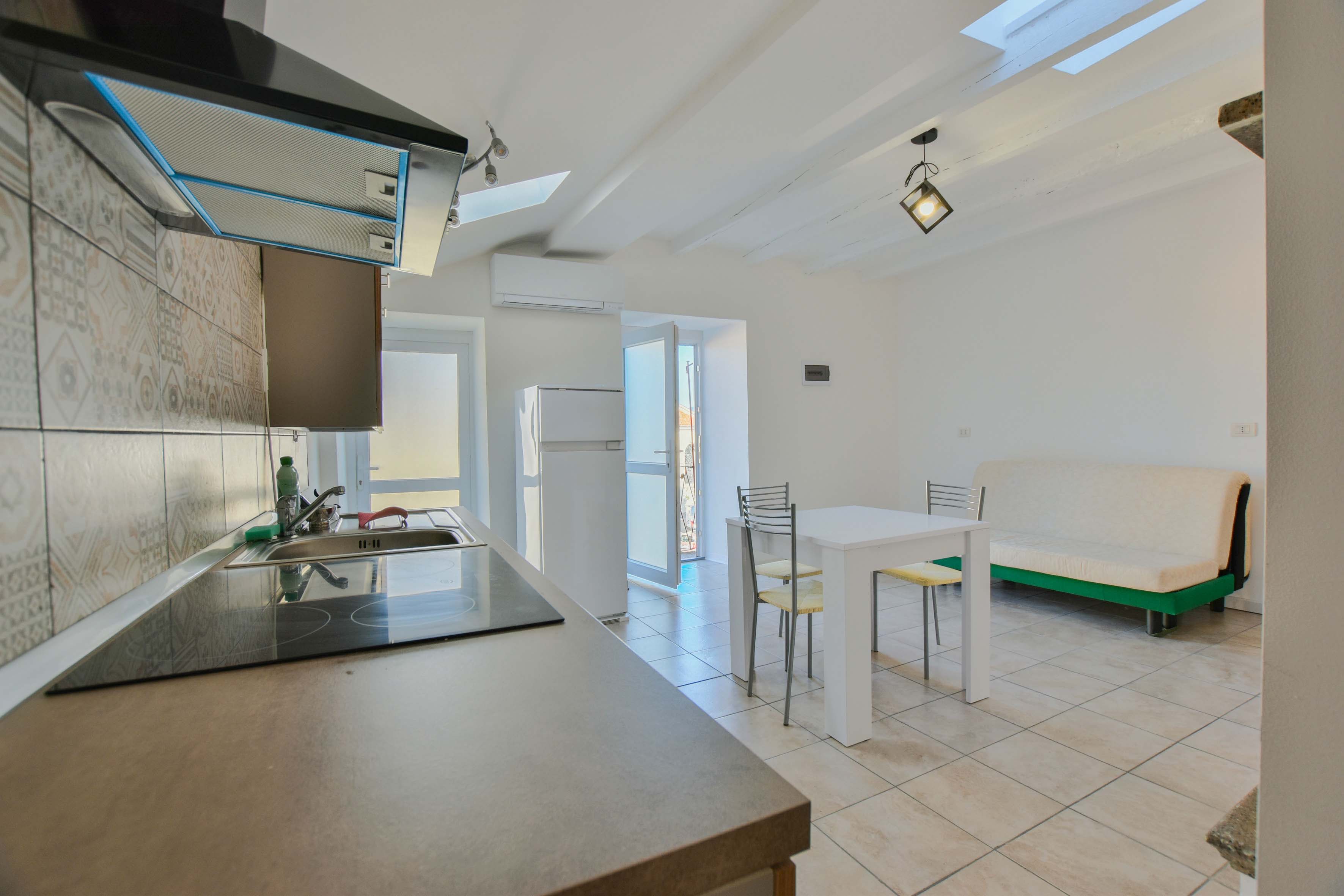 De woning, die dateert uit het begin van de 20e eeuw en in de loop der jaren is onderhouden, bestaat uit een lichte woonkamer met een open keuken en toegang tot een klein balkon met uitzicht op het plein, een gezellige slaapkamer en een badkamer met douche.