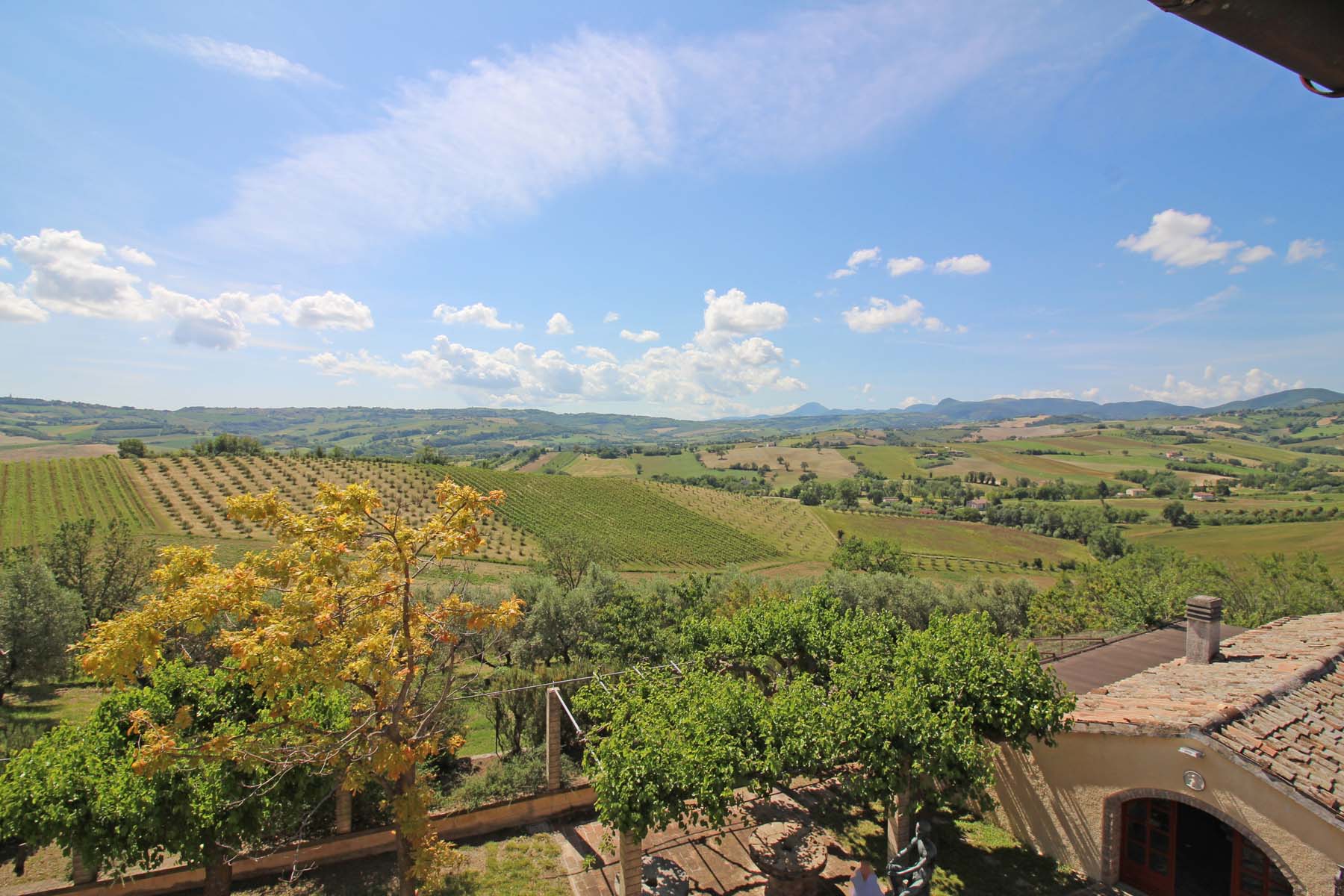 Te koop: dit prestigieuze landgoed bestaande uit een woonhuis, zwembad, diverse bijgebouwen en houtoven, met een totaaloppervlak van ca. 623 m². De woning zelf is verdeeld over 3 verdiepingen. Het erf is omheind en beslaat een oppervlak van ca. 3.000 m². Gesitueerd op een adembenemende positie in het hart van Le Marche, is de ligging van het landgoed uitzonderlijk te noemen: een perfecte balans tussen natuur, rust en landschap, met een open uitzicht dat de omgeving domineert.