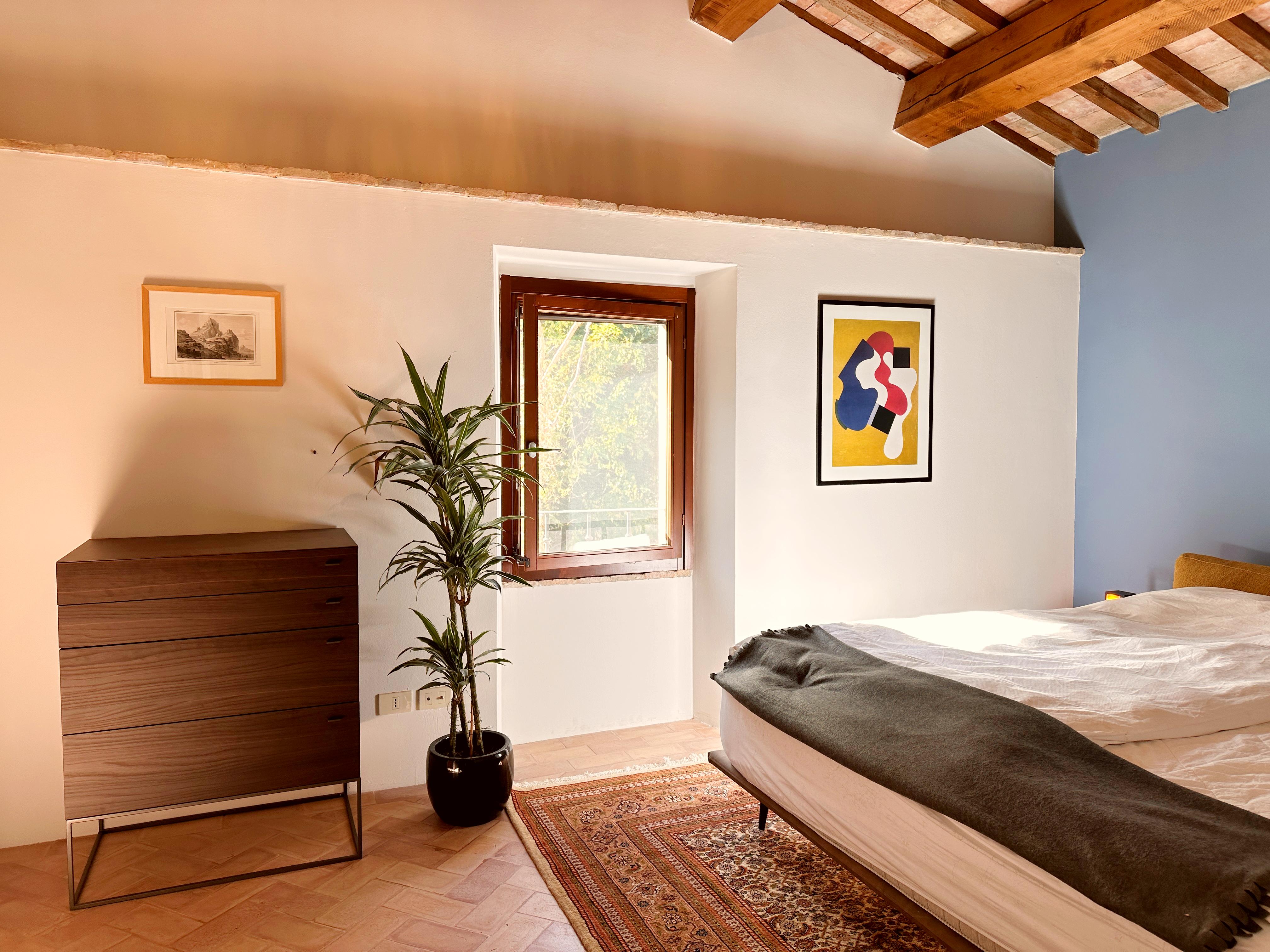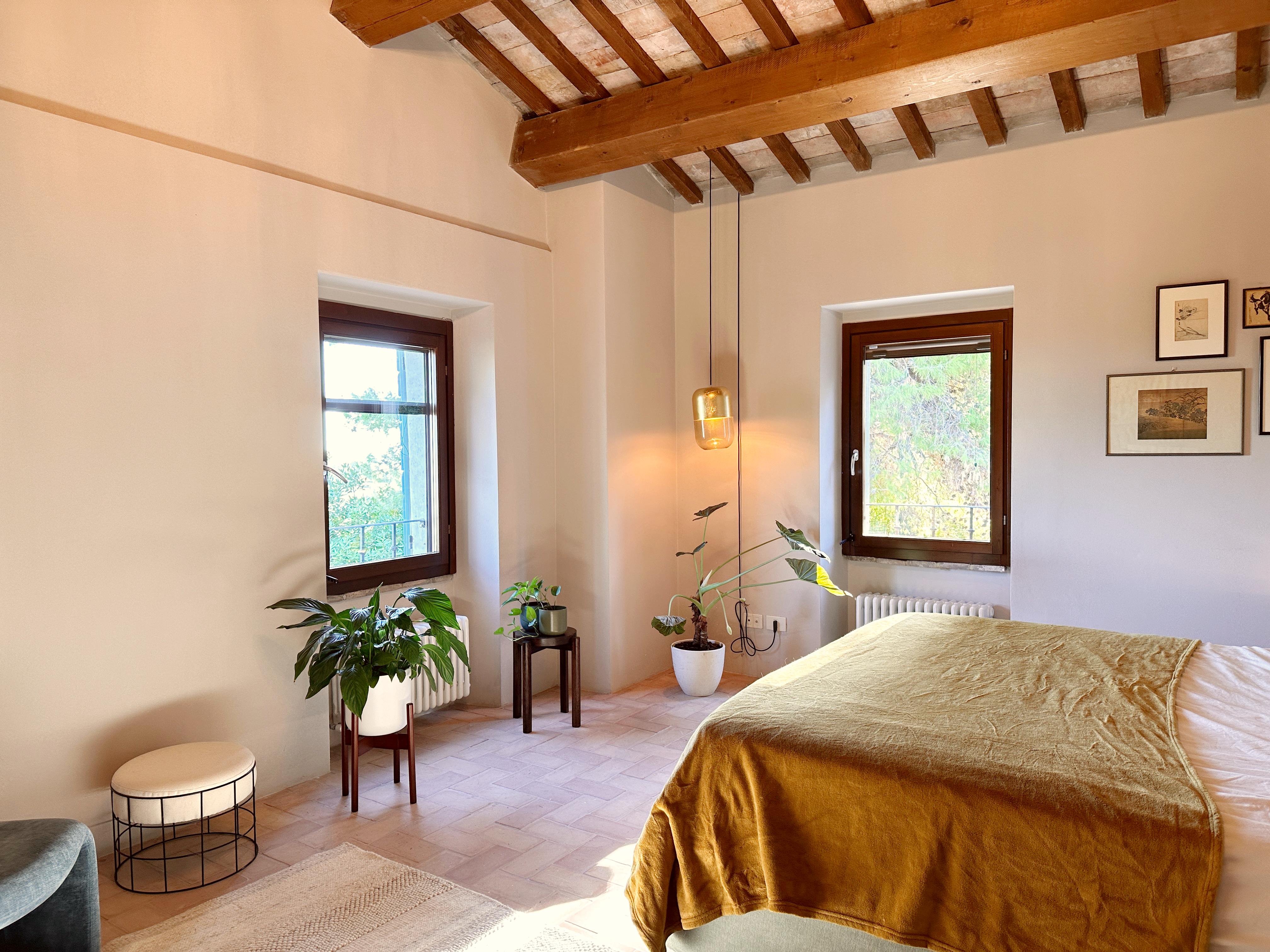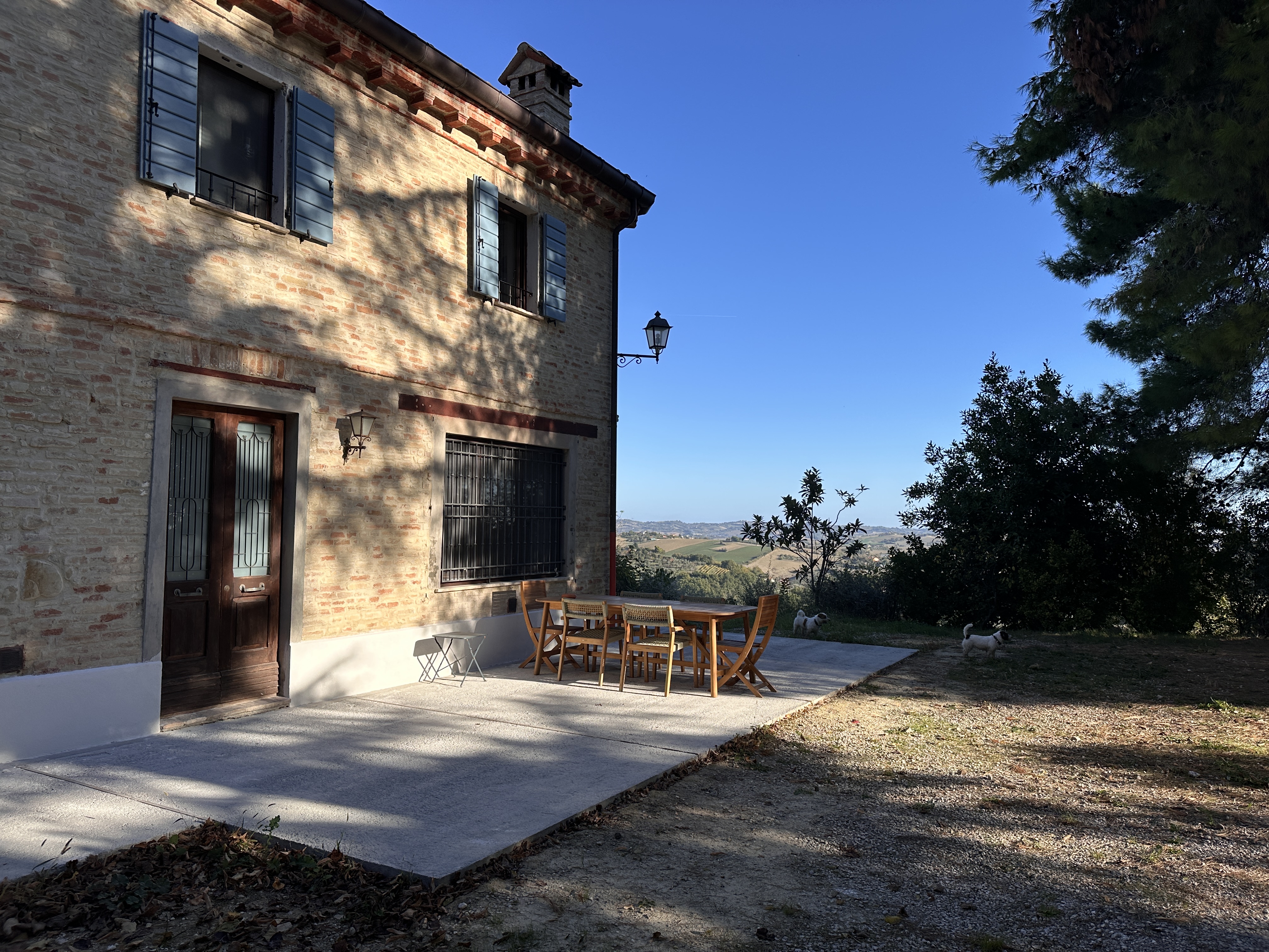Dit prachtige stenen landhuis met adembenemend uitzicht ligt midden in het schilderachtige heuvellandschap waar Le Marche om bekendstaat. Het werd in 2009 volledig gerestaureerd, in 2024 verder gemoderniseerd, en bevindt zich op slechts 3 km van het idyllische dorpje Cartoceto, 17 km van de levendige kustplaats Fano en 8 km van de superstrada – een ideale uitvalsbasis om deze betoverende regio te verkennen.
