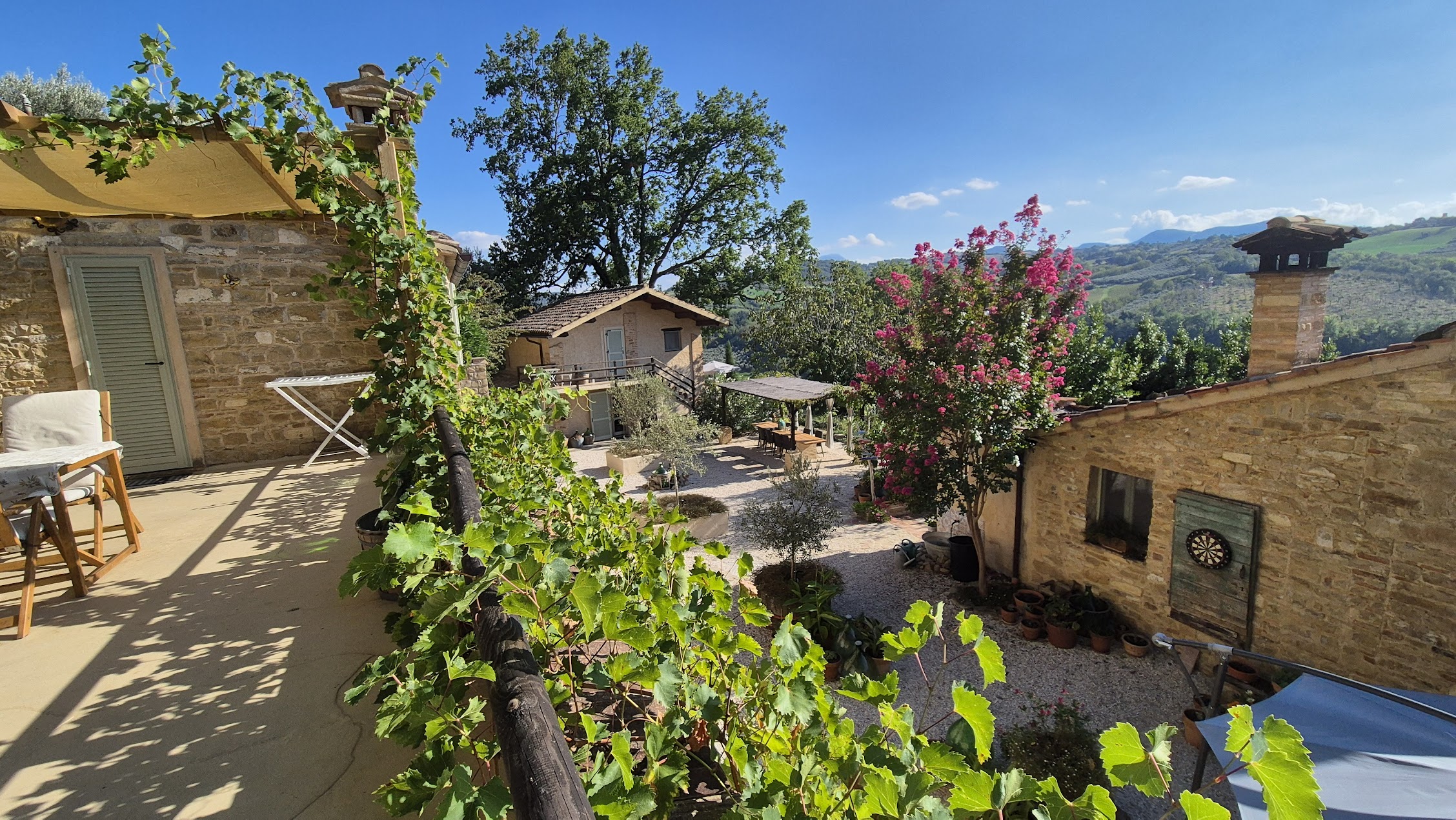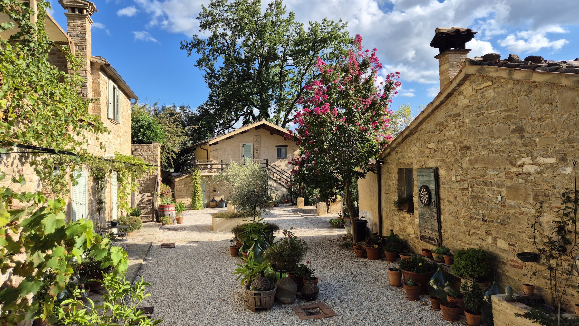 Nét buiten het historische centrum van het pittoreske Cupramontana is dit unieke object te koop: een zeer succesvol en makkelijk te bereiken toeristische activiteit ("gastenverblijf"), privé gelegen met vrij uitzicht over de vallei tot aan de Apennijnen. Deze borgo was ooit een boerderij, de 3 gebouwen (totaal oppervlak 283 m²) zijn getransformeerd tot een sfeervol complex waar rondom de binnenplaats de 3 gastenverblijven en de hoofdwoning zijn gesitueerd. De authentieke elementen (balkenplafonds, cotto-vloeren) zijn gecombineerd met een hedendaagse inrichting en comfort, de locatie is schitterend!