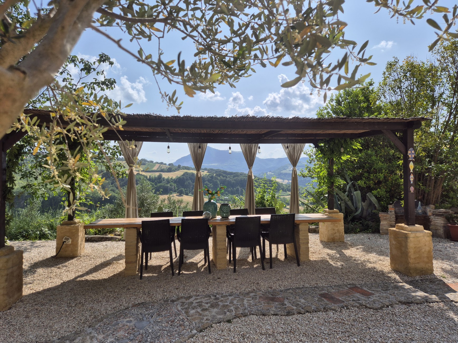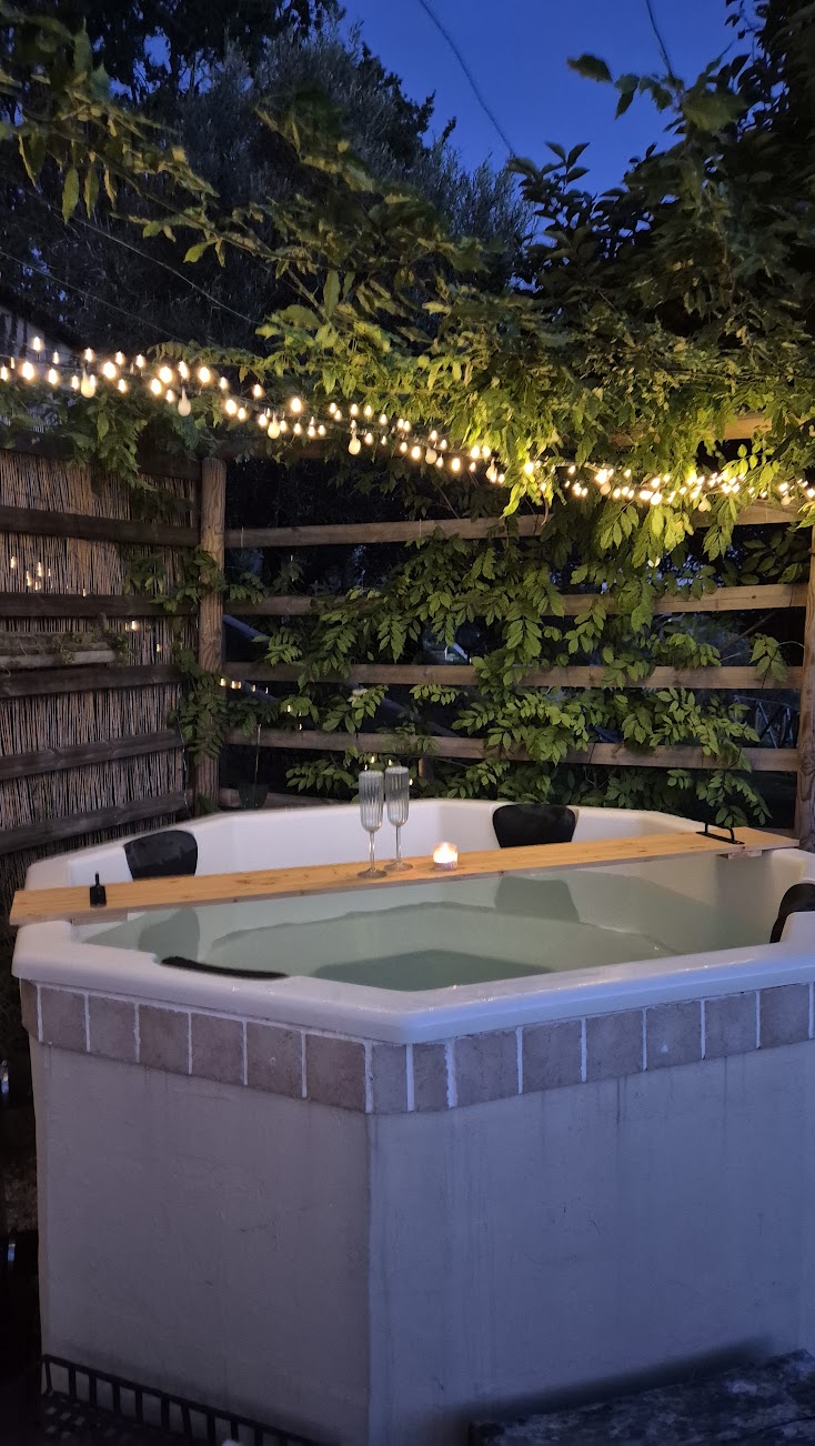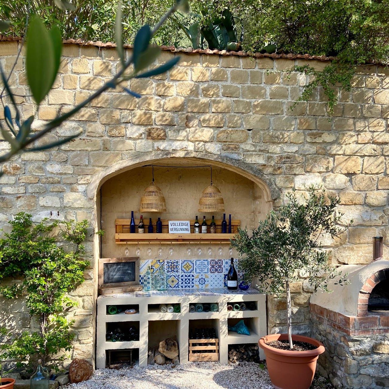 Tuin: Het terrein heeft een grootte van circa 3.000 m², de sfeervolle tuin op verschillende niveaus heeft diverse terrassen met zon- en schaduwplekken, een diversiteit aan bloemen en gevarieerde begroeiing, zoals olijfbomen, pruimen-, kiwi-, noten-, kaki-, mandarijn- en citroenbomen. Ovaal zwembad (4 x 8 m) met buitendouche, hout gestookte hot tub, schuur/berging, laundry, klein gastenwinkeltje, sfeervolle binnenplaats met overdekt gedeelte en lange eettafel.