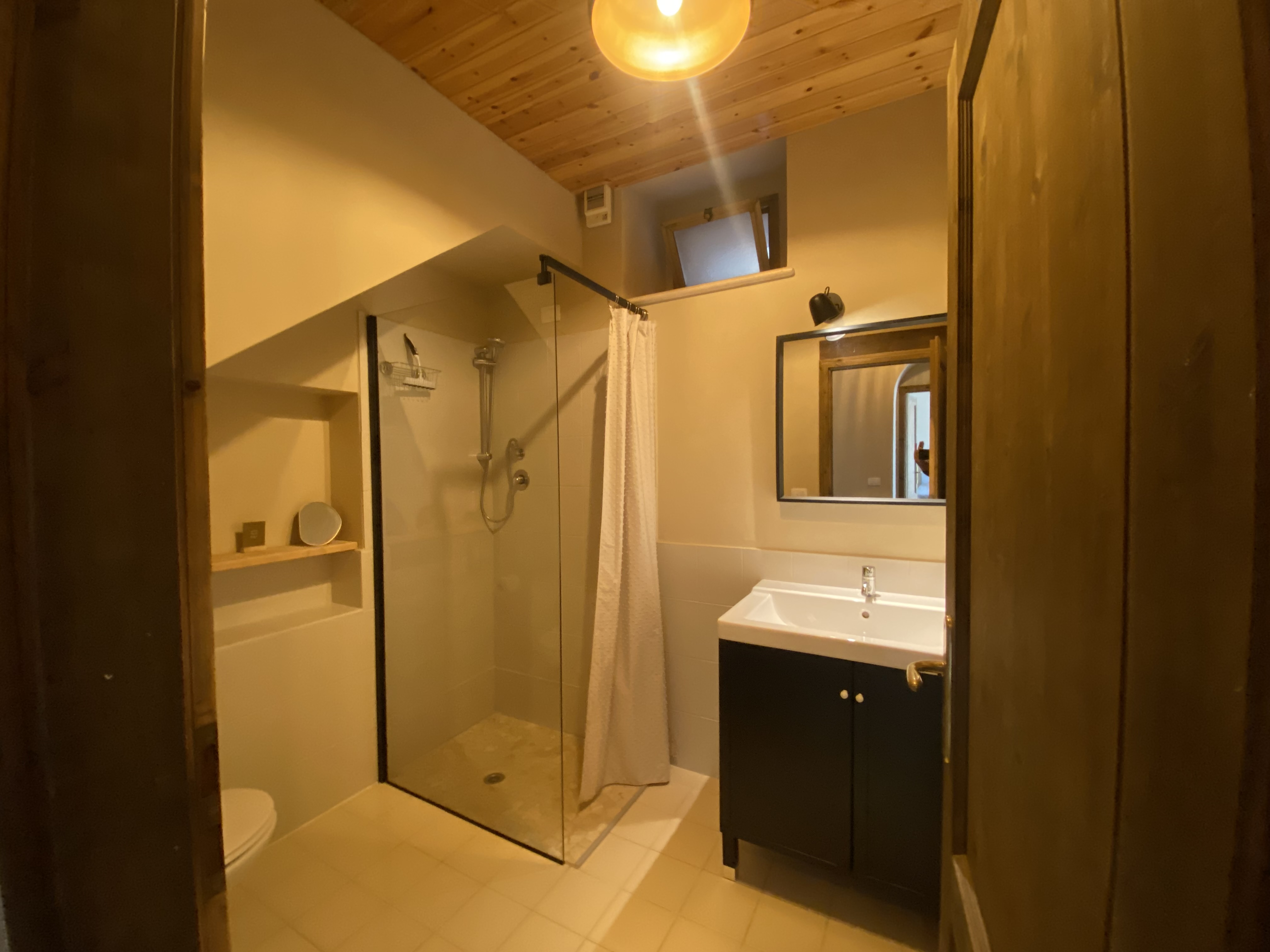 Woning eigenaars: Woonoppervlak circa 60 m², hal, ruime woonkeuken met houtkachel en c.v., woonkamer met toegang tot een fantastisch panoramisch terras, slaapkamer en badkamer met c.v.