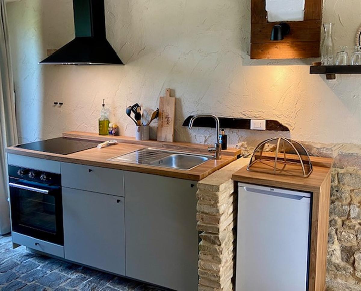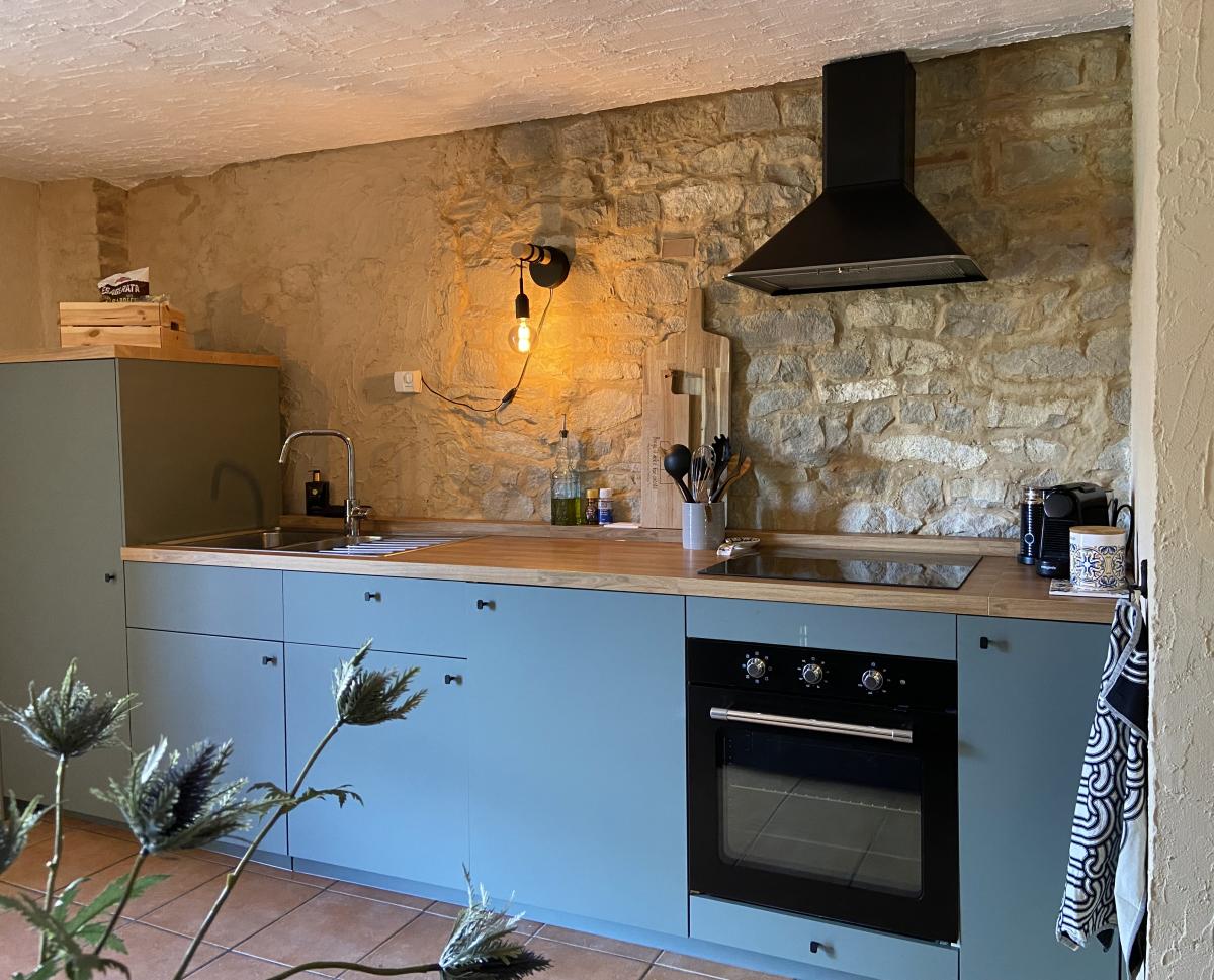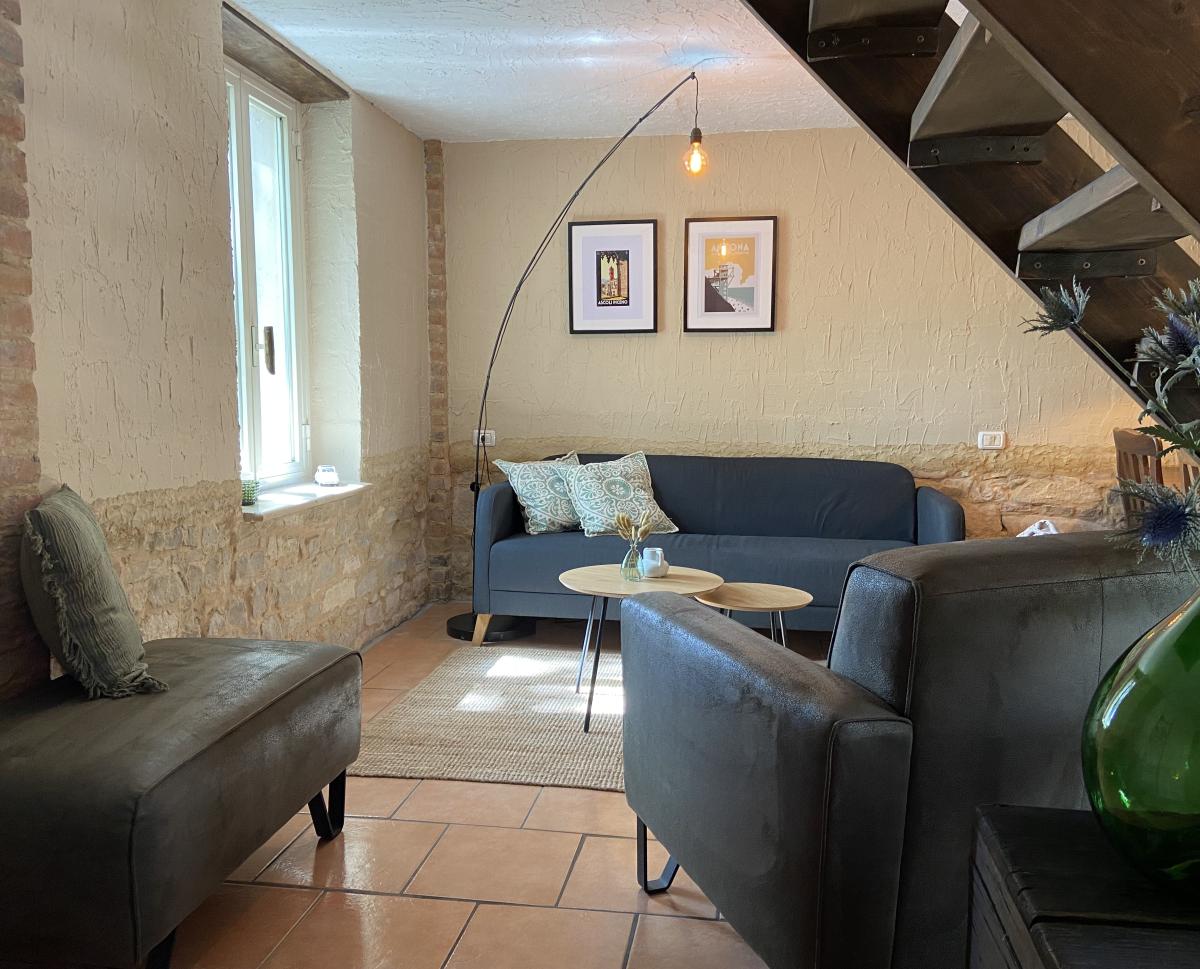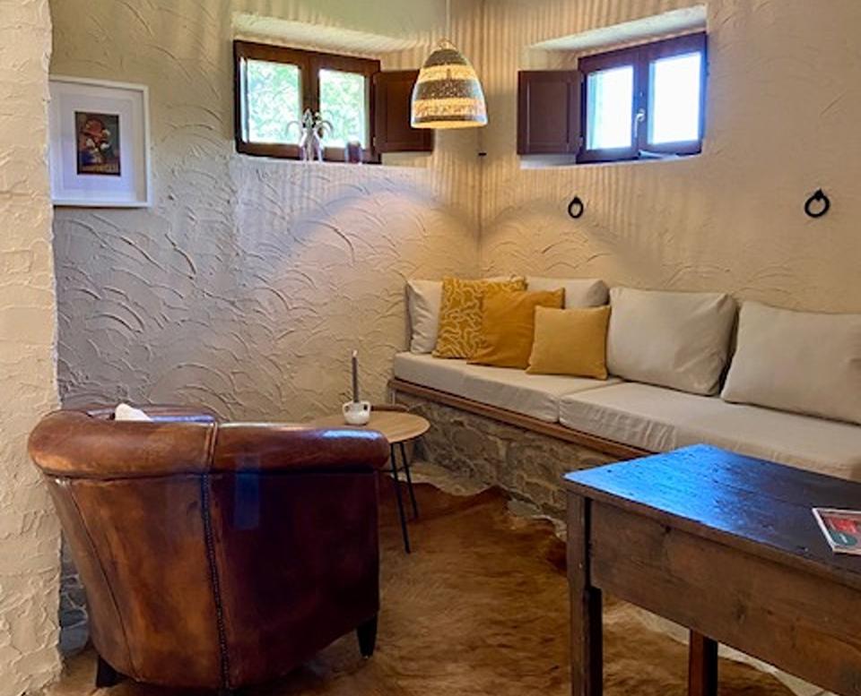 Gastenverblijf 3: Deze voormalige stal is omgebouwd tot een comfortabel appartement van 35 m² voor 2 personen met privé-terras, woonkeuken met zithoek, slaapkamer en badkamer.