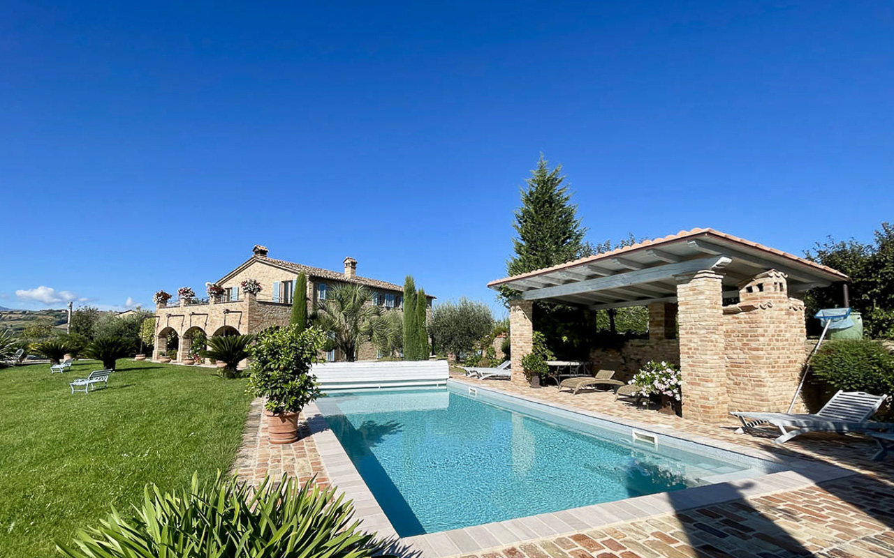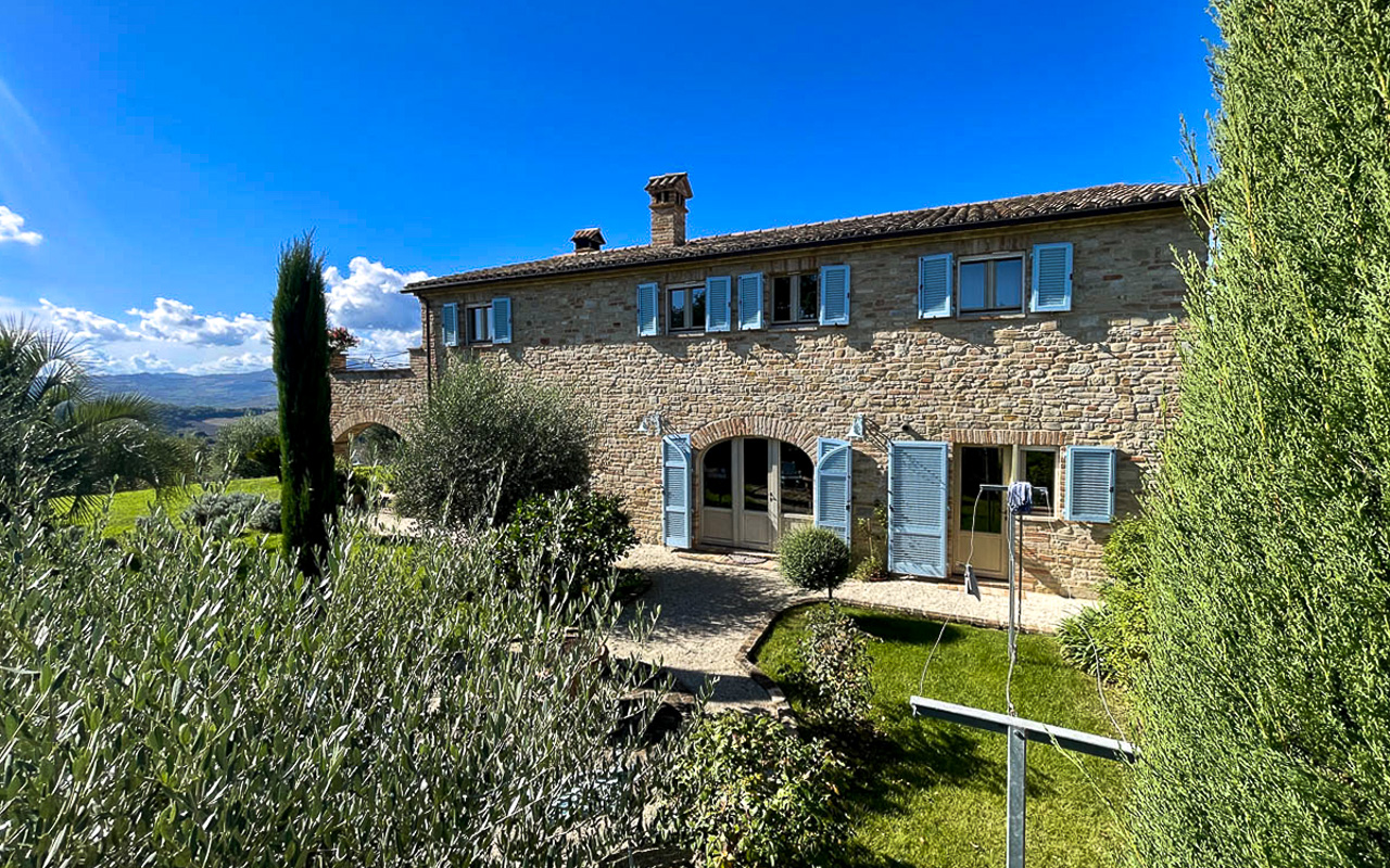 In een dominante positie met een prachtig uitzicht over het glooiende heuvellandschap van Le Marche ligt Villa Il Poggio, een schitterend herbouwde stenen boerderij die traditionele charme combineert met modern comfort. Dankzij de zuidelijke ligging geniet de woning van een adembenemend uitzicht dat zich uitstrekt tot aan de majestueuze Sibillini-bergen, een plek waar elke dag begint en eindigt met een onvergetelijke zonsopkomst en zonsondergang.