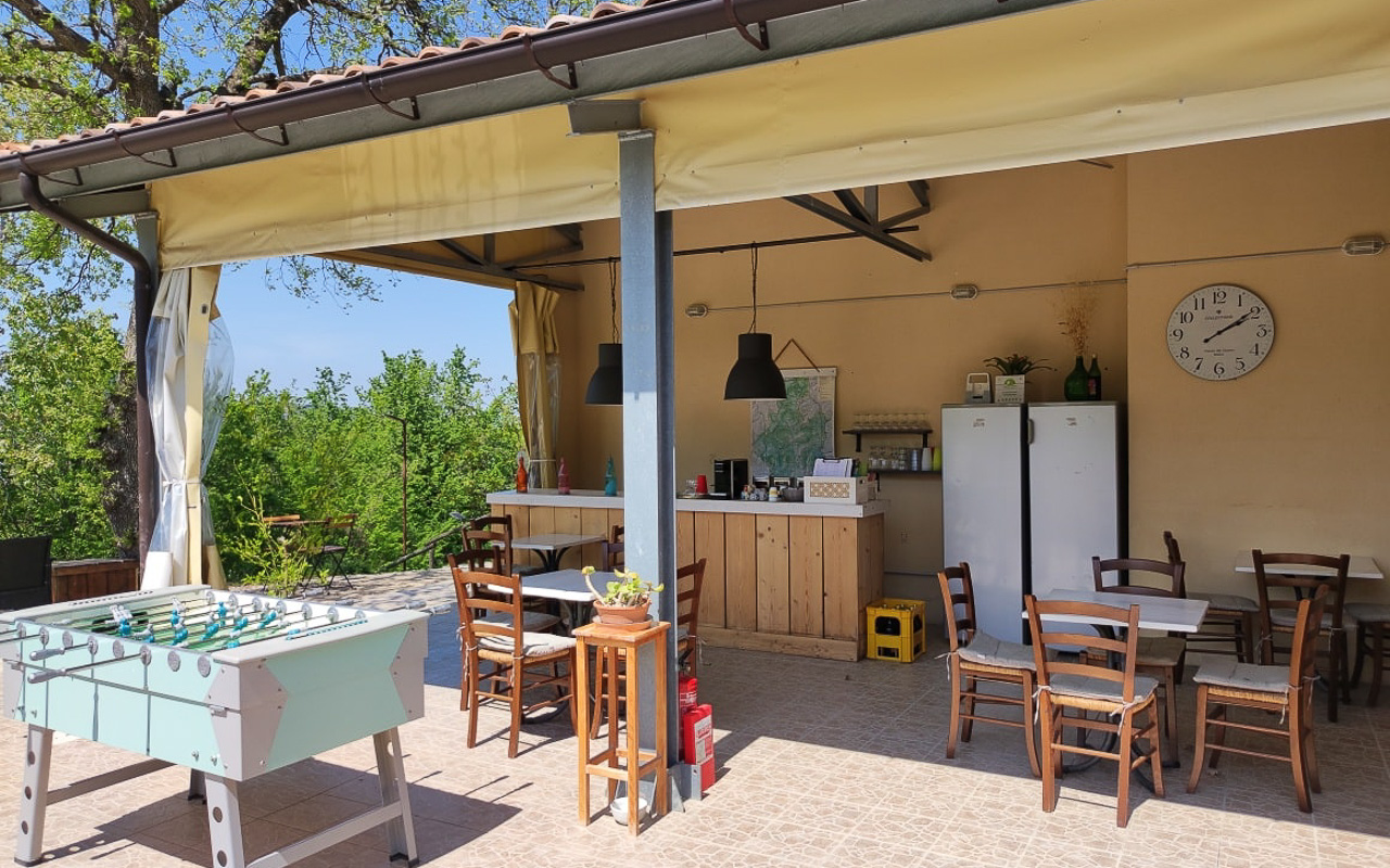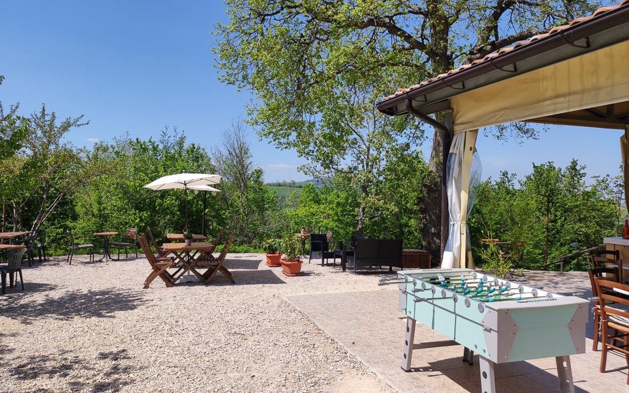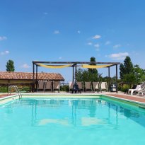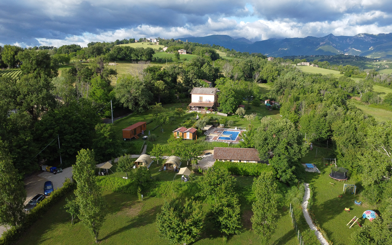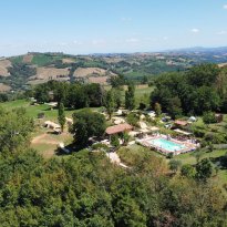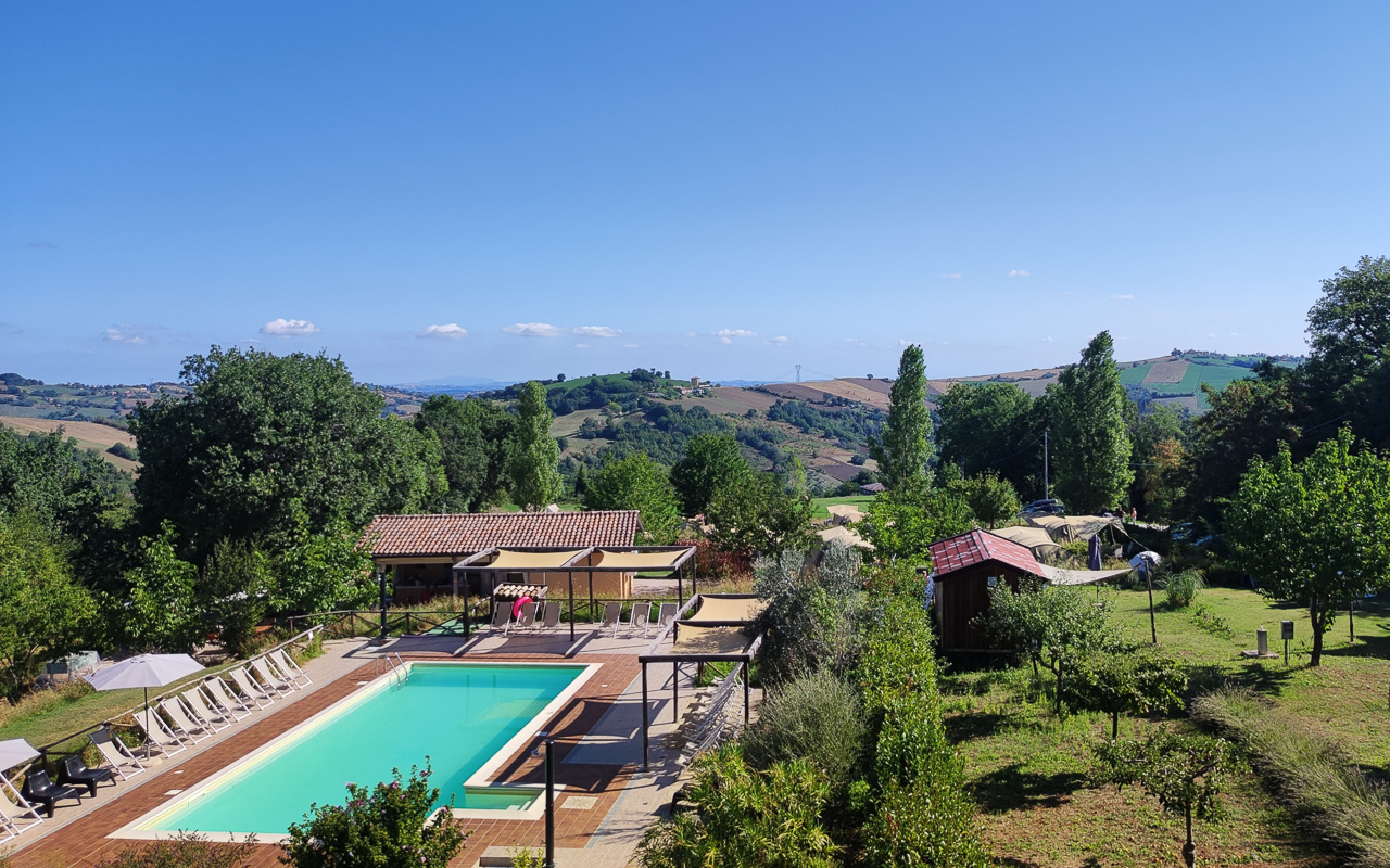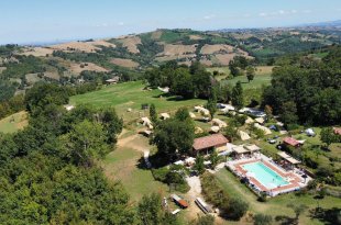De accommodatie ligt in een rustige, landelijke omgeving met schitterende vergezichten, op ongeveer 40 km van de Adriatische kust en 20 km van de Sibillini-bergen. Het dorp Gualdo, met alle basisvoorzieningen, ligt op slechts 1 km afstand. De stranden zijn binnen 40 minuten met de auto bereikbaar.