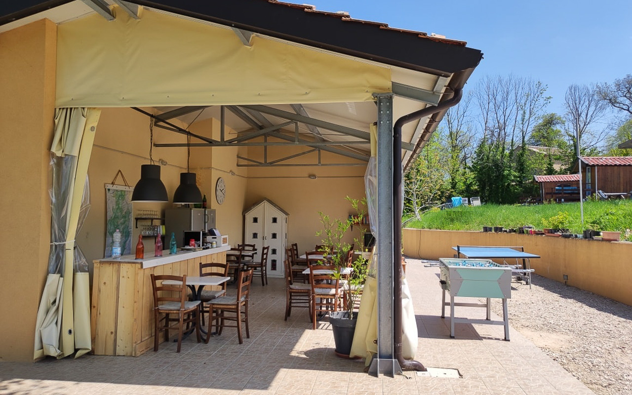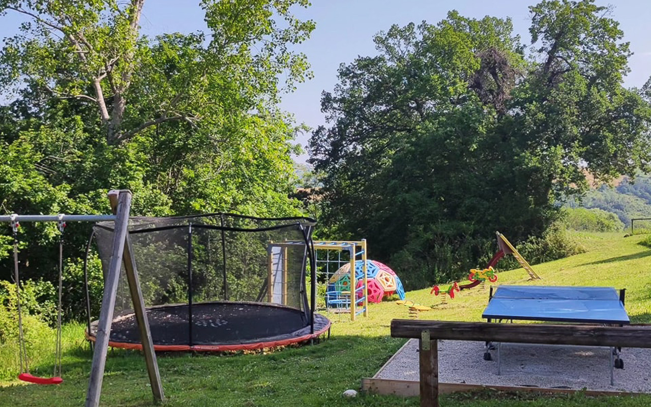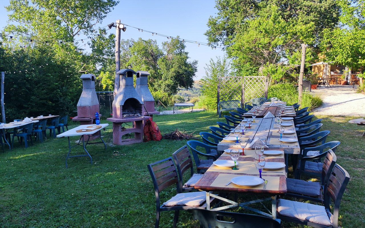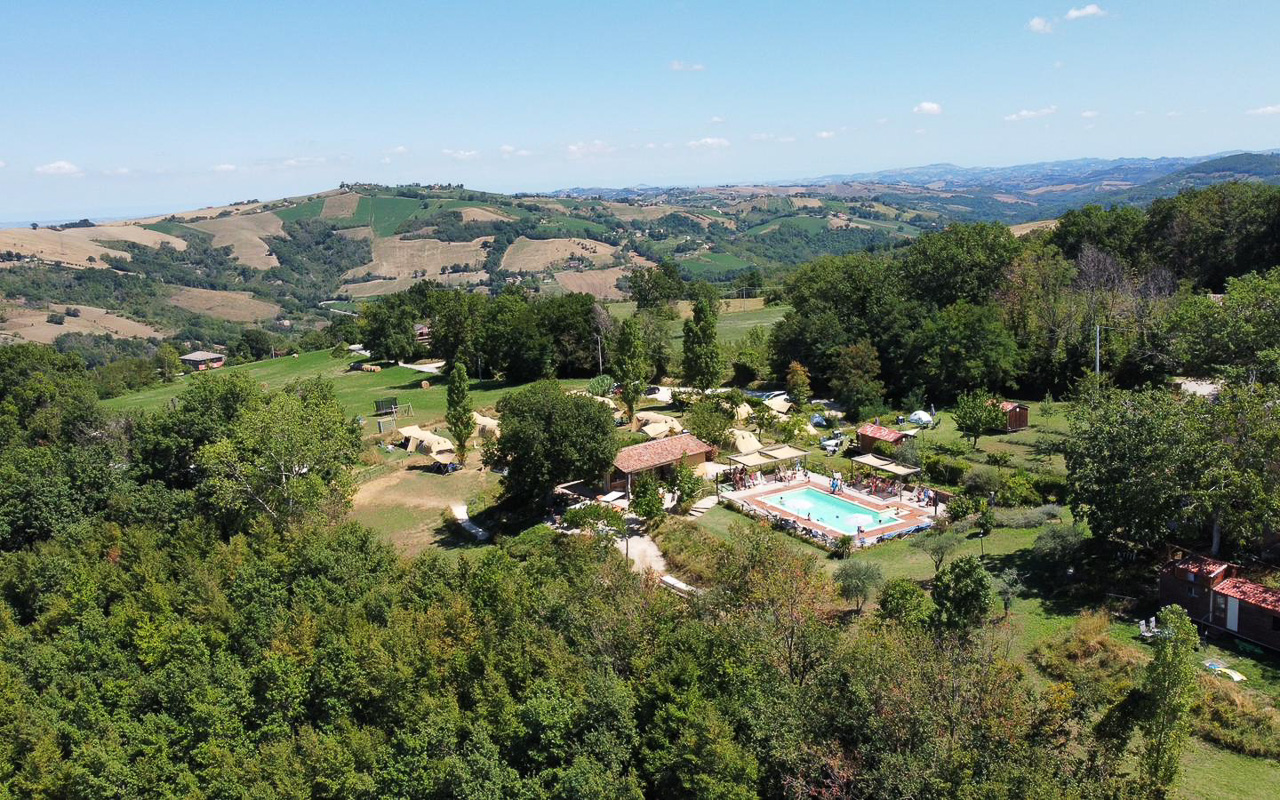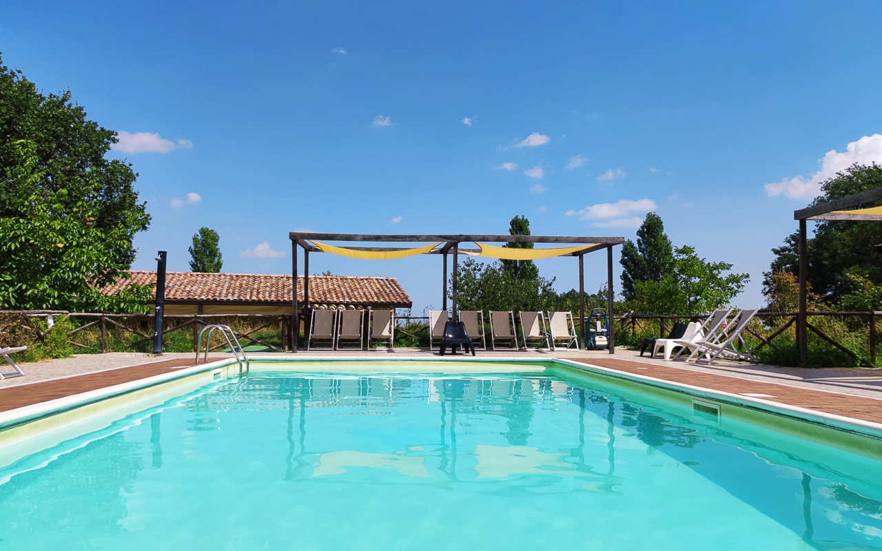 De accommodatie ligt in een rustige, landelijke omgeving met schitterende vergezichten, op ongeveer 40 km van de Adriatische kust en 20 km van de Sibillini-bergen. Het dorp Gualdo, met alle basisvoorzieningen, ligt op slechts 1 km afstand. De stranden zijn binnen 40 minuten met de auto bereikbaar.