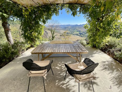 Sfeervol gerestaureerd natuurstenen huis te koop tussen Montefalcone Appennino en Santa Vittoria in Matenano. De woning biedt een prachtig panoramisch uitzicht, een privétuin van ca. 2.000 m², warme en stijlvolle interieurs en meerdere terrassen om buiten te genieten. Instapklaar en volledig gemeubileerd.