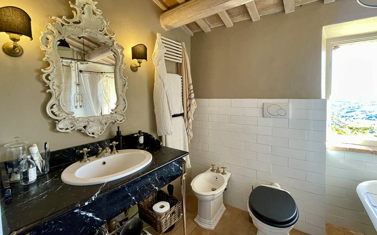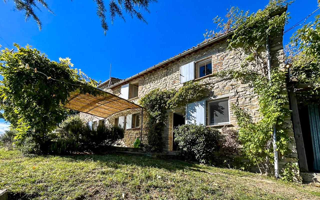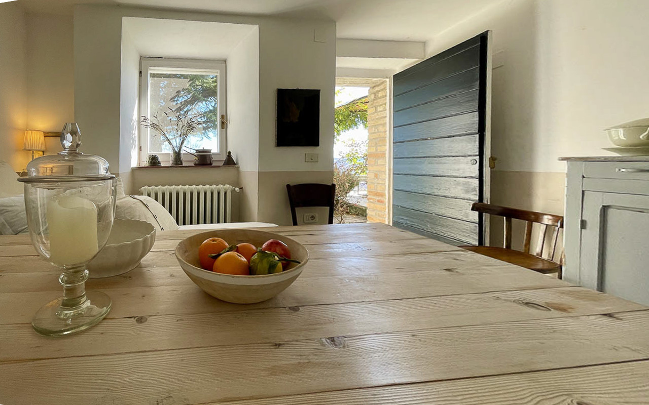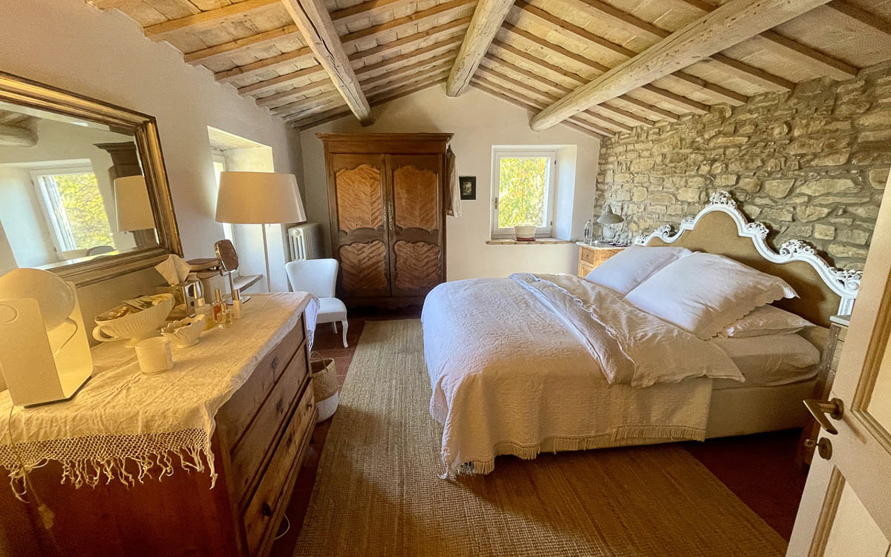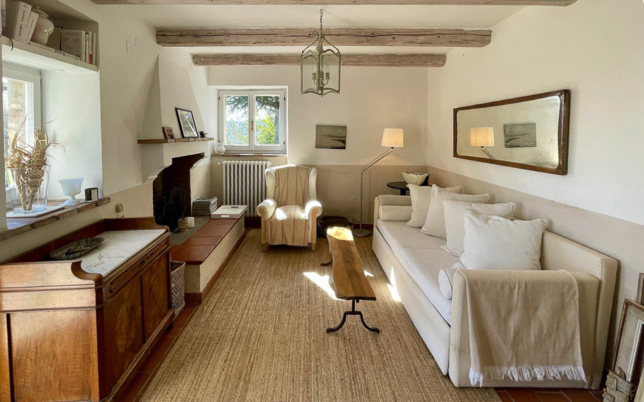 De woning bevindt zich aan de rand van een eeuwenoud, klein landelijk gehucht en kijkt uit op het zuidoosten. Vanaf hier geniet u van een vrij uitzicht over de Aso-vallei, de omliggende heuvelruggen en de middeleeuwse dorpjes die de heuveltoppen bekronen. De privétuin van circa 2.000 m² is aangelegd in terrassen en biedt meerdere sfeervolle plekken om buiten te eten, te ontspannen en van het uitzicht te genieten.