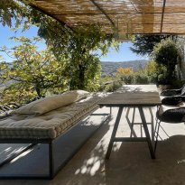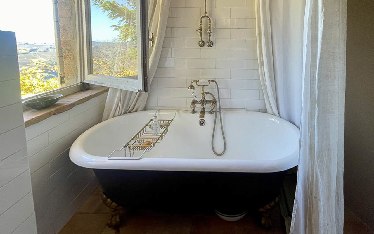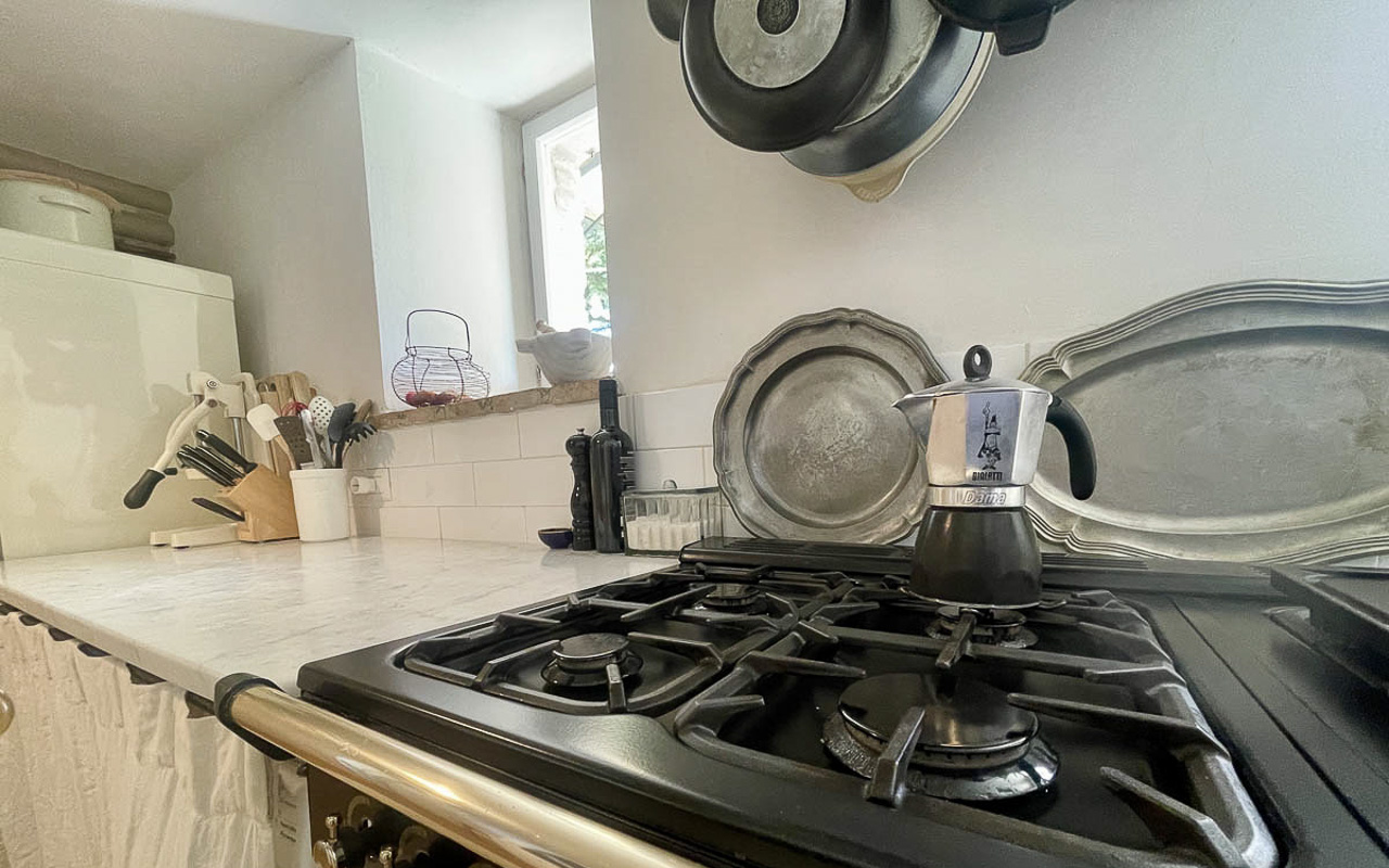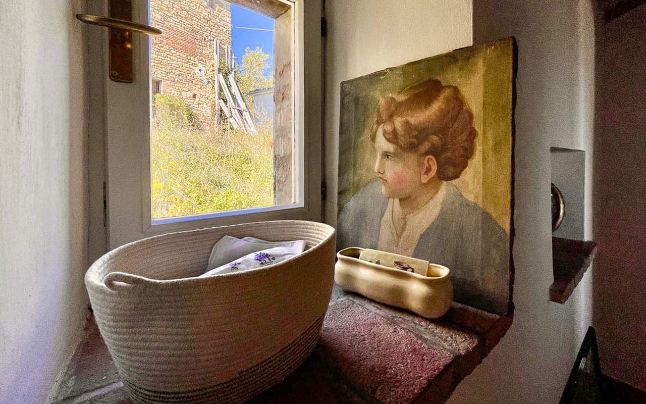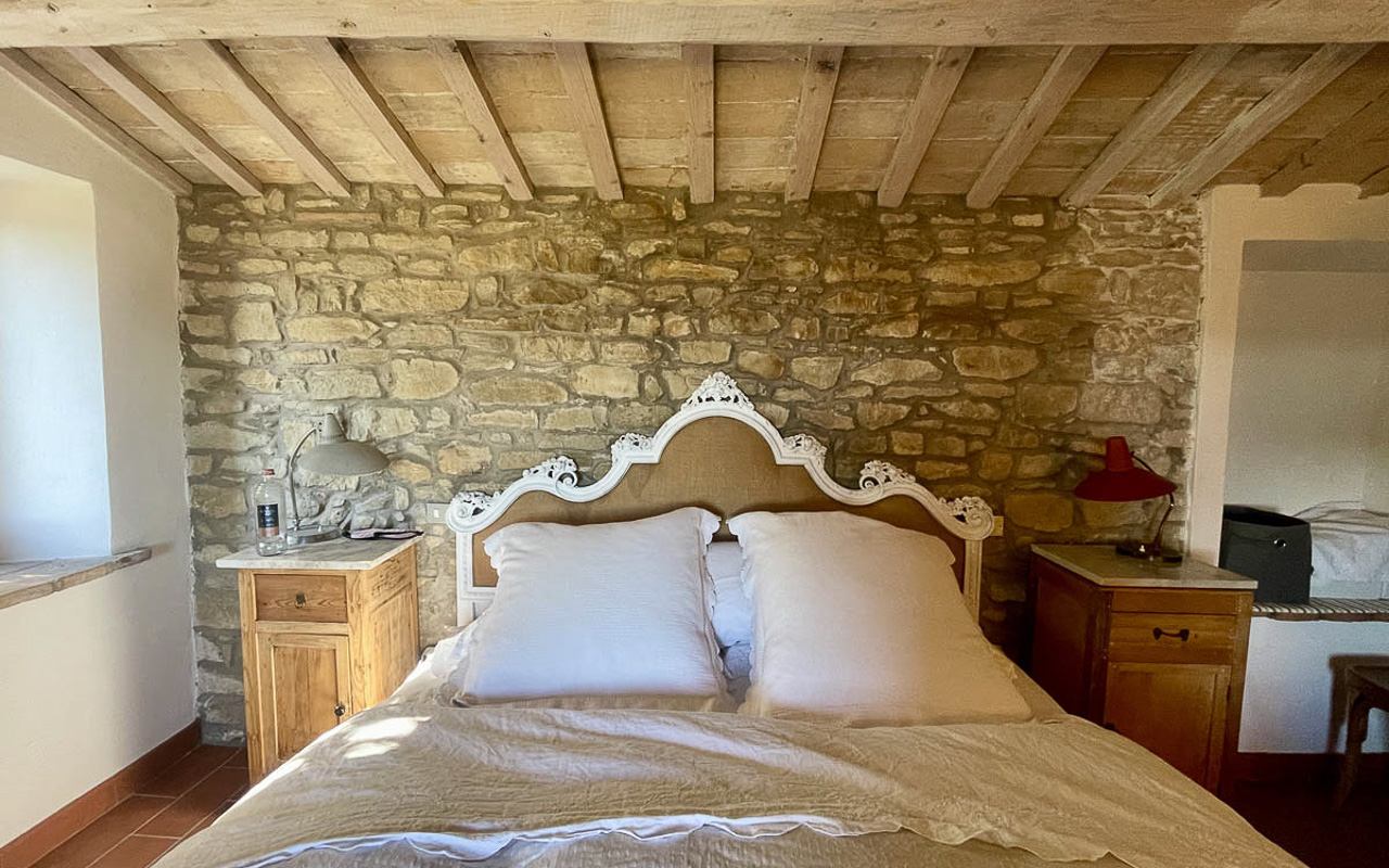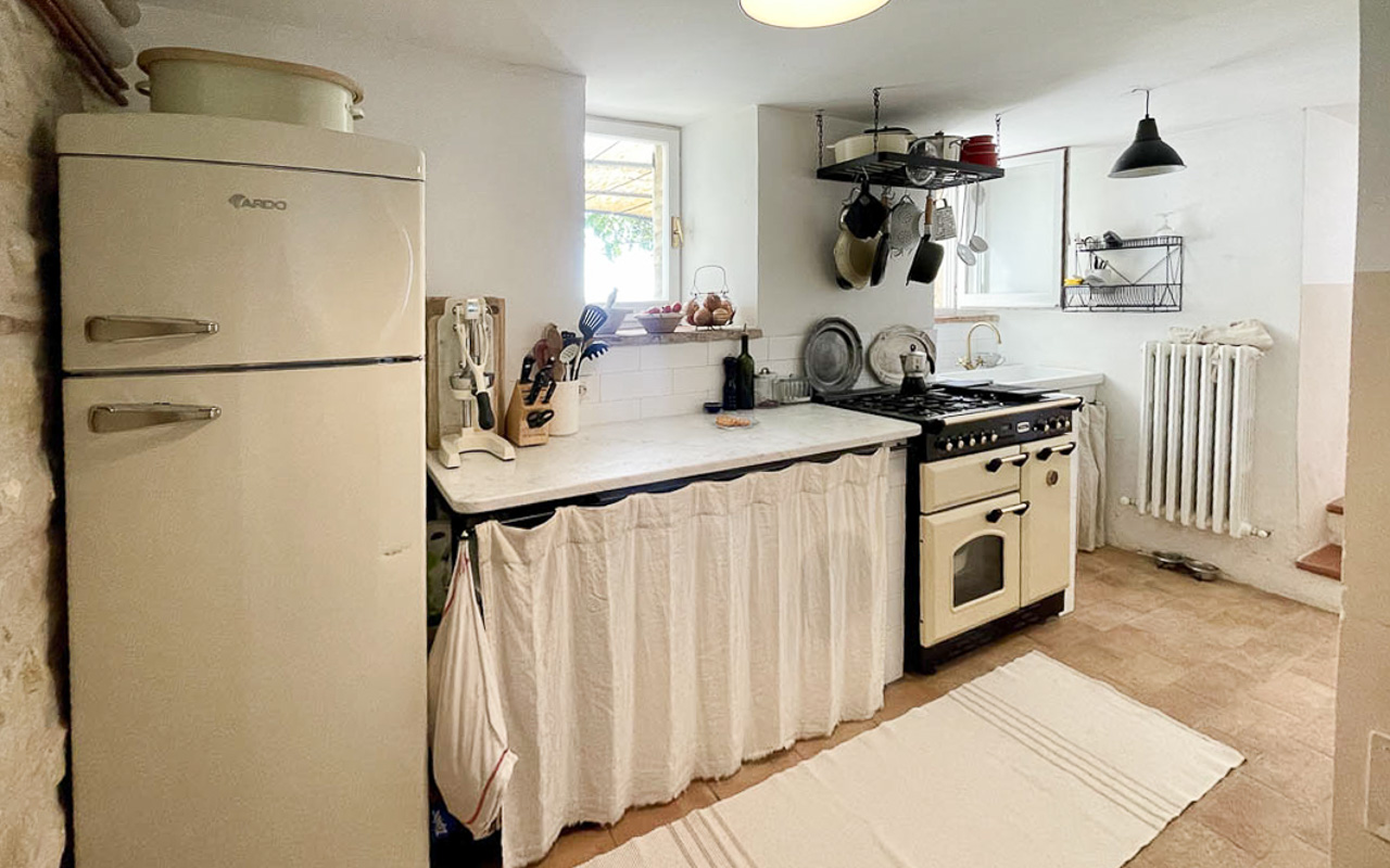 De woning bevindt zich aan de rand van een eeuwenoud, klein landelijk gehucht en kijkt uit op het zuidoosten. Vanaf hier geniet u van een vrij uitzicht over de Aso-vallei, de omliggende heuvelruggen en de middeleeuwse dorpjes die de heuveltoppen bekronen. De privétuin van circa 2.000 m² is aangelegd in terrassen en biedt meerdere sfeervolle plekken om buiten te eten, te ontspannen en van het uitzicht te genieten.