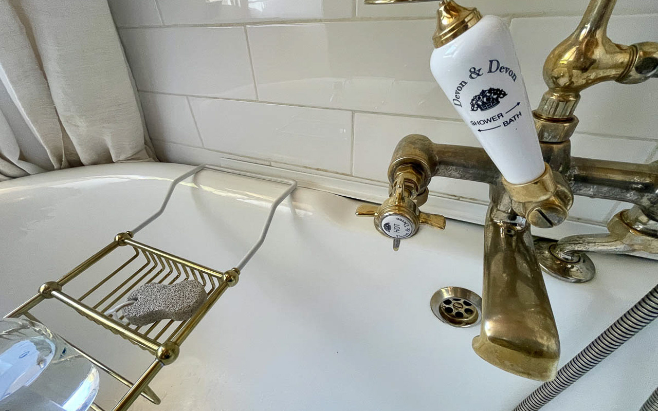 De woning heeft een bruto vloeroppervlak van 143 m² verdeeld over twee verdiepingen. Begane Grond: een gezellige woonkamer met houtkachel, een volledig uitgeruste keuken met ruime werkbladen, een Falcon fornuis, vaatwasser, wasmachine en een grote keramische spoelbak onder een panoramisch raam. De aangrenzende eetruimte kan naar behoefte dienstdoen als extra slaapkamer. Op dit niveau bevindt zich ook, met eigen buiteningang, een kleine badkamer met buitendouche, ideaal voor warme zomerdagen. Eerste Verdieping: de master bedroom, een ruime tweepersoons logeerkamer en een prachtige badkamer met ligbad, afgewerkt met hoogwaardige accessoires van Devon & Devon.