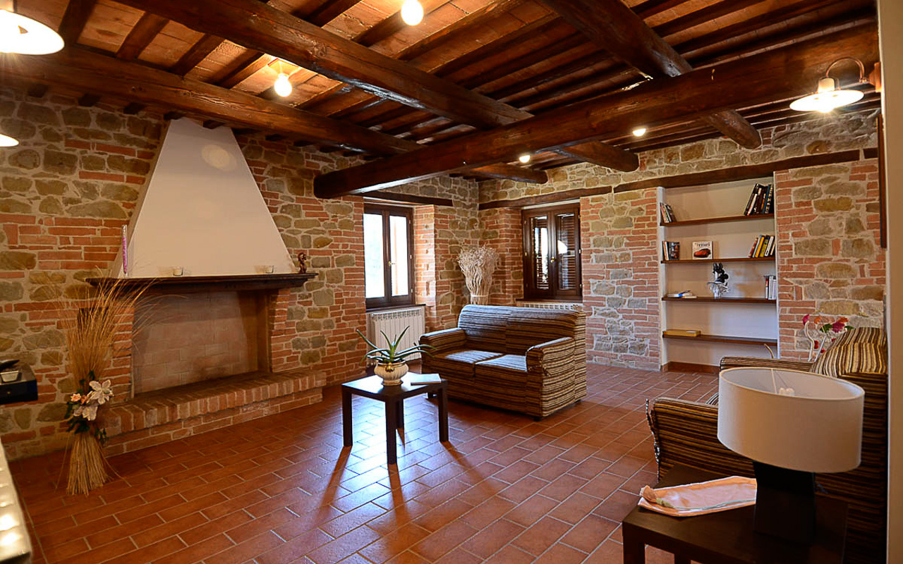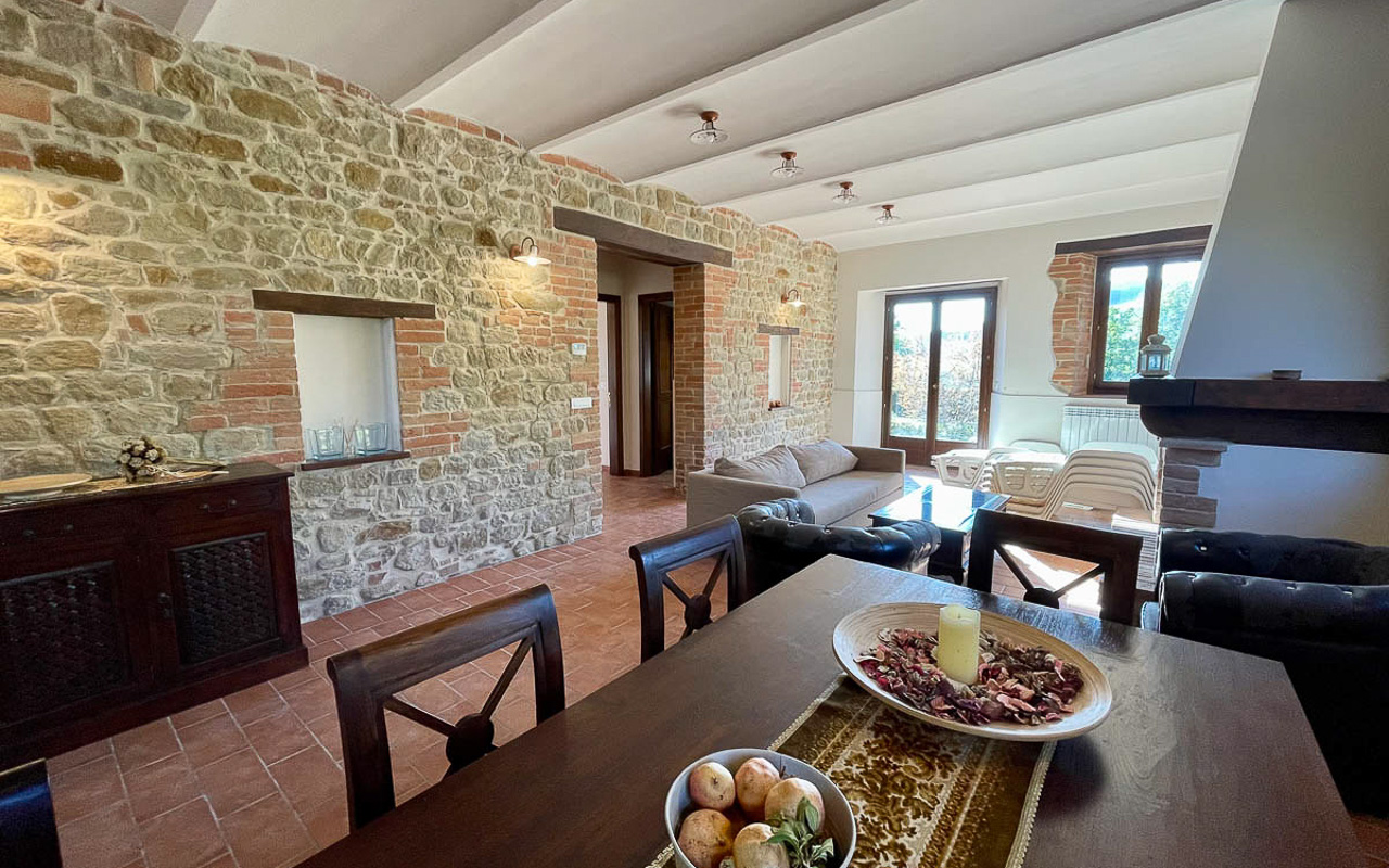 In de gehele woning zijn traditionele elementen zoals natuurstenen muren, terracotta vloeren en houten balkenplafonds harmonieus gecombineerd met moderne installaties en comfort, waaronder aansluitingen op nutsvoorzieningen, LPG-verwarming en Wi-Fi.