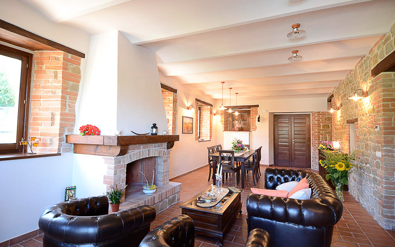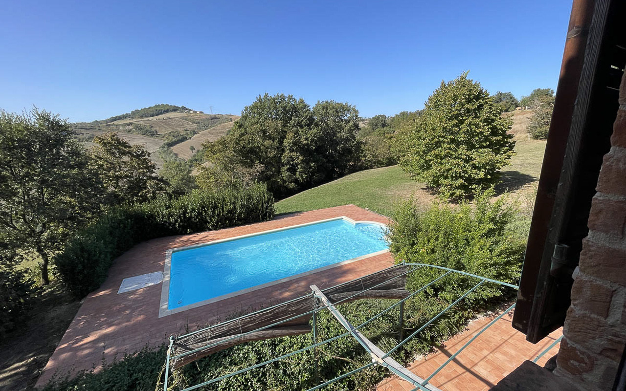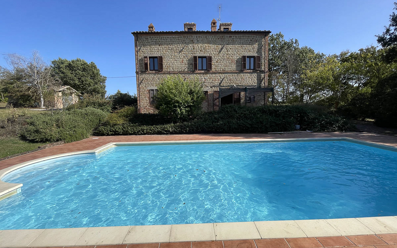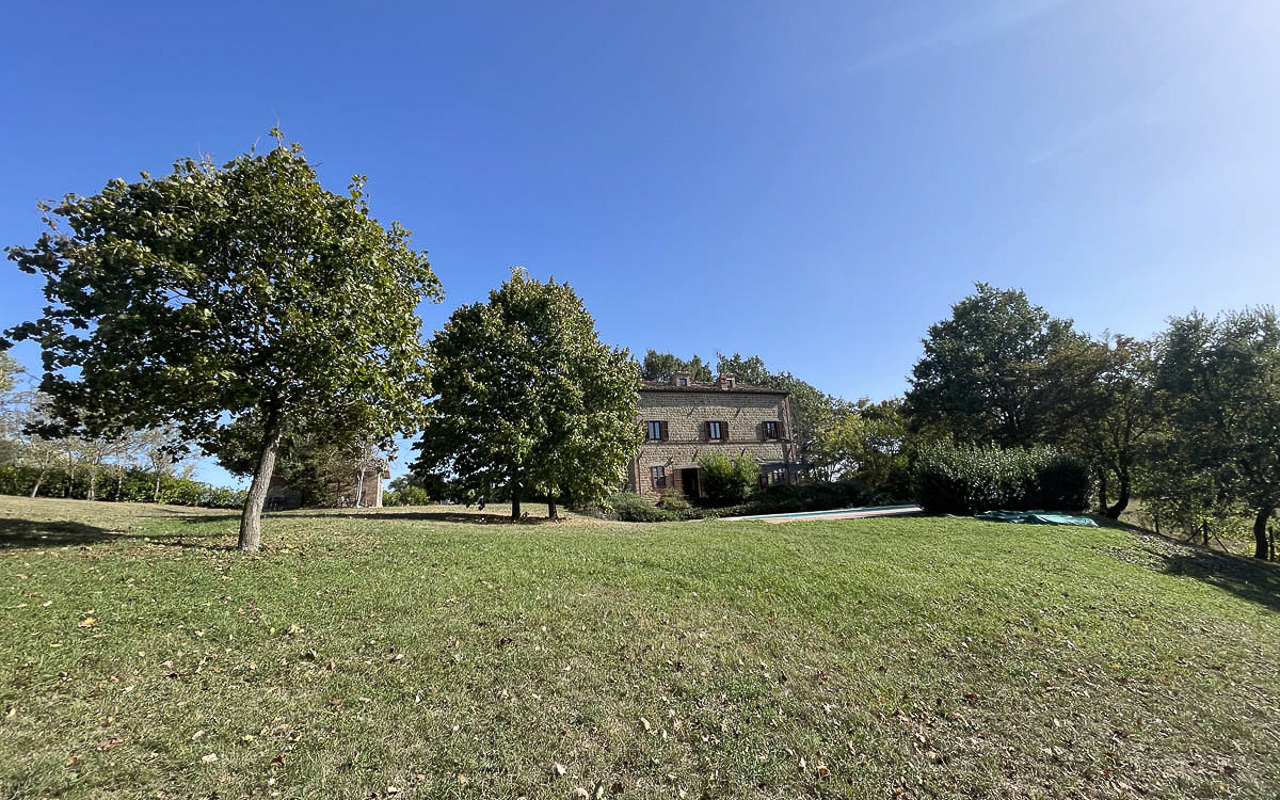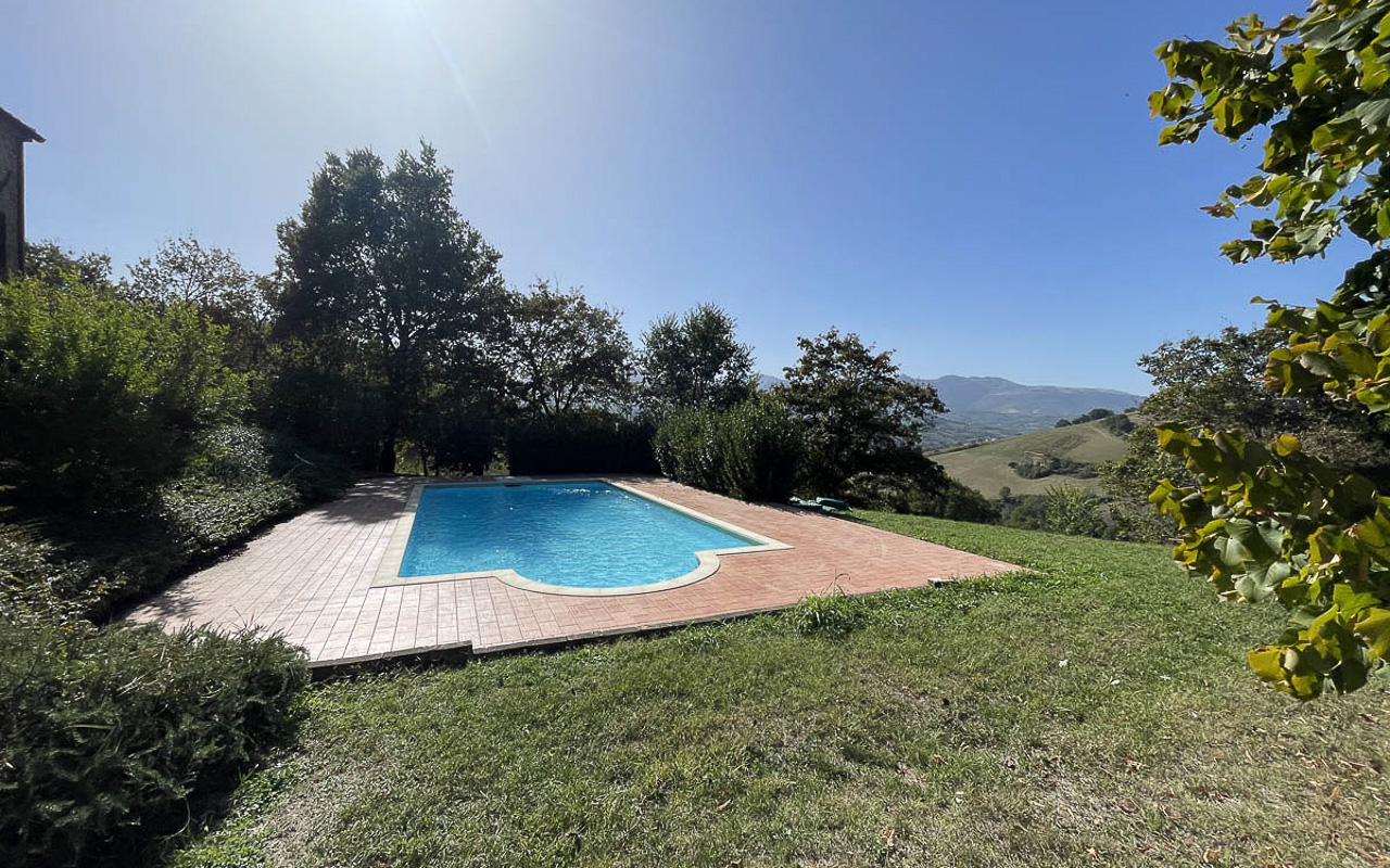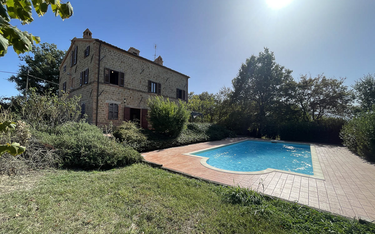 De woning wordt omringd door circa 4.000 m² tuin met volwassen beplanting en betoverende vergezichten over het landschap. Het privézwembad met zonneterras vormt een idyllische plek voor buiten dineren, ontspannen of genieten van de Italiaanse zon.