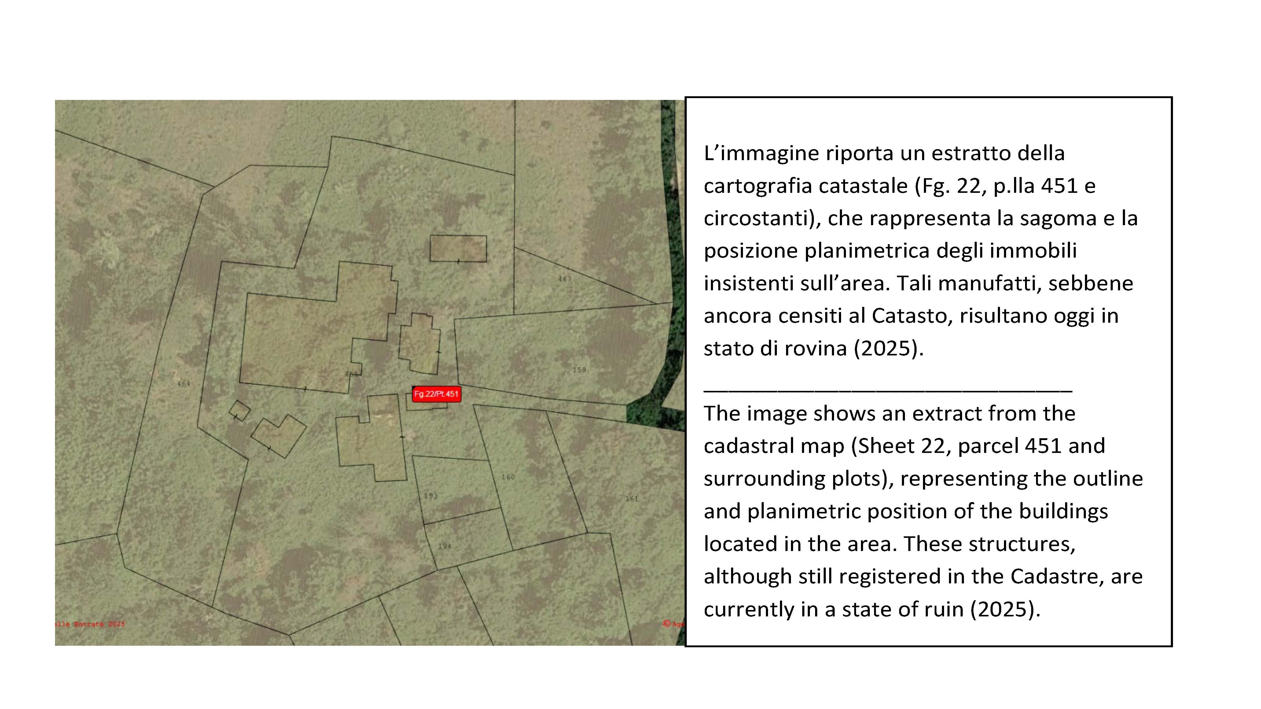 Een gecertificeerd technisch rapport, opgesteld door een bevoegde geometra, bevestigt dat het volledige bestaande volume en vloeroppervlak mag worden herbouwd of gerestaureerd. Het rapport bevestigt ook dat de aanleg van een zwembad is toegestaan, wat de ontwikkelingsmogelijkheden verder vergroot.