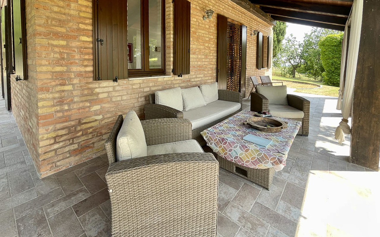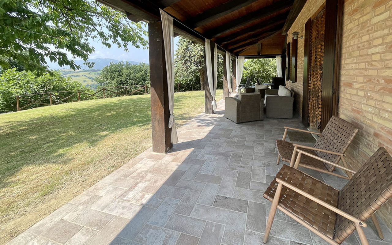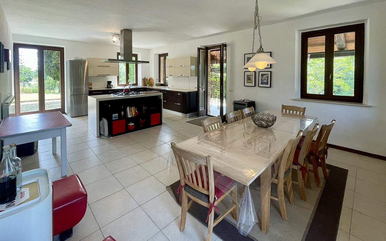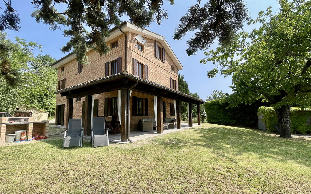 De villa is gelegen op een dominante, zonnige en panoramische positie en biedt een schitterend uitzicht over het glooiende landschap en de Sibillini-bergen. De woning is eenvoudig bereikbaar via een goed onderhouden gemeentelijke weg.