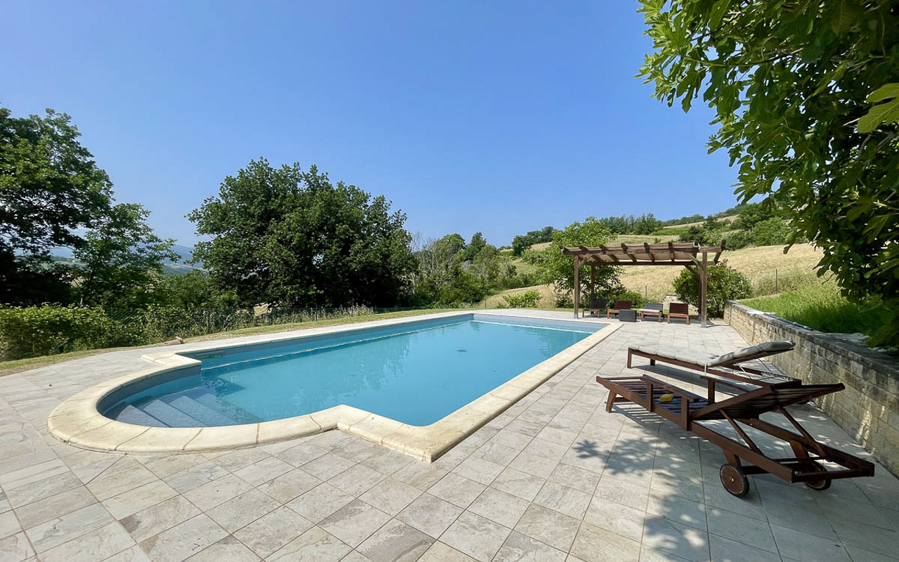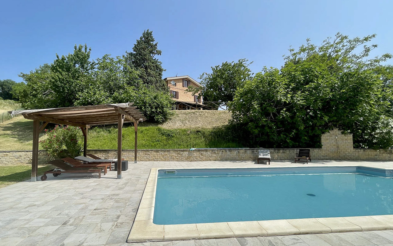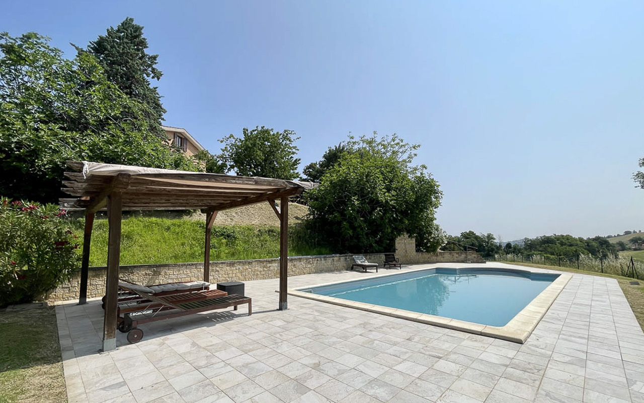 In een privé maar niet afgelegen ligging, op slechts vijf minuten rijden van San Ginesio en circa vijftien minuten van Tolentino, in de provincie Macerata, bieden wij deze fraai gerenoveerde villa te koop aan. De woning beschikt over drie bijgebouwen, een volledig omheinde tuin van circa 3.680 m² en een prachtig zwembad van 5 x 10 meter.