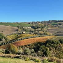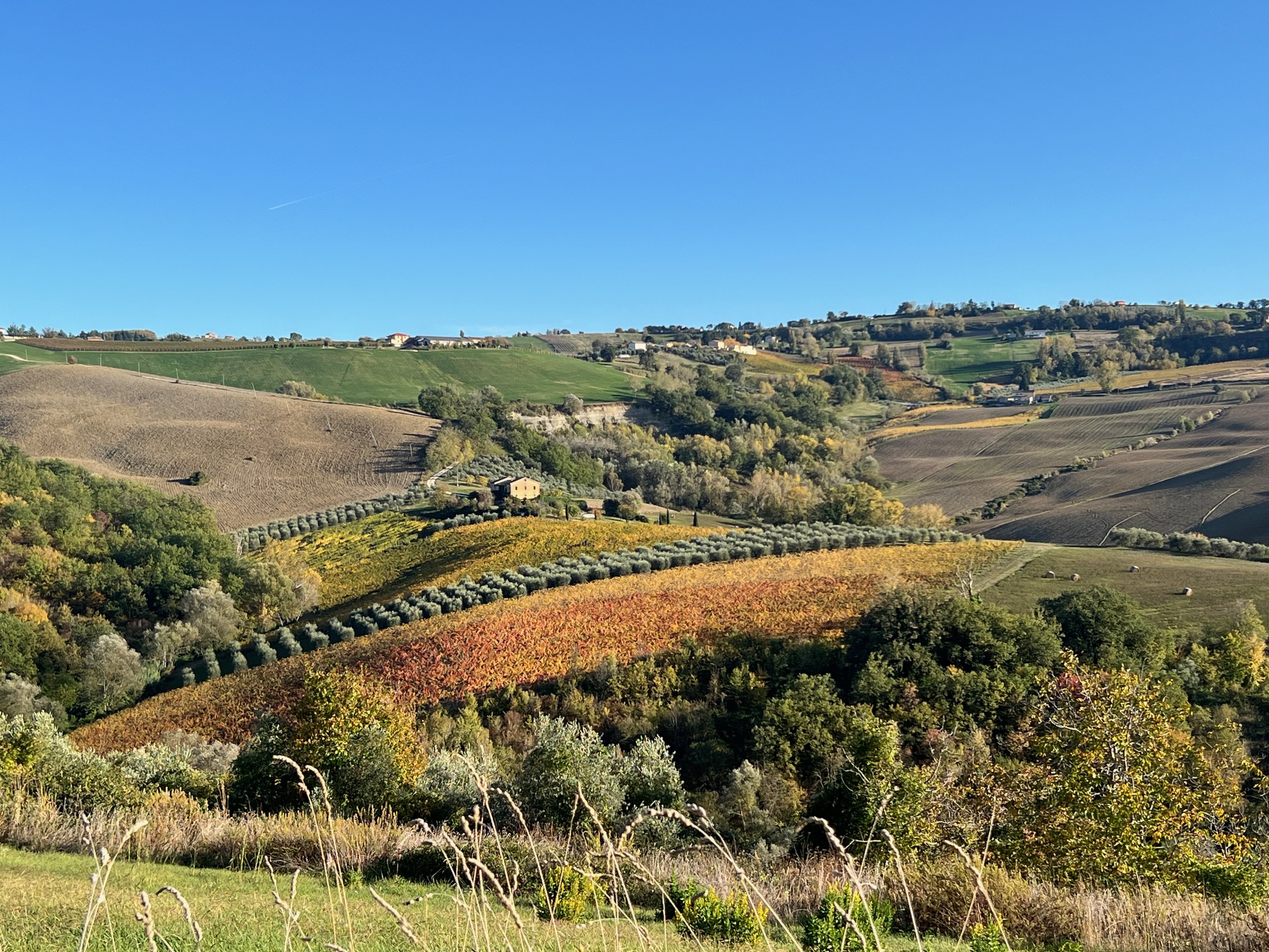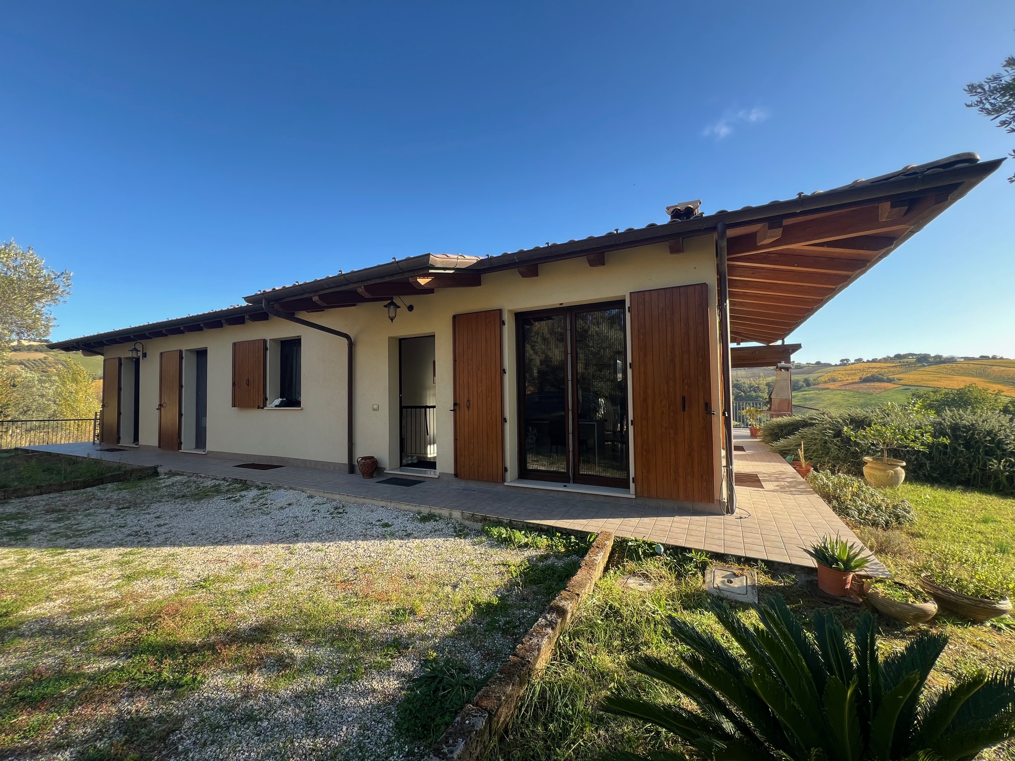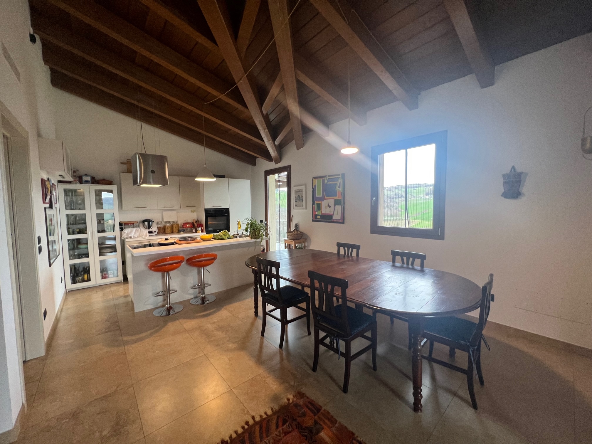 Schitterende villa, prachtig gelegen in de nabijheid van Serra De’ Conti, met een schitterend uitzicht richting het zuiden, over de glooiende heuvels, wijn- en olijfgaarden, graanvelden en zonnebloemenvelden in de zomer.