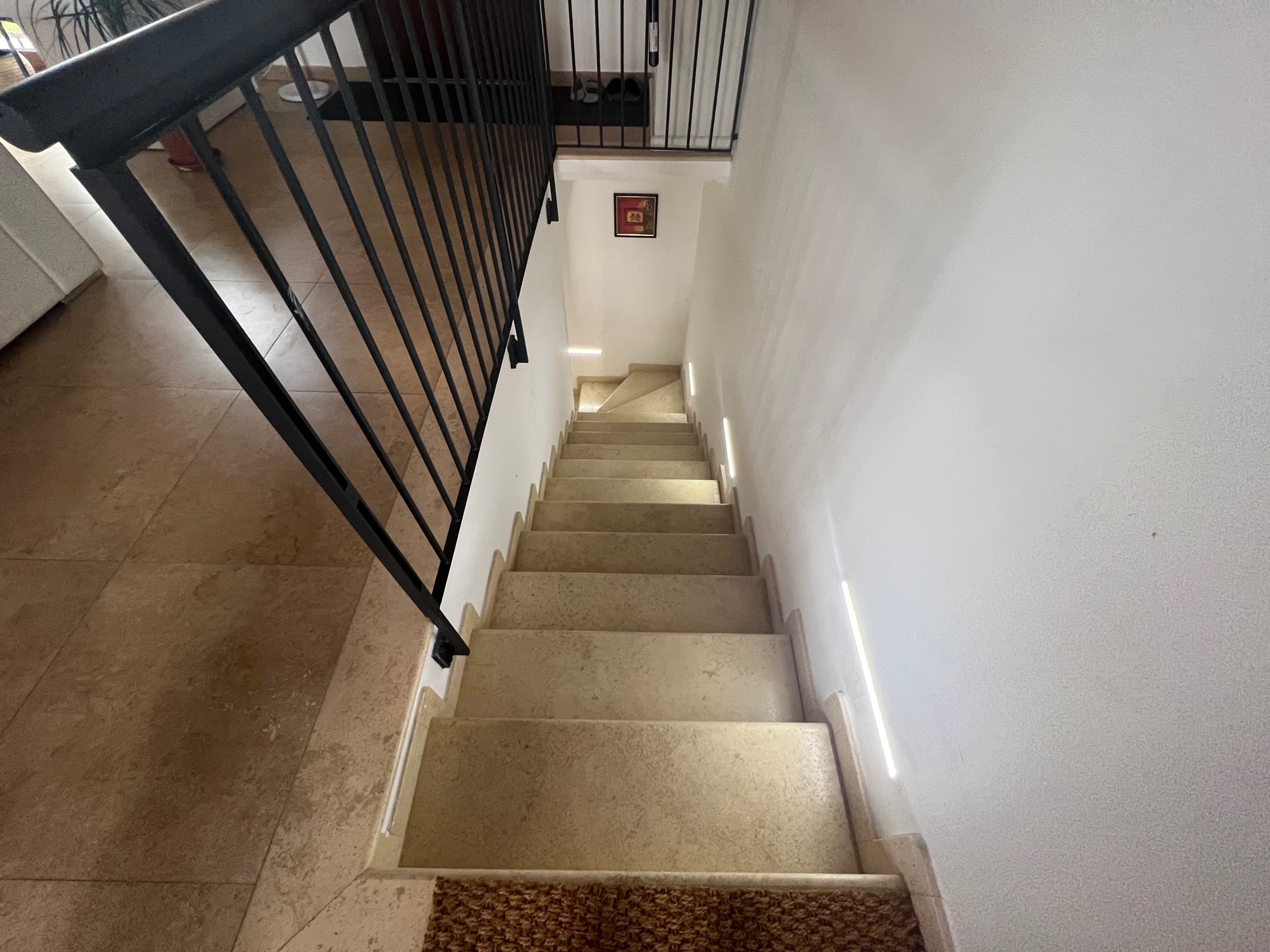 Deel van een tweegezinswoning met twee verdiepingen met een totale oppervlakte van ongeveer 180 m², met tuin, gelegen op een heuvel met 180 graden uitzicht op zee, bestaande uit een woonruimte op de begane grond bestaande uit een grote, lichte woonkamer (10×7 meter) met een werkende open haard, een hoekkeuken met inbouwapparatuur, een tegelvloer en een hoekbar van olijfhout.