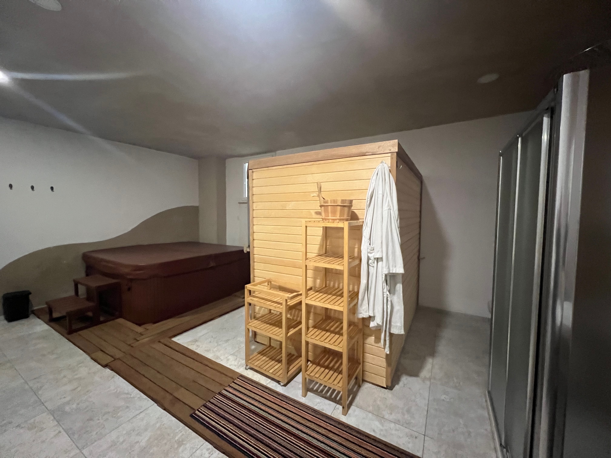 In de kelderverdieping bevindt zich de SPA met sauna, hydromassage, chromotherapie-douche en een badkamer. Op deze verdieping zijn tevens een grote garage, de stookruimte en 3 andere kamers gesitueerd die kunnen worden gebruikt/ingedeeld naar eigen keuze, zoals bijvoorbeeld een fitness-ruimte, studeerkamer of logeerkamer.