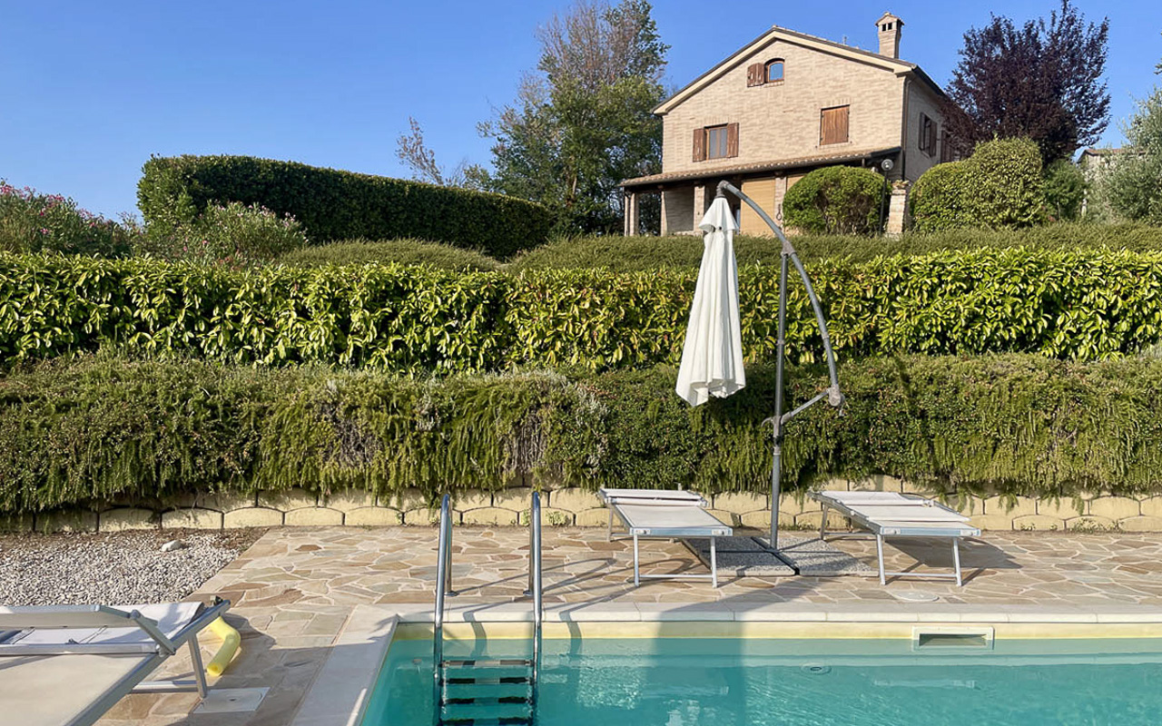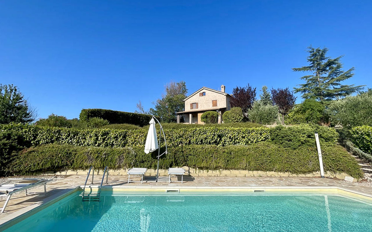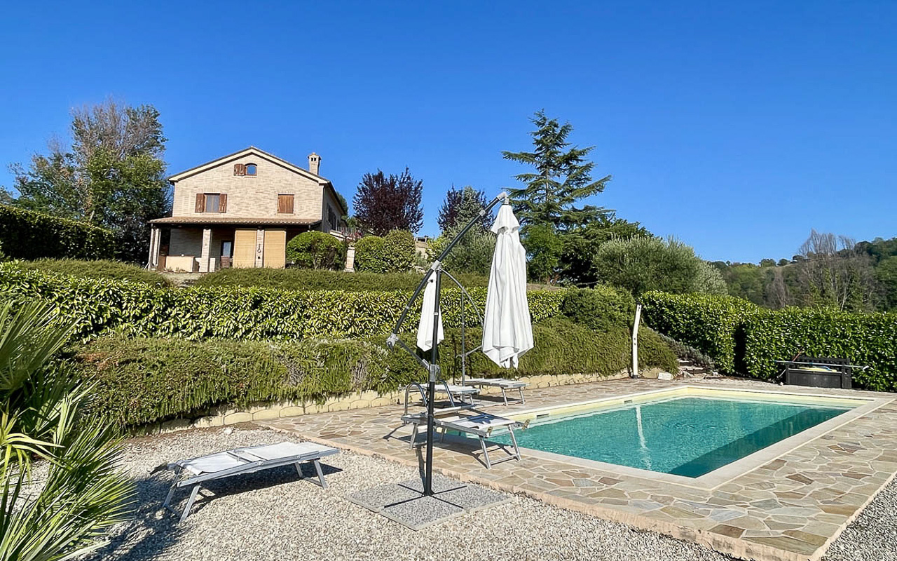 De woning wordt deels gemeubileerd verkocht en vormt een zeldzame kans om te genieten van een privéwoning met uitgebreide tuin, zwembad en panoramisch uitzicht in het hart van Le Marche.