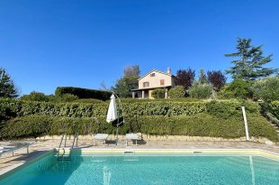 Het hoofdgebouw, met de woning, garage en een klein zelfstandig appartement, is gebouwd in 1998, waarschijnlijk op de plek van een voormalige boerderij, en is sindsdien continu verbeterd en onderhouden, inclusief de recente aanleg van het zwembad. De villa biedt ongeveer 290 m² woonruimte verdeeld over twee verdiepingen plus een mezzanine, met daarnaast een garage van 26 m² en ruime veranda-, terras- en overdekte buitenruimtes.