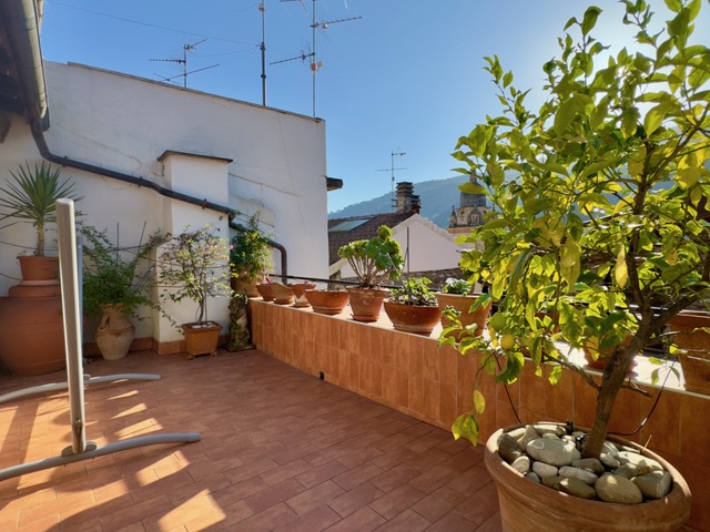 Een bijzonder pluspunt is het grotendeels overdekte dakterras van ongeveer 52 m². Hier kunt u ontspannen, genieten van de zon en het adembenemende uitzicht over de daken van de oude stad en de omliggende heuvels bewonderen. De zomerkeuken met open haard maakt het terras tot de perfecte plek voor gezellige barbecues.