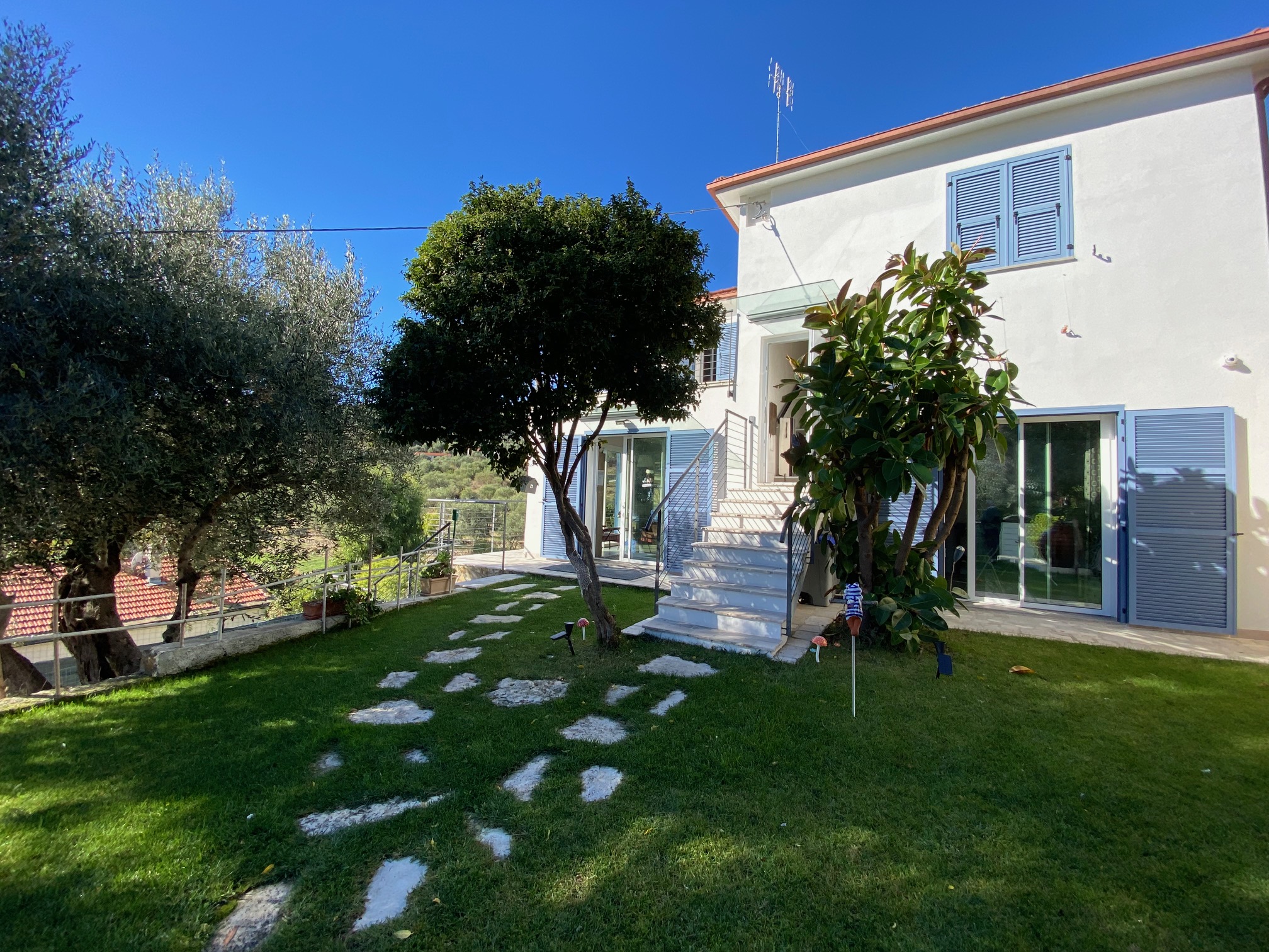 De villa, van ongeveer 220 vierkante meter, exclusief de open ruimtes, heeft een ingegraven zwembad van 8 bij 4 meter, grote tuinen voor en achter het huis en ligt te midden van de olijfbomen van het karakteristieke Ligurische landschap.