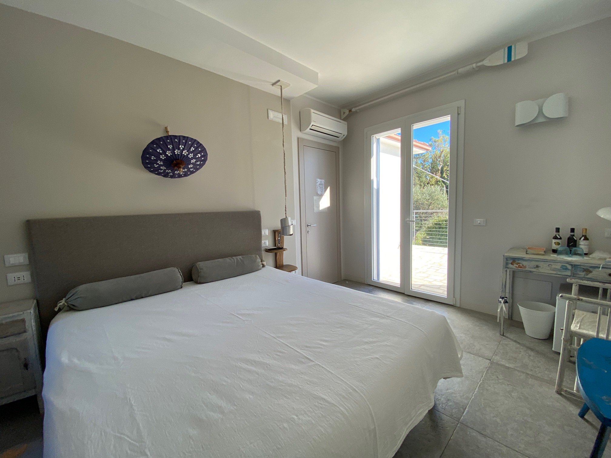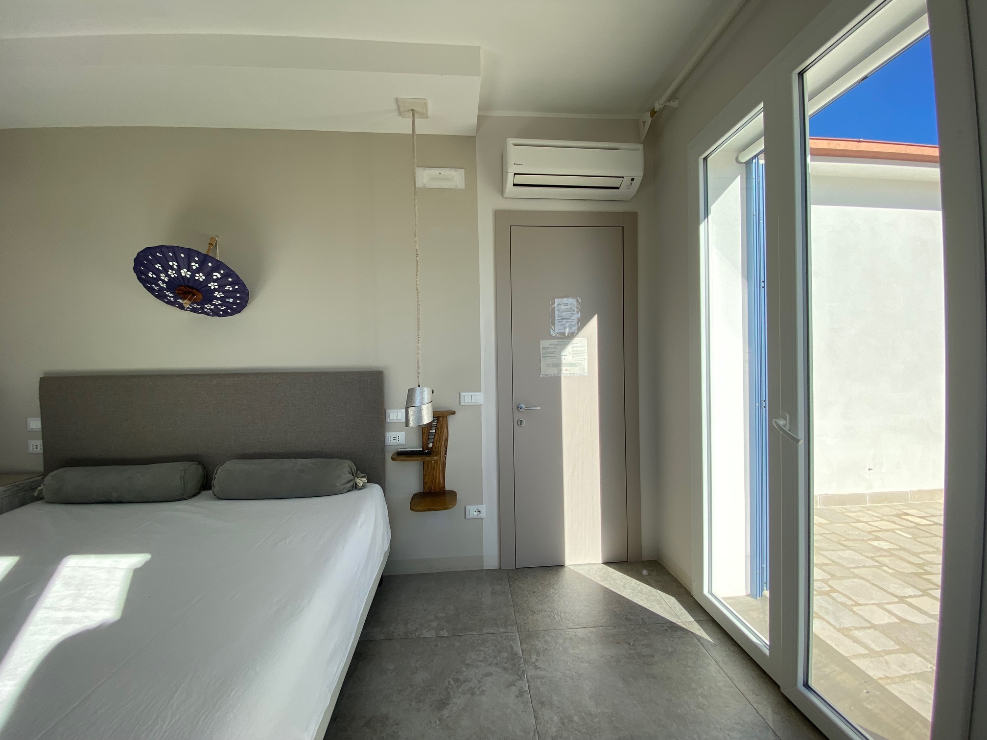 De buitenvloeren zijn gemaakt van hoogwaardige witte marmeren tegels uit Trani.