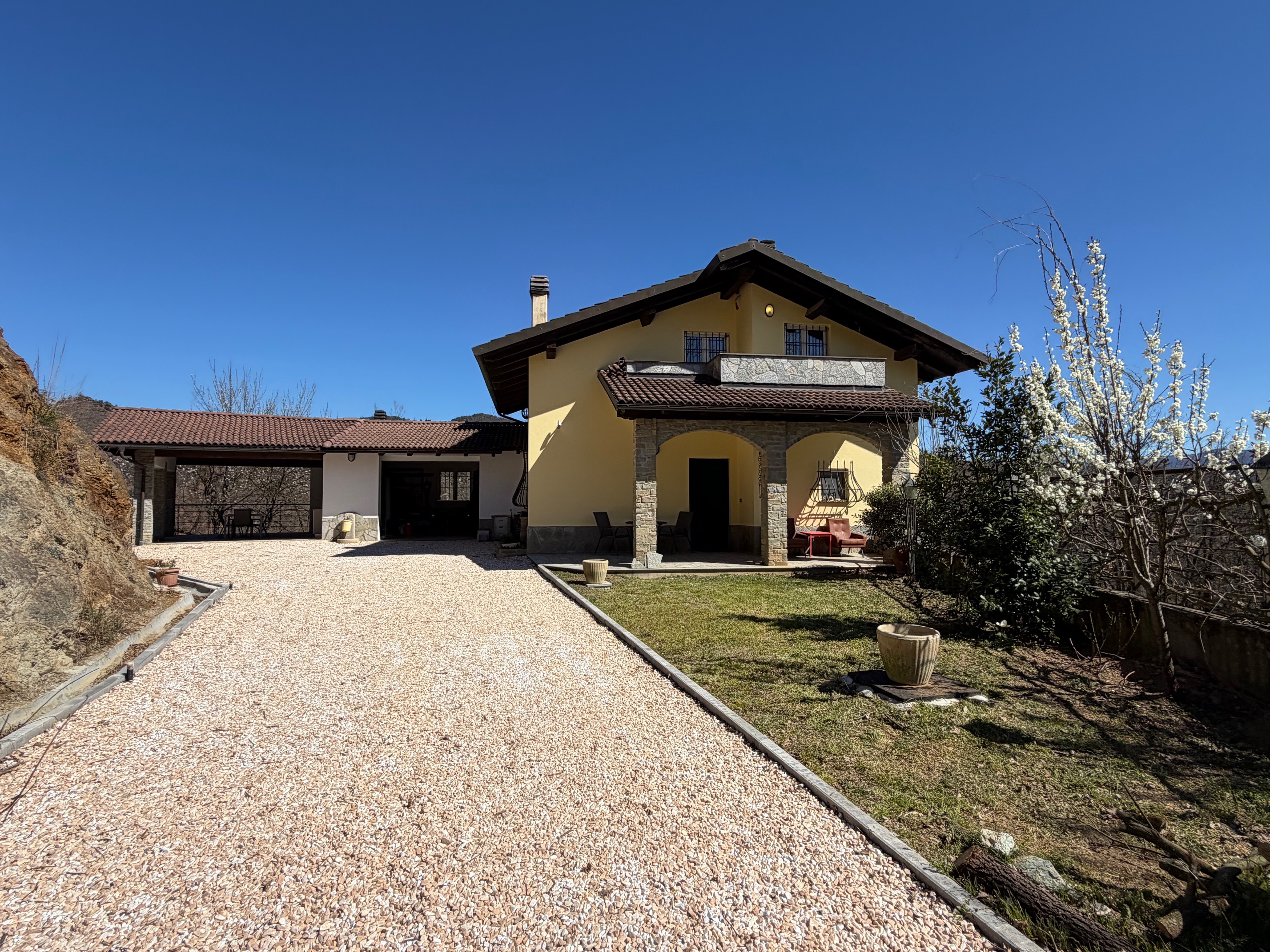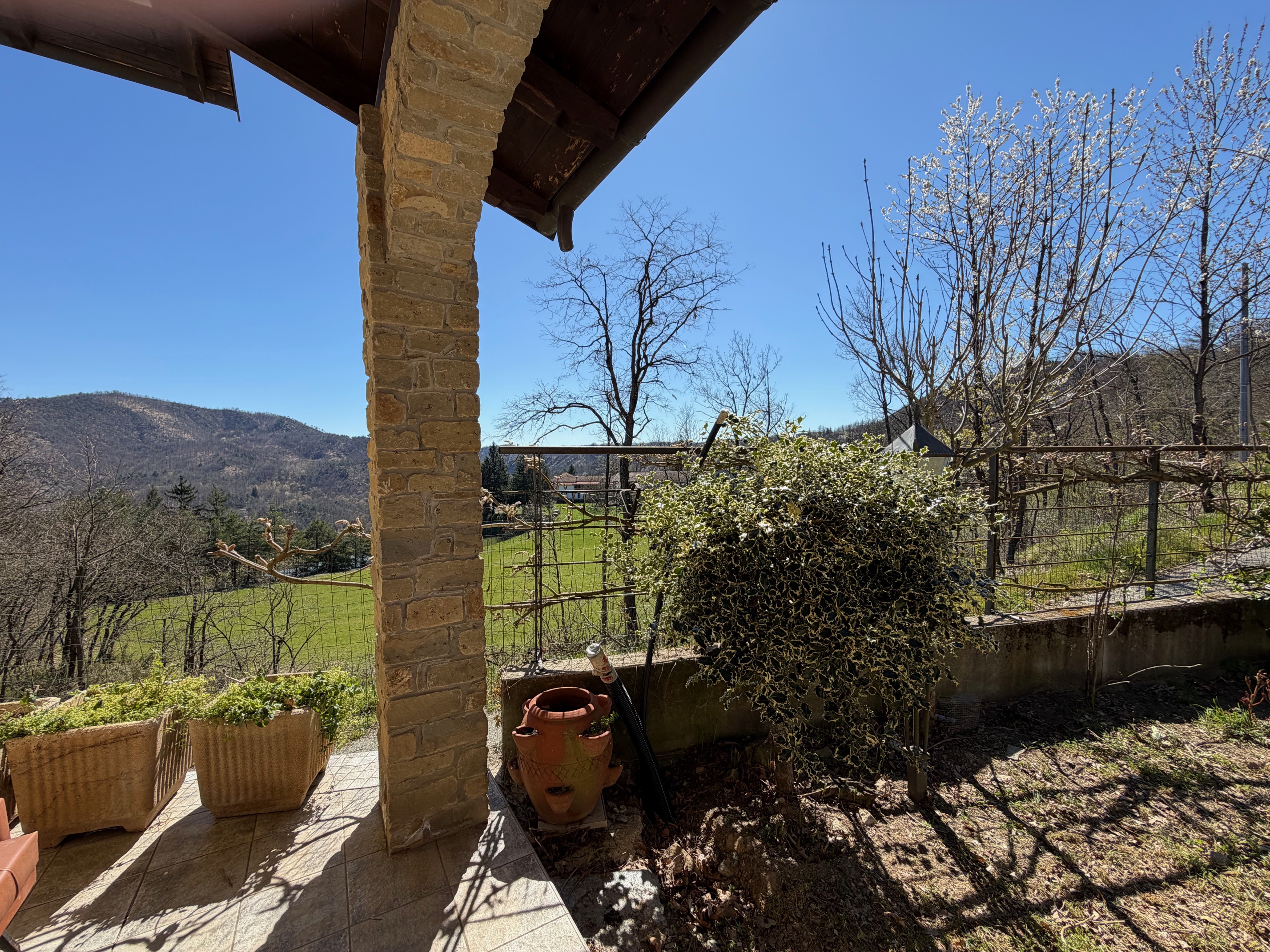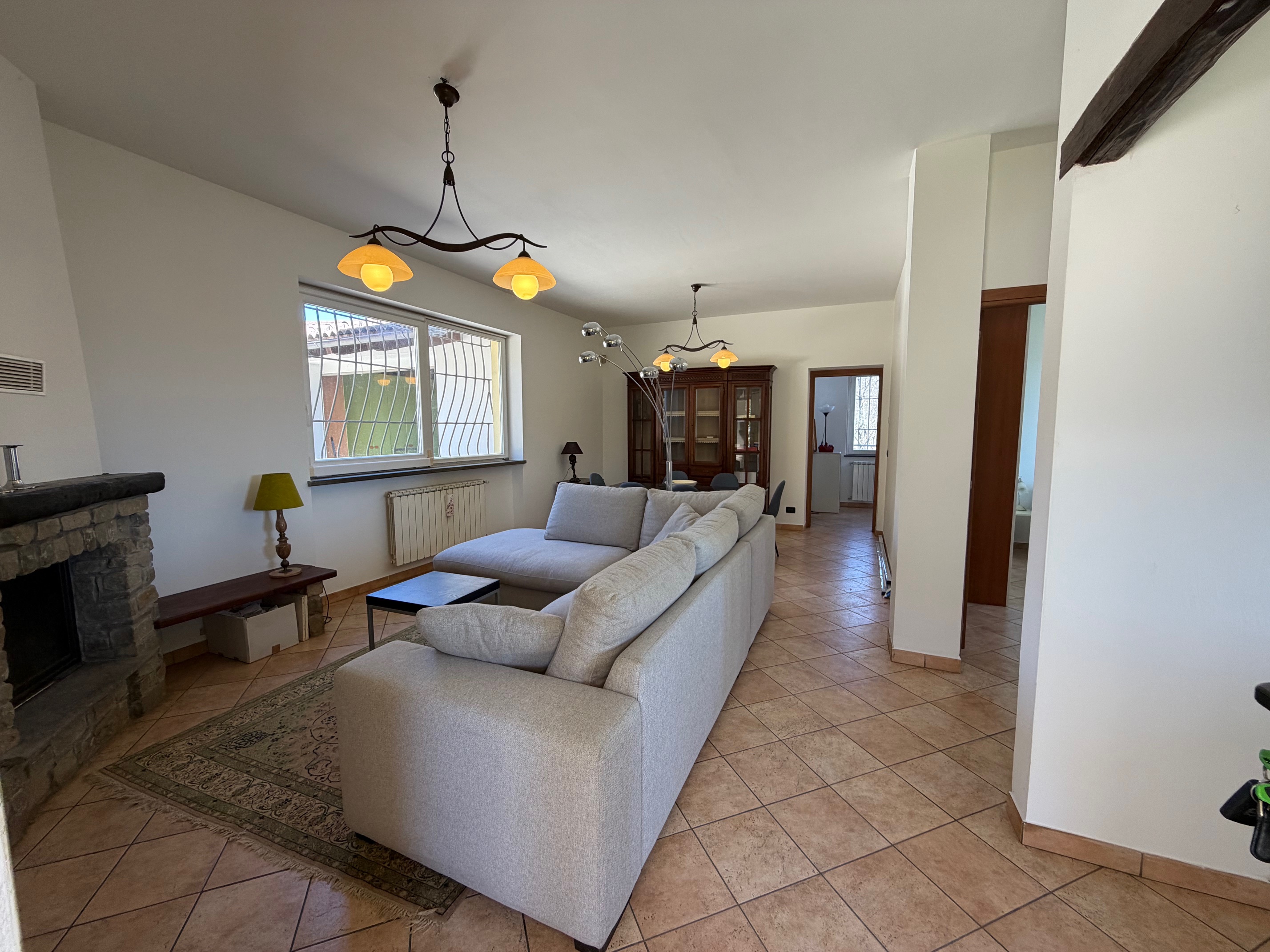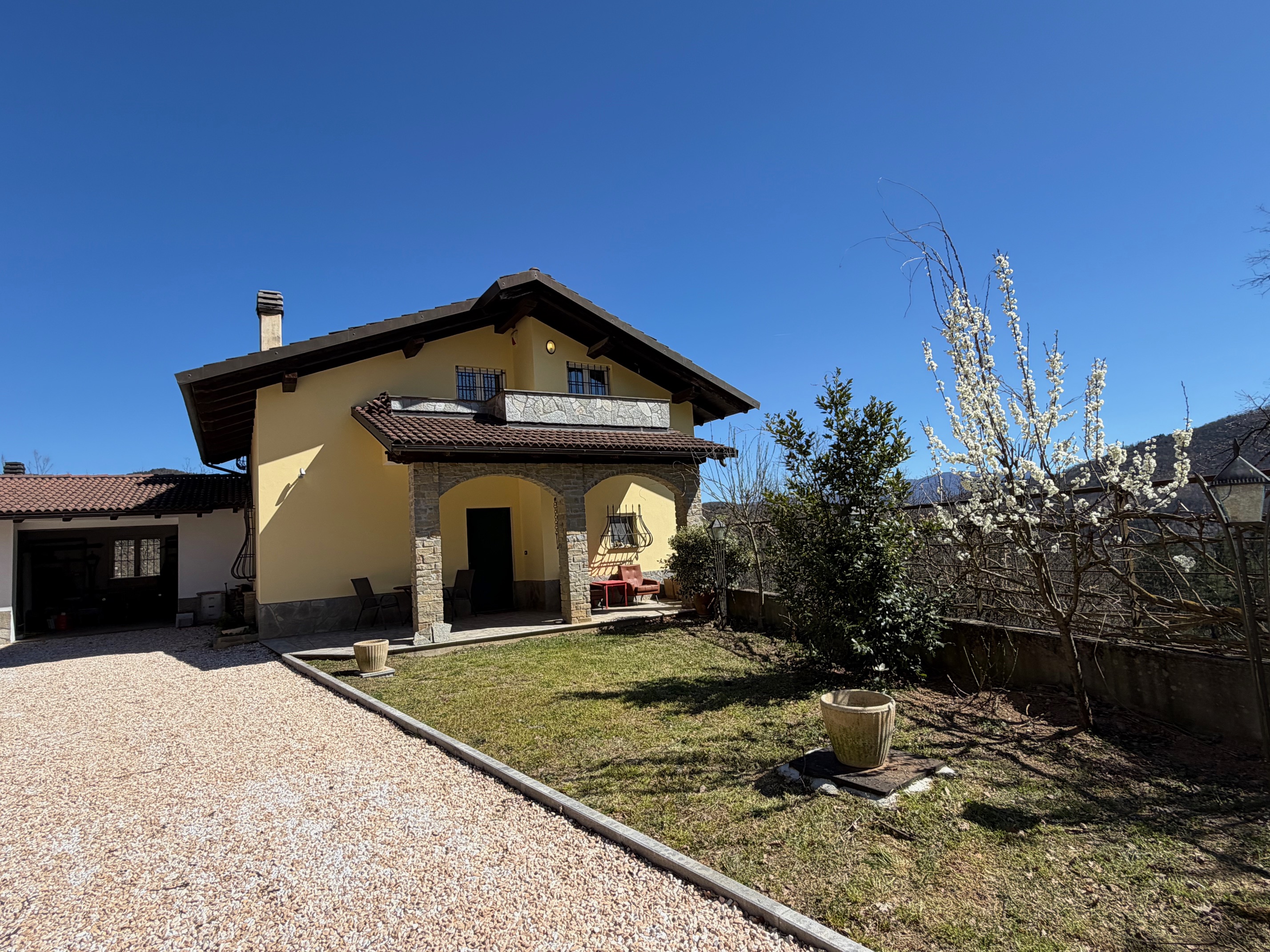 De villa, in onberispelijke staat, is omgeven door een volledig omheinde privétuin, ideaal voor wie privacy en veiligheid zoekt. De woning is verdeeld over twee verdiepingen. Op de begane grond vinden we een gezellige entree met loggia, een lichte woonkamer met open haard, een functionele keuken, een slaapkamer, een badkamer, een wasruimte en een garage. De verdieping wordt gecompleteerd door een ruime en sfeervolle veranda, perfect om aangename zomeravonden in de open lucht door te brengen. Een interne trap leidt naar de bovenverdieping, waar zich twee slaapkamers, een badkamer en een grote hal bevinden, die gemakkelijk kan worden omgevormd tot een vierde slaapkamer of een multifunctionele ruimte. Het pand omvat ongeveer 4.000 m² grond.