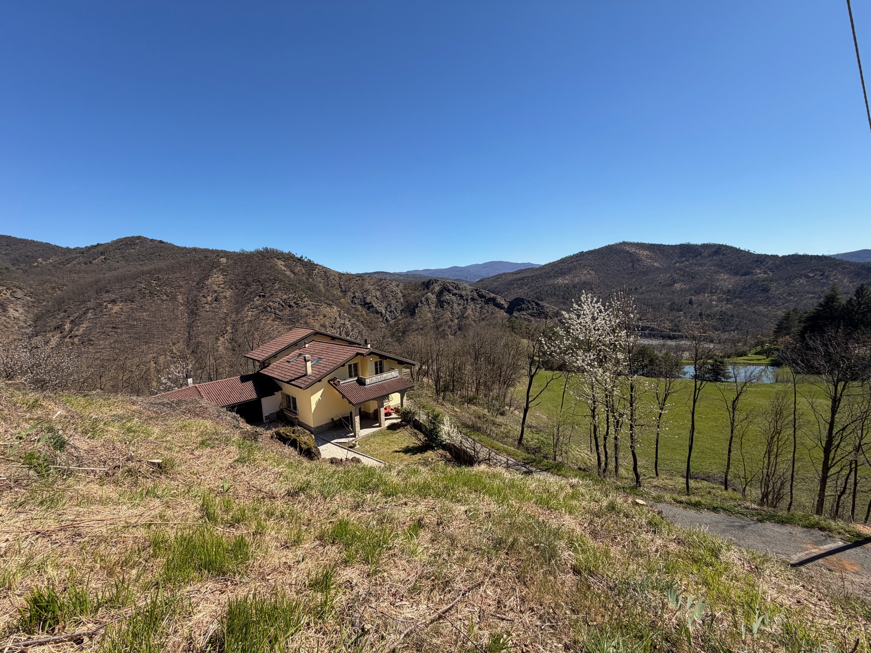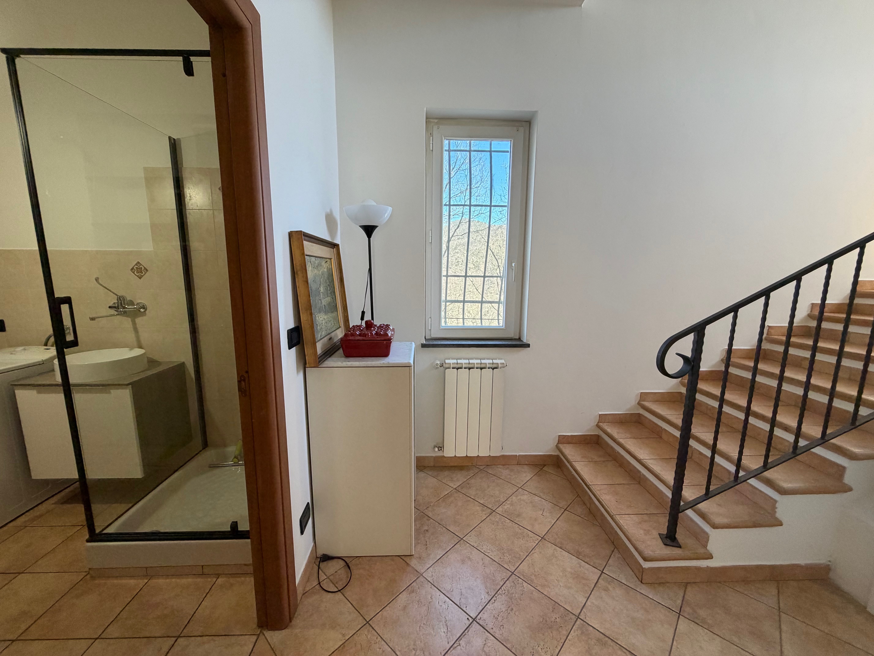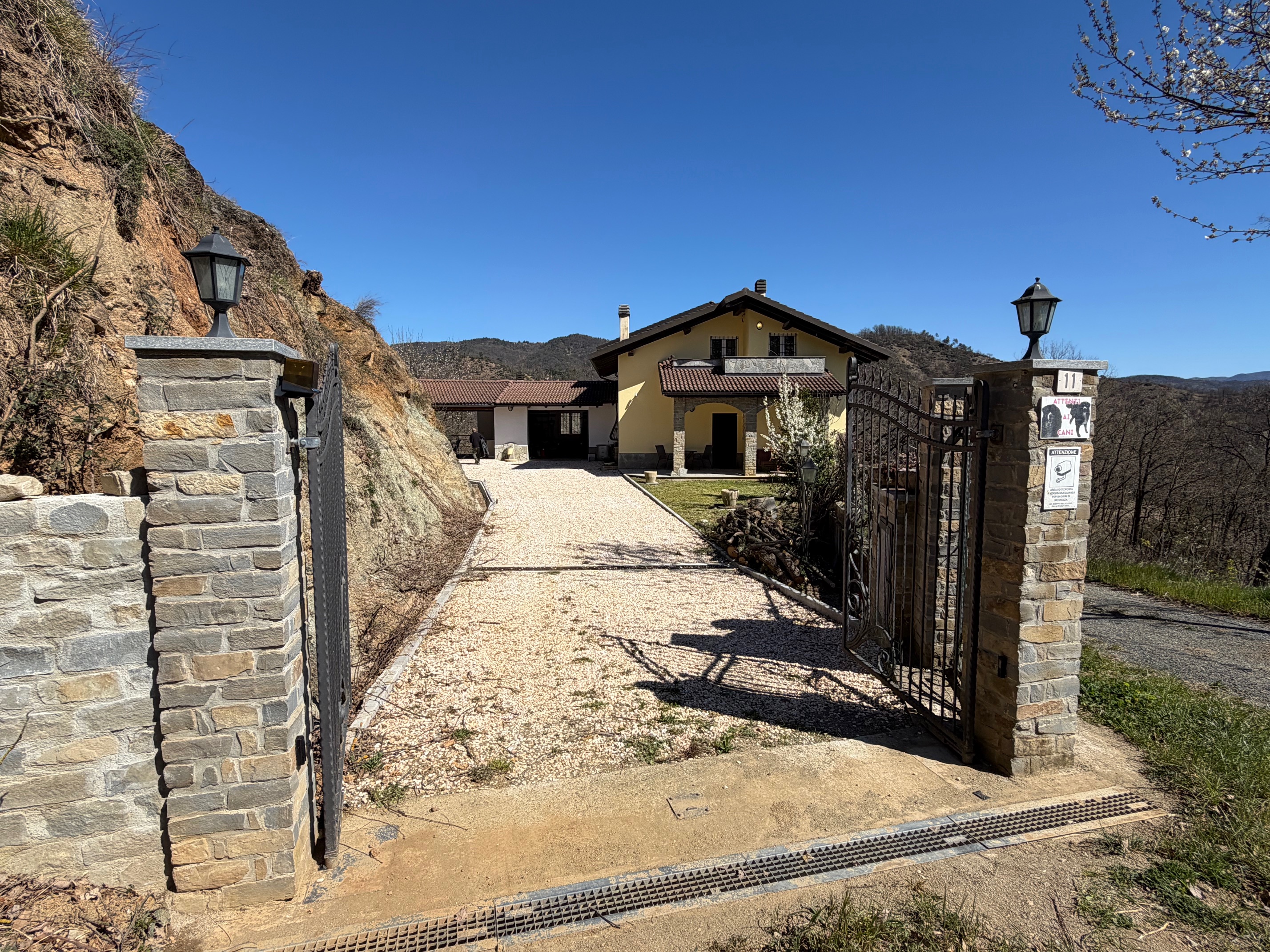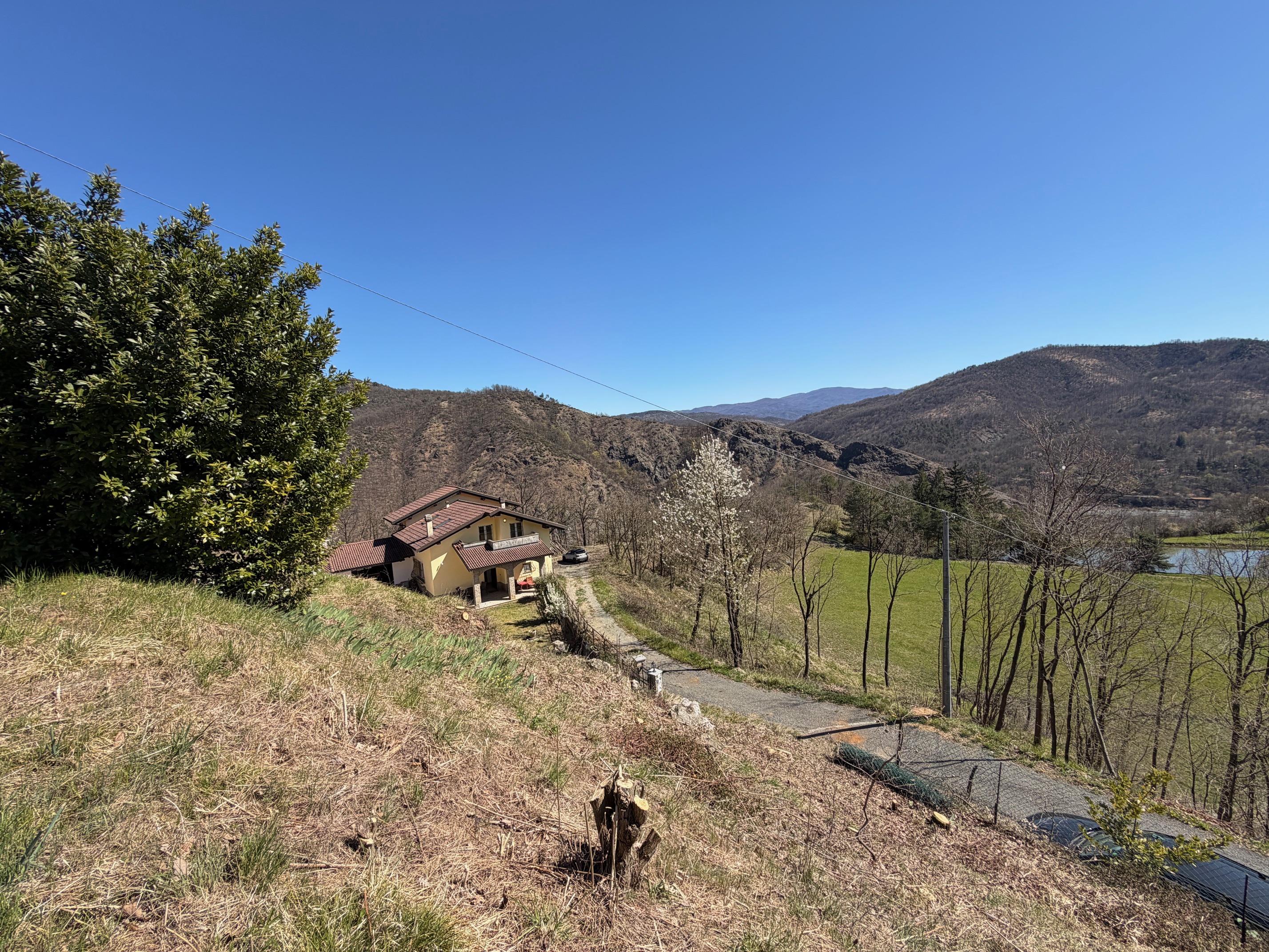 De villa, in onberispelijke staat, is omgeven door een volledig omheinde privétuin, ideaal voor wie privacy en veiligheid zoekt. De woning is verdeeld over twee verdiepingen. Op de begane grond vinden we een gezellige entree met loggia, een lichte woonkamer met open haard, een functionele keuken, een slaapkamer, een badkamer, een wasruimte en een garage. De verdieping wordt gecompleteerd door een ruime en sfeervolle veranda, perfect om aangename zomeravonden in de open lucht door te brengen. Een interne trap leidt naar de bovenverdieping, waar zich twee slaapkamers, een badkamer en een grote hal bevinden, die gemakkelijk kan worden omgevormd tot een vierde slaapkamer of een multifunctionele ruimte. Het pand omvat ongeveer 4.000 m² grond.