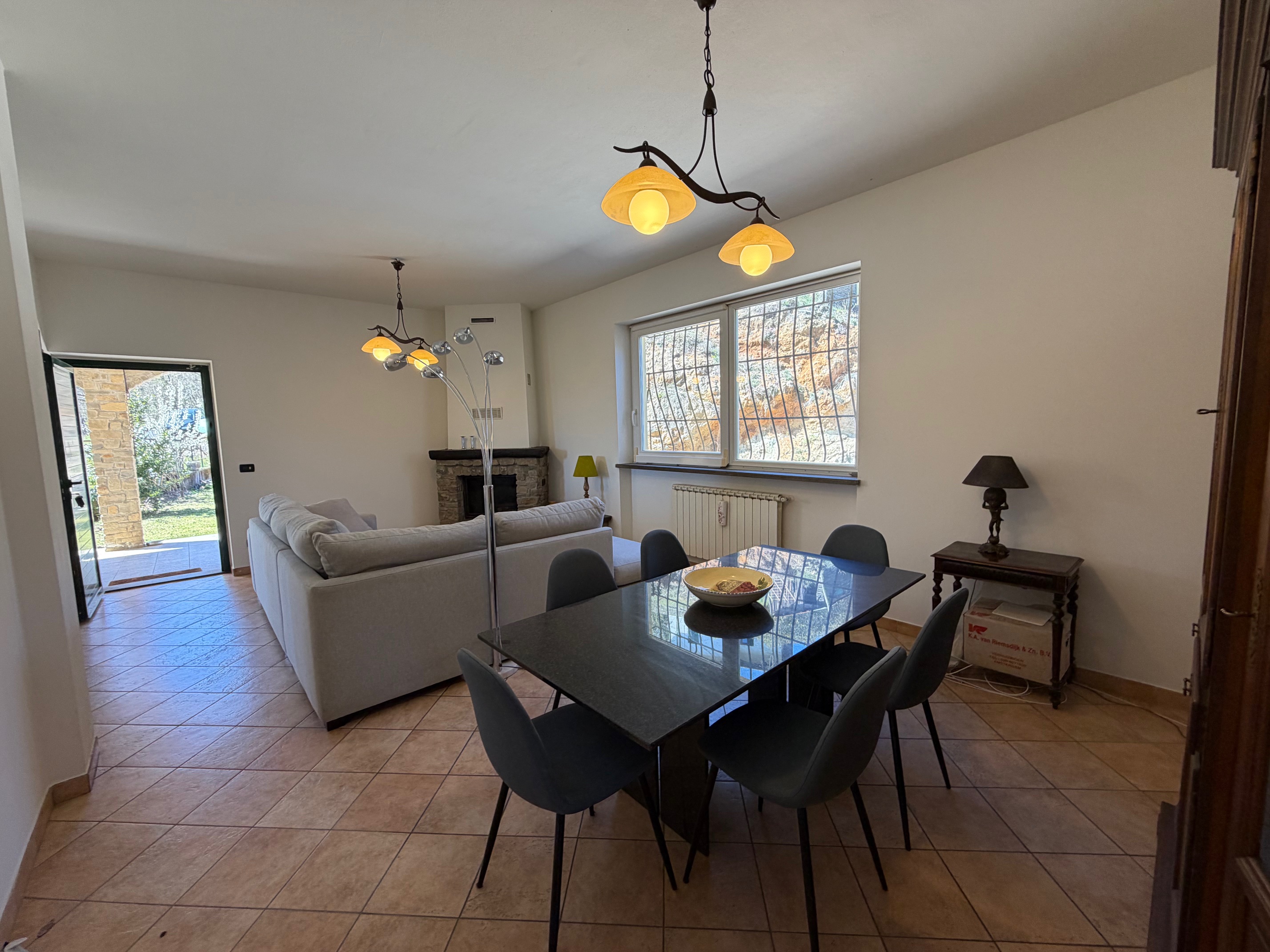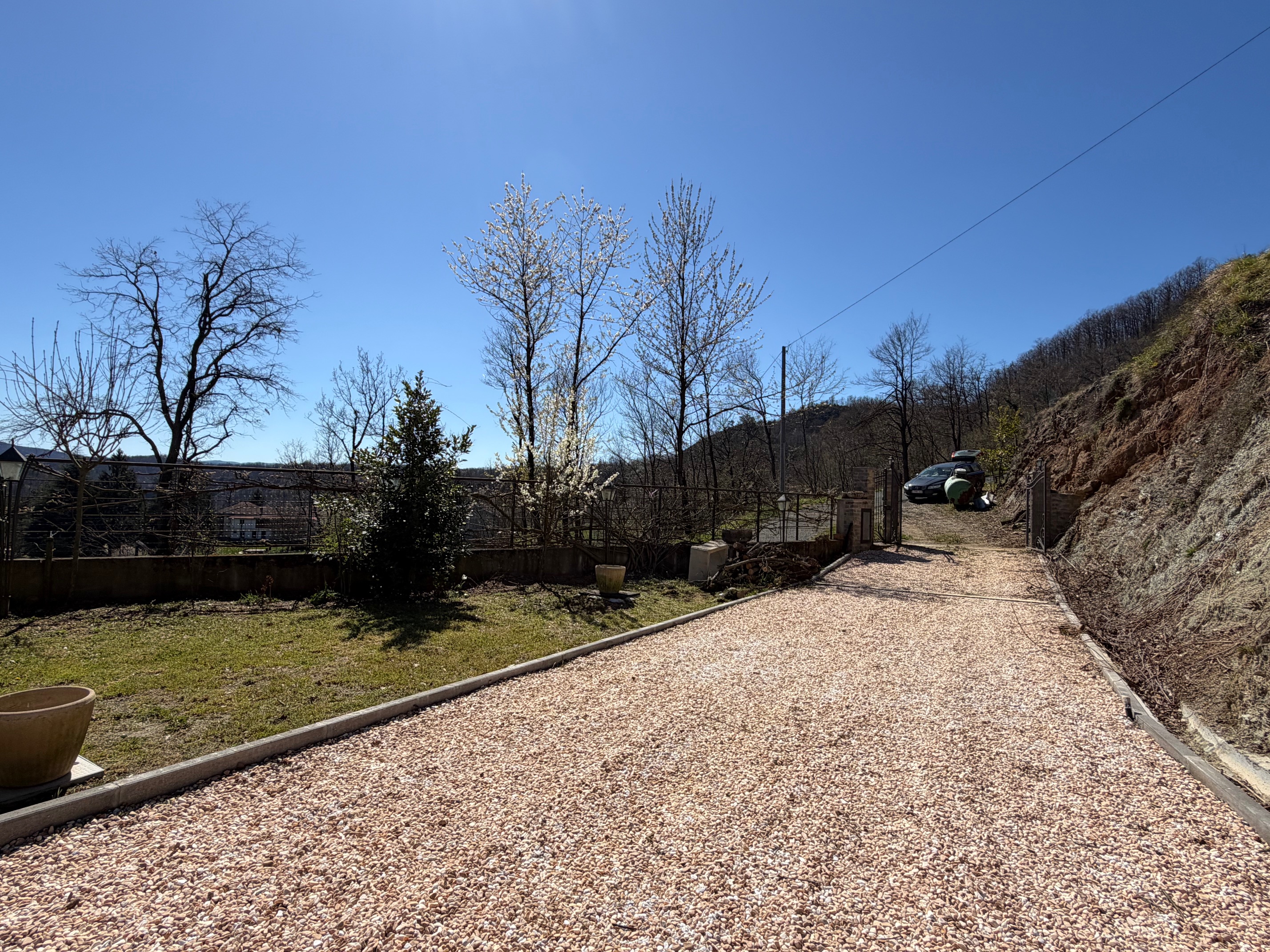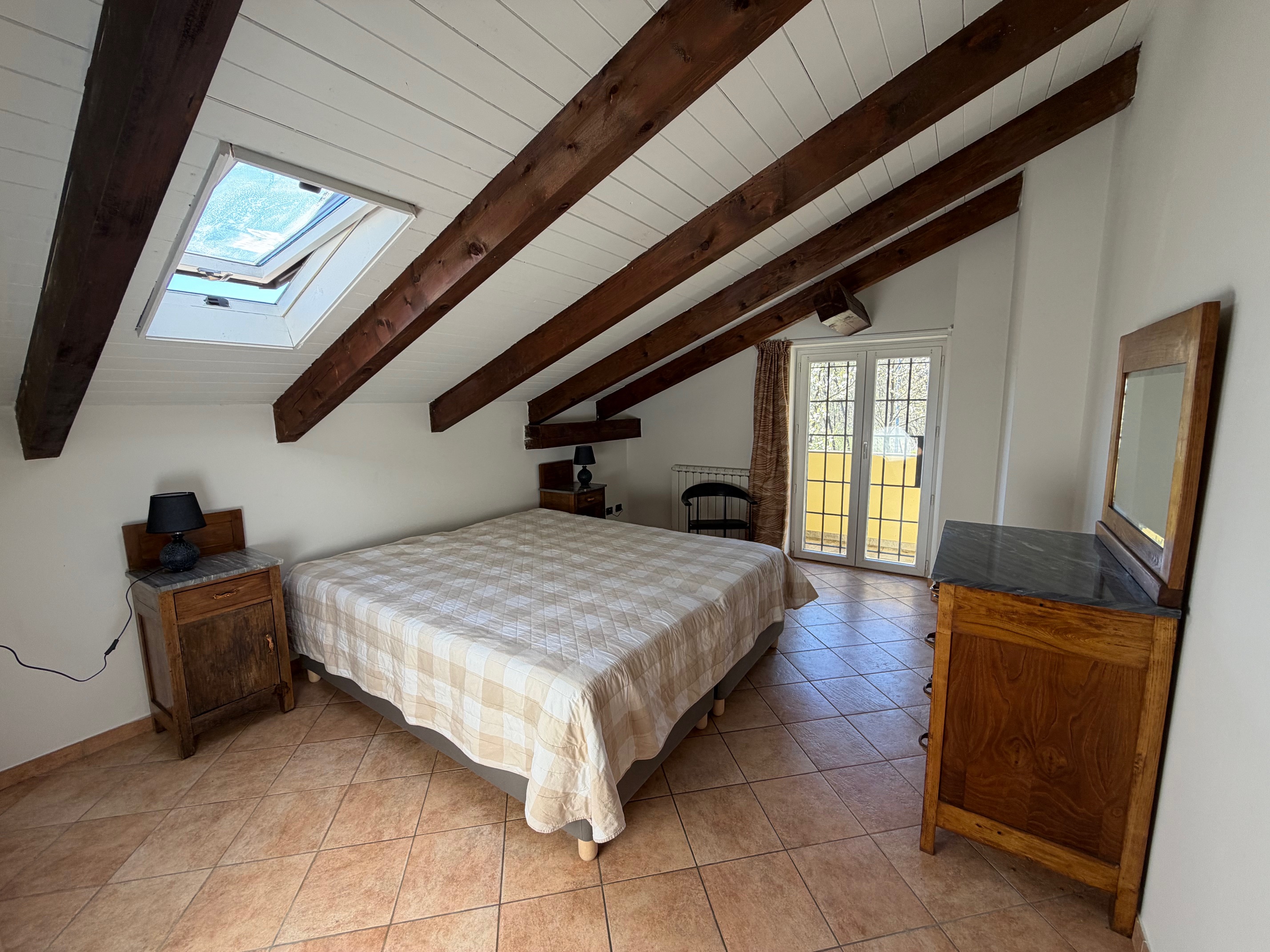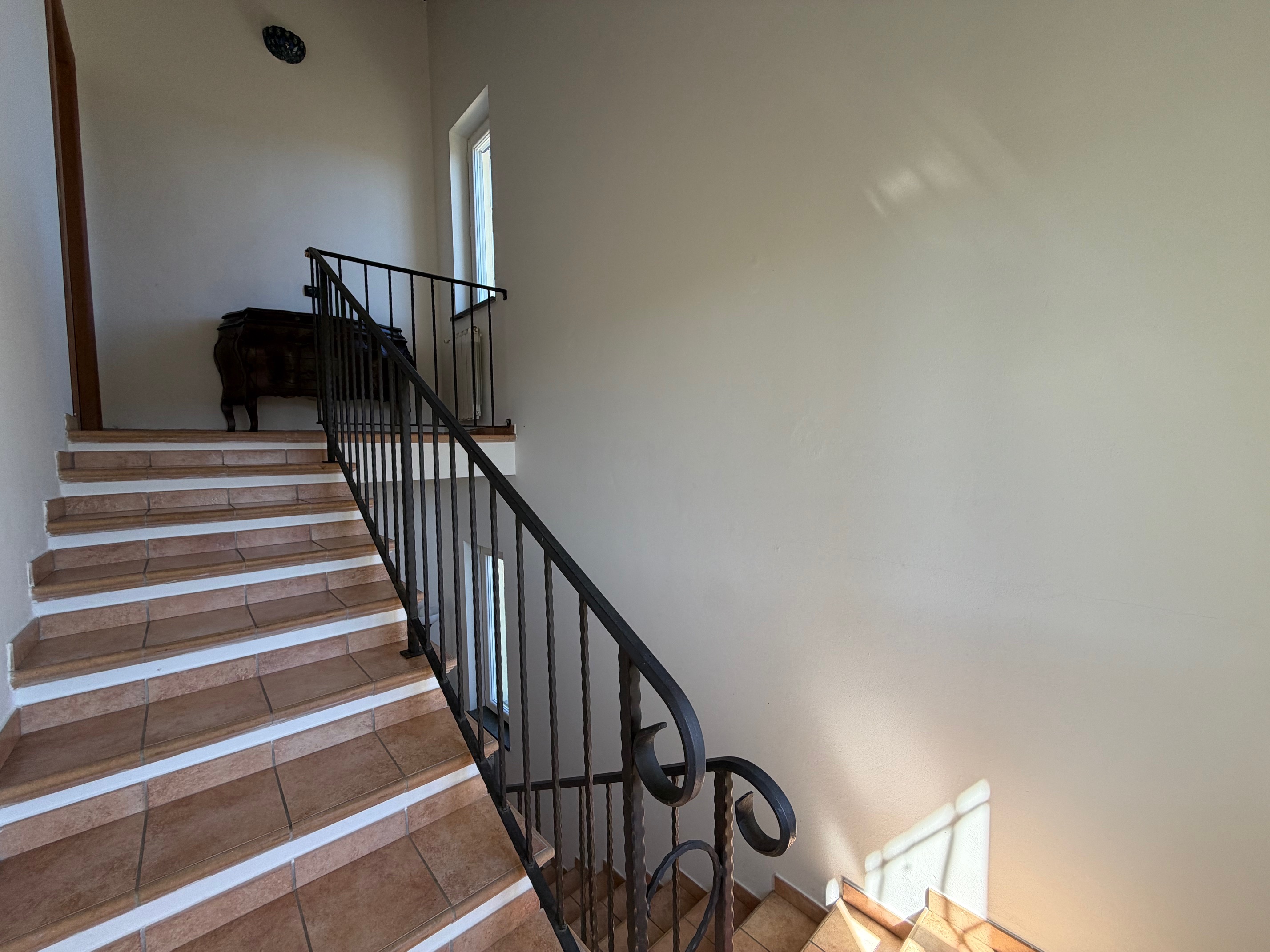 De villa, in onberispelijke staat, is omgeven door een volledig omheinde privétuin, ideaal voor wie privacy en veiligheid zoekt. De woning is verdeeld over twee verdiepingen. Op de begane grond vinden we een gezellige entree met loggia, een lichte woonkamer met open haard, een functionele keuken, een slaapkamer, een badkamer, een wasruimte en een garage. De verdieping wordt gecompleteerd door een ruime en sfeervolle veranda, perfect om aangename zomeravonden in de open lucht door te brengen. Een interne trap leidt naar de bovenverdieping, waar zich twee slaapkamers, een badkamer en een grote hal bevinden, die gemakkelijk kan worden omgevormd tot een vierde slaapkamer of een multifunctionele ruimte. Het pand omvat ongeveer 4.000 m² grond.