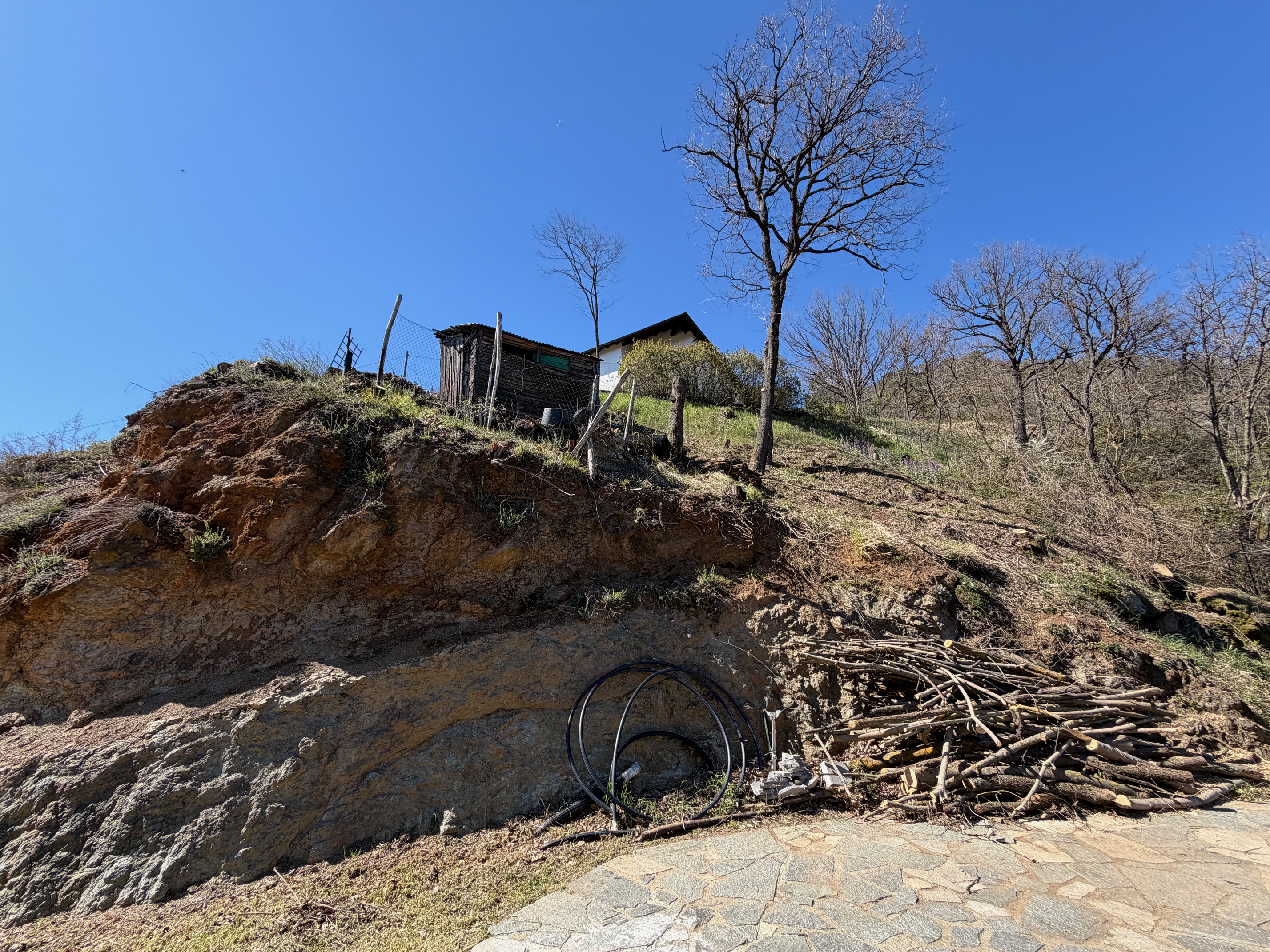Dit is niet het klassieke Piemontese boerderijtje dat je in de Langhe tegenkomt. Deze woning lijkt zo uit een sprookje te komen: een klein stenen huisje, met een bijna Bretonse charme, rustig gelegen in de heuvels van de Alta Langa, waar het licht speelt op de zichtbare muren en de stilte alleen wordt doorbroken door het ruisen van de wind in de weiden.