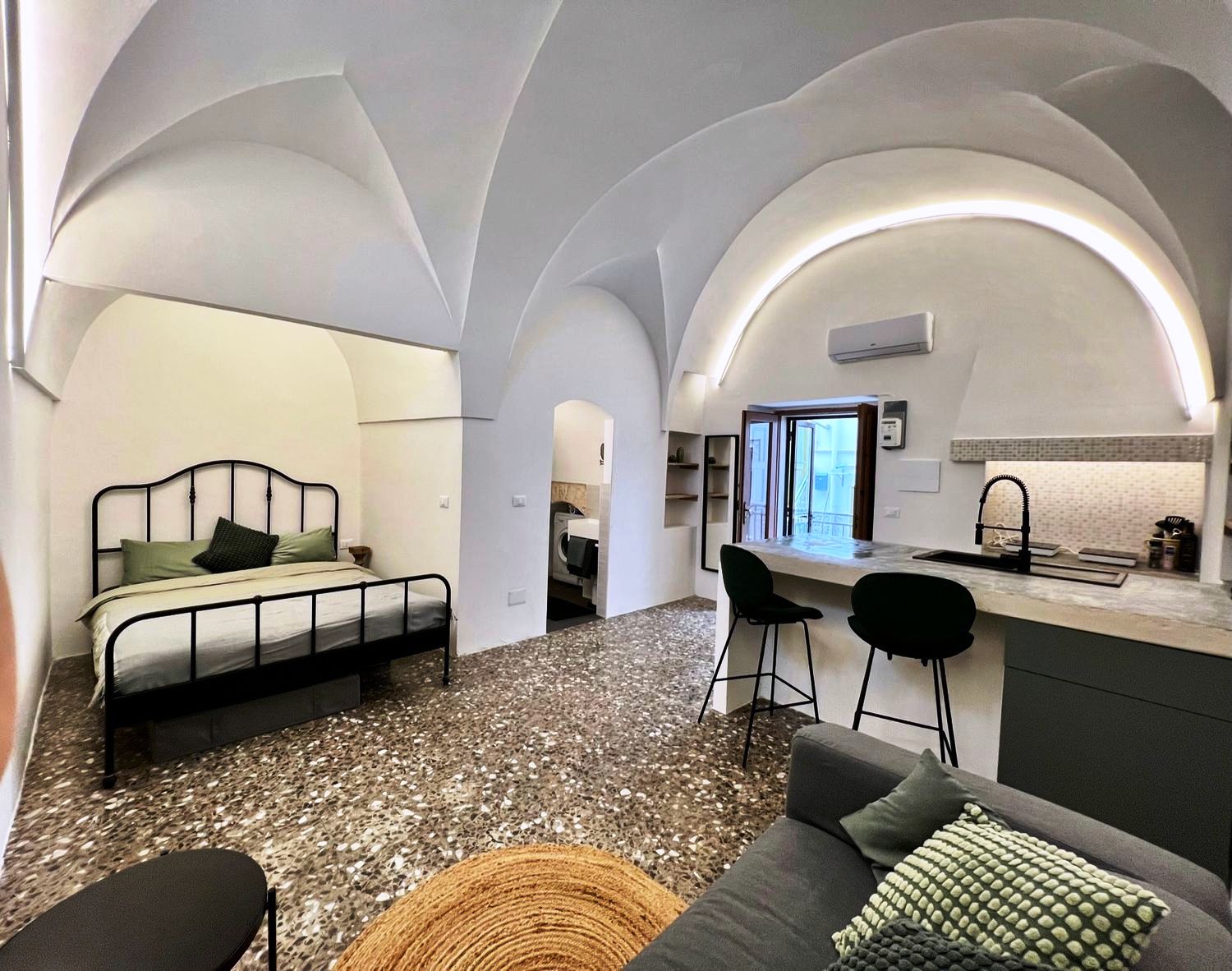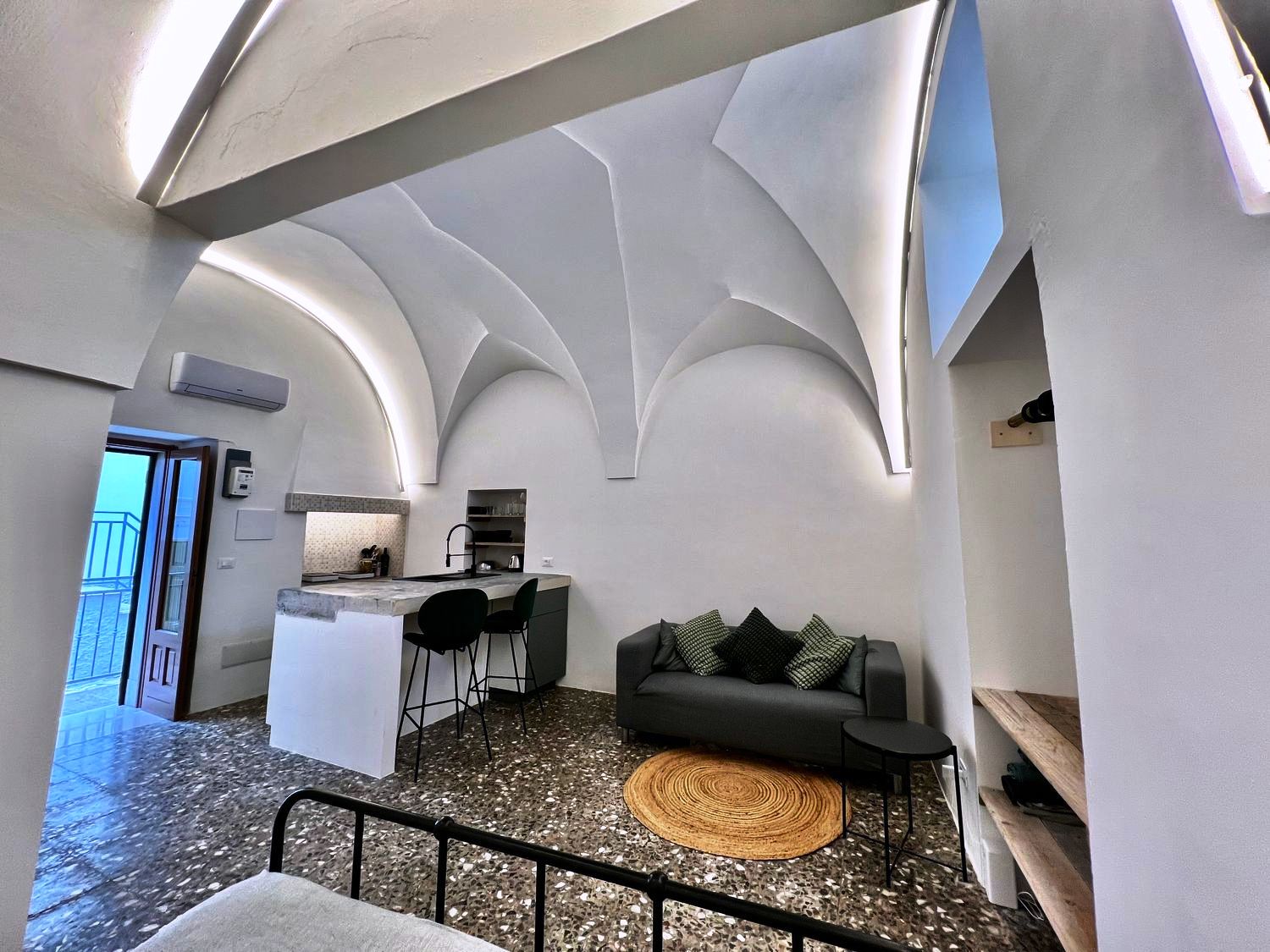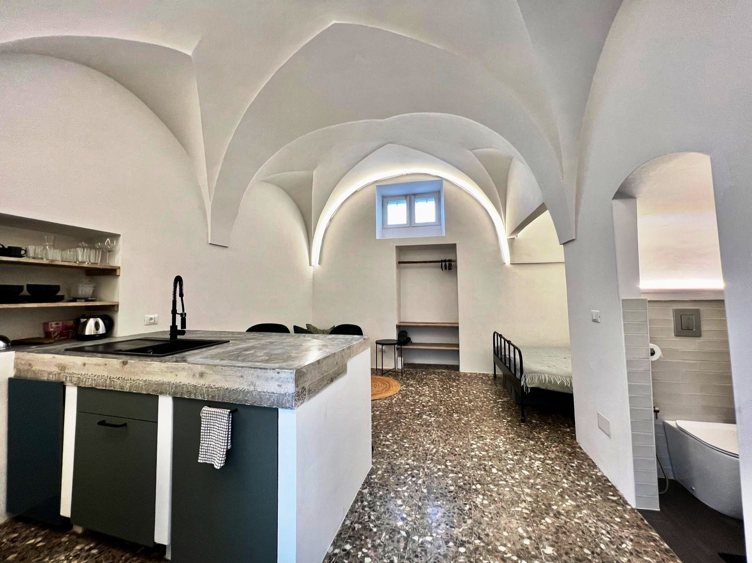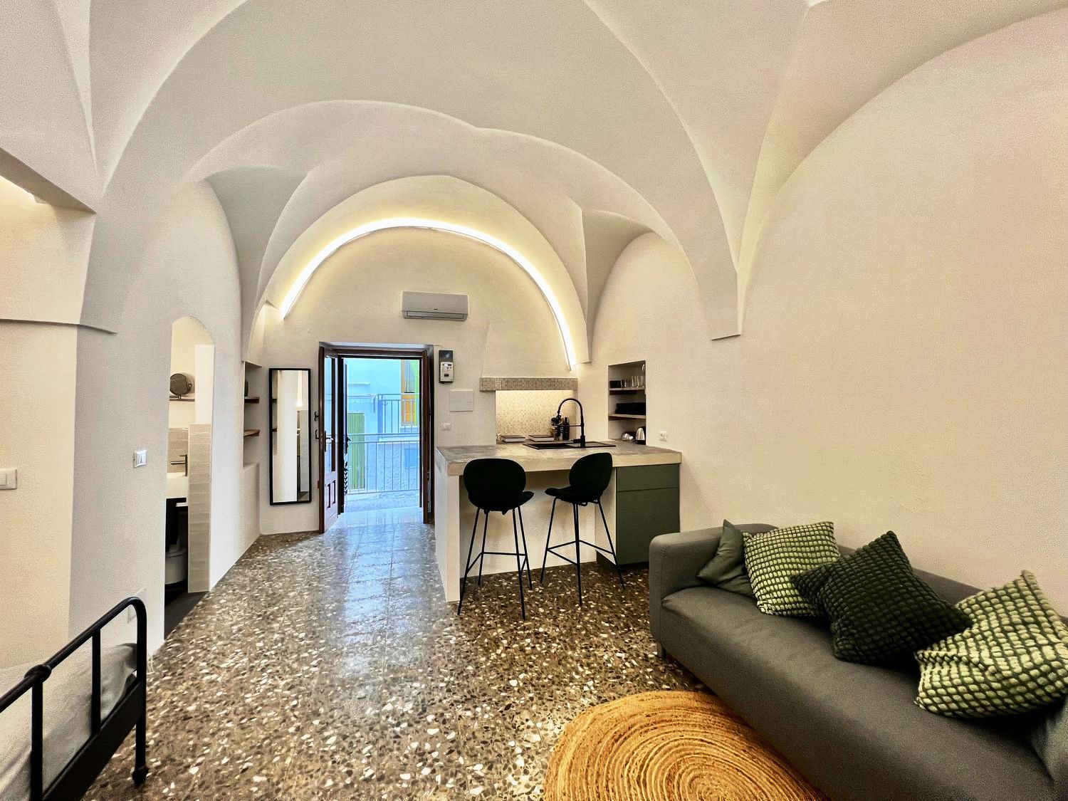 De betovering van het verleden: het huis was een oud huis van een lokale familie, volledig gerestaureerd door de huidige eigenaar, die de oude uitstraling heeft weten te herstellen en het nieuw leven heeft inblazen. Het huis is een ruim en comfortabel studio-appartement, met een tweepersoonsbed in een alkoof, een grote woonkamer met een slaapbank, een open keuken met kookeiland, een comfortabele badkamer, airconditioning en wifi. De woning beschikt over een ondergrondse berging van circa 25 m².