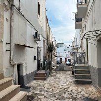 Ceglie Messapica – Aan een typische 19de-eeuwse straat, nog geplaveid met typische lokale chianche-stenen, waar de dominante kleur nog steeds zuiver wit is, ligt dit volledig gerenoveerde, mooie studio-appartement op de tussenverdieping.
