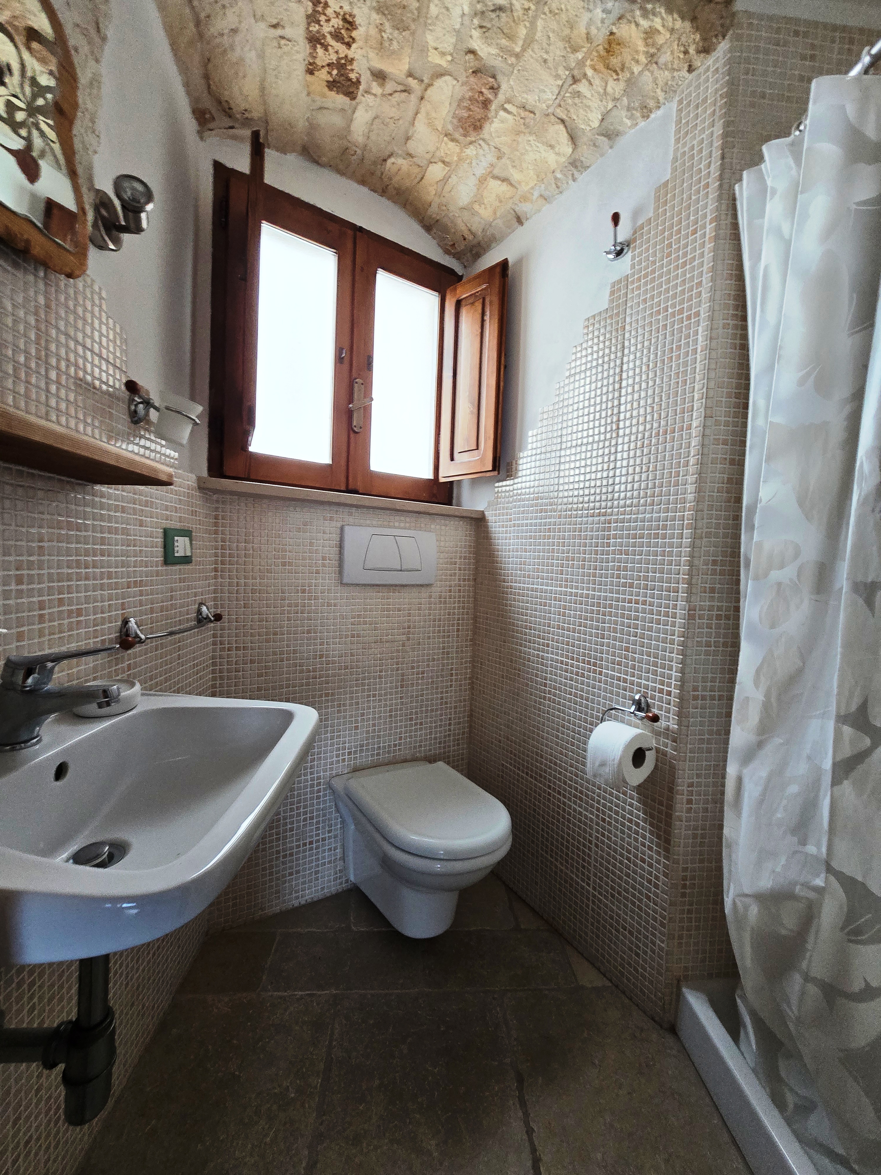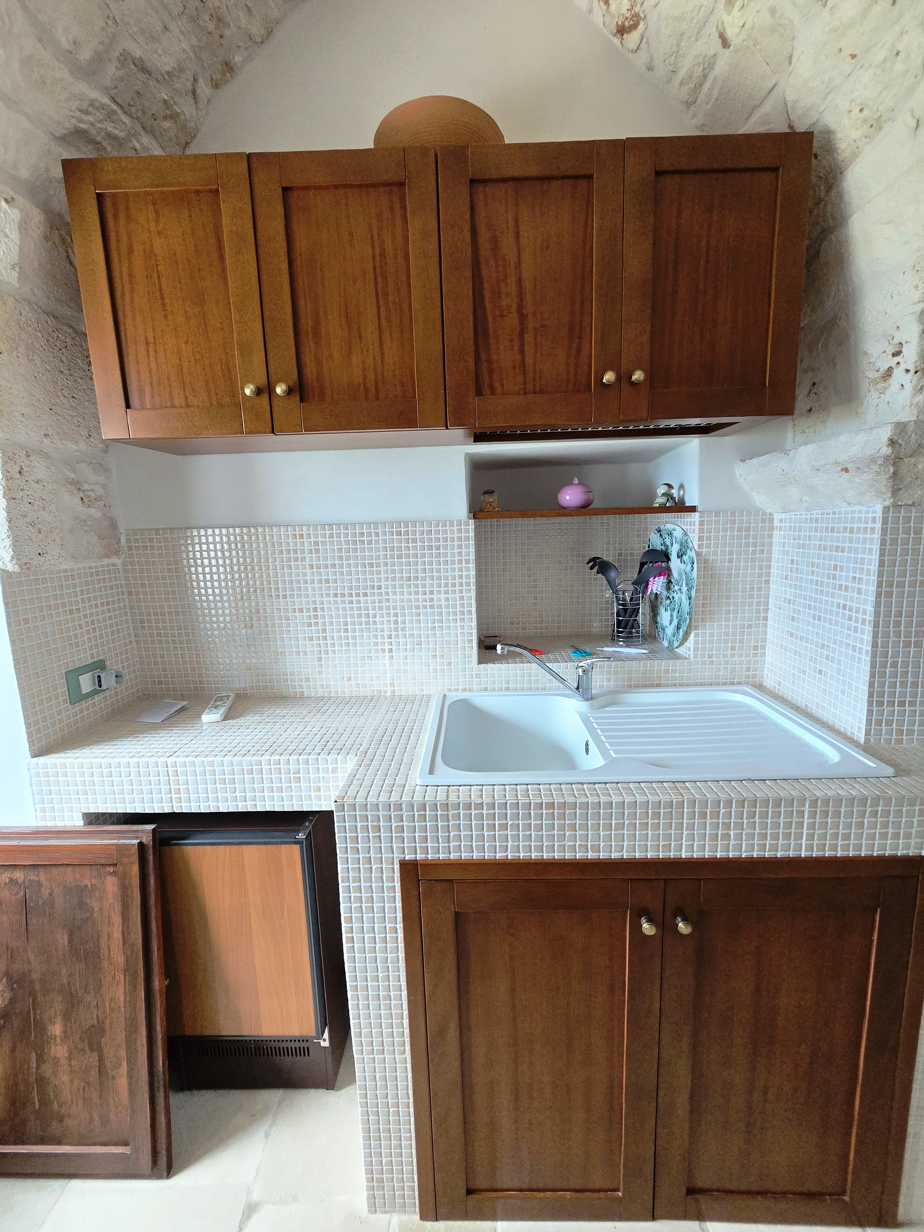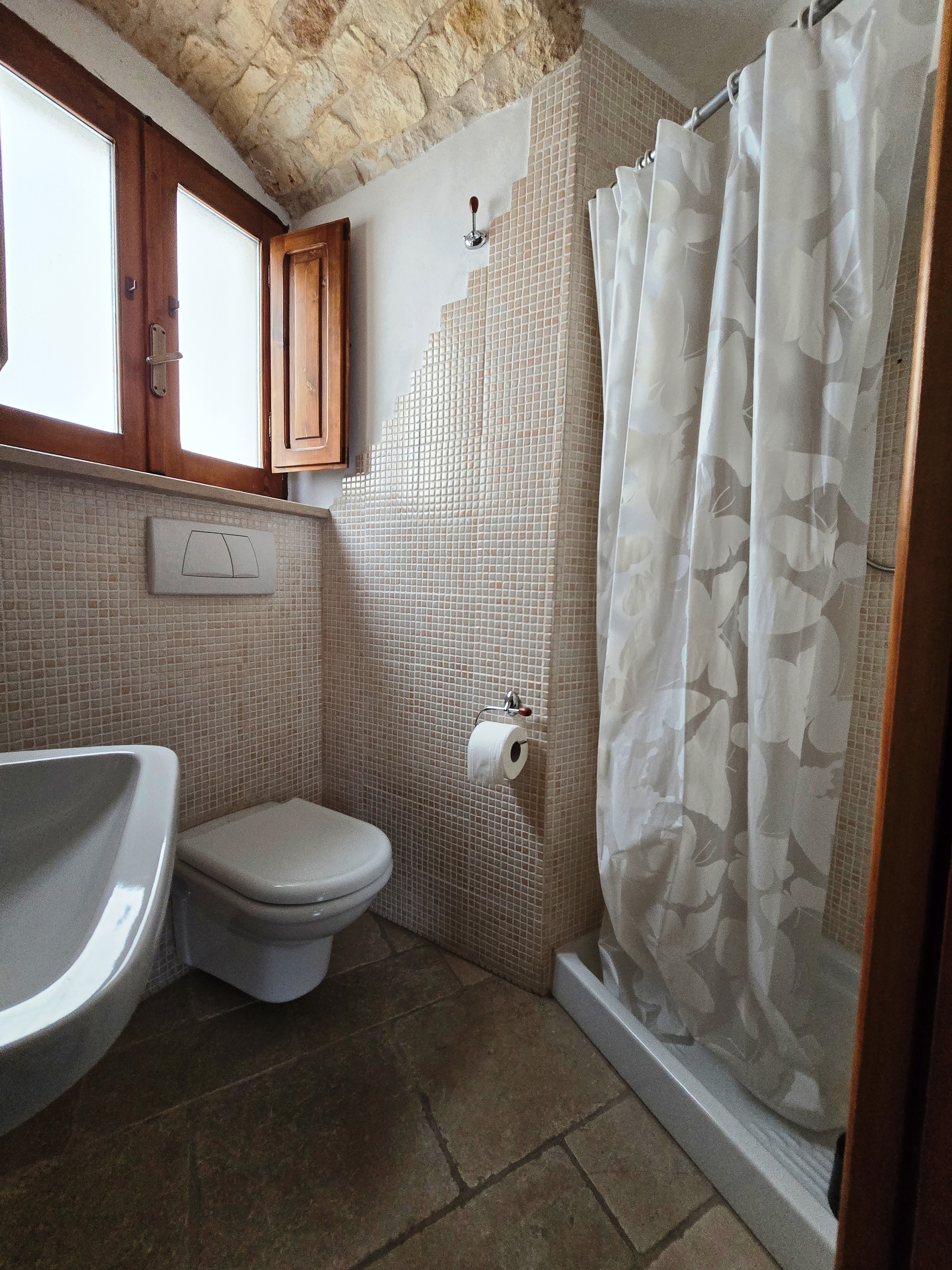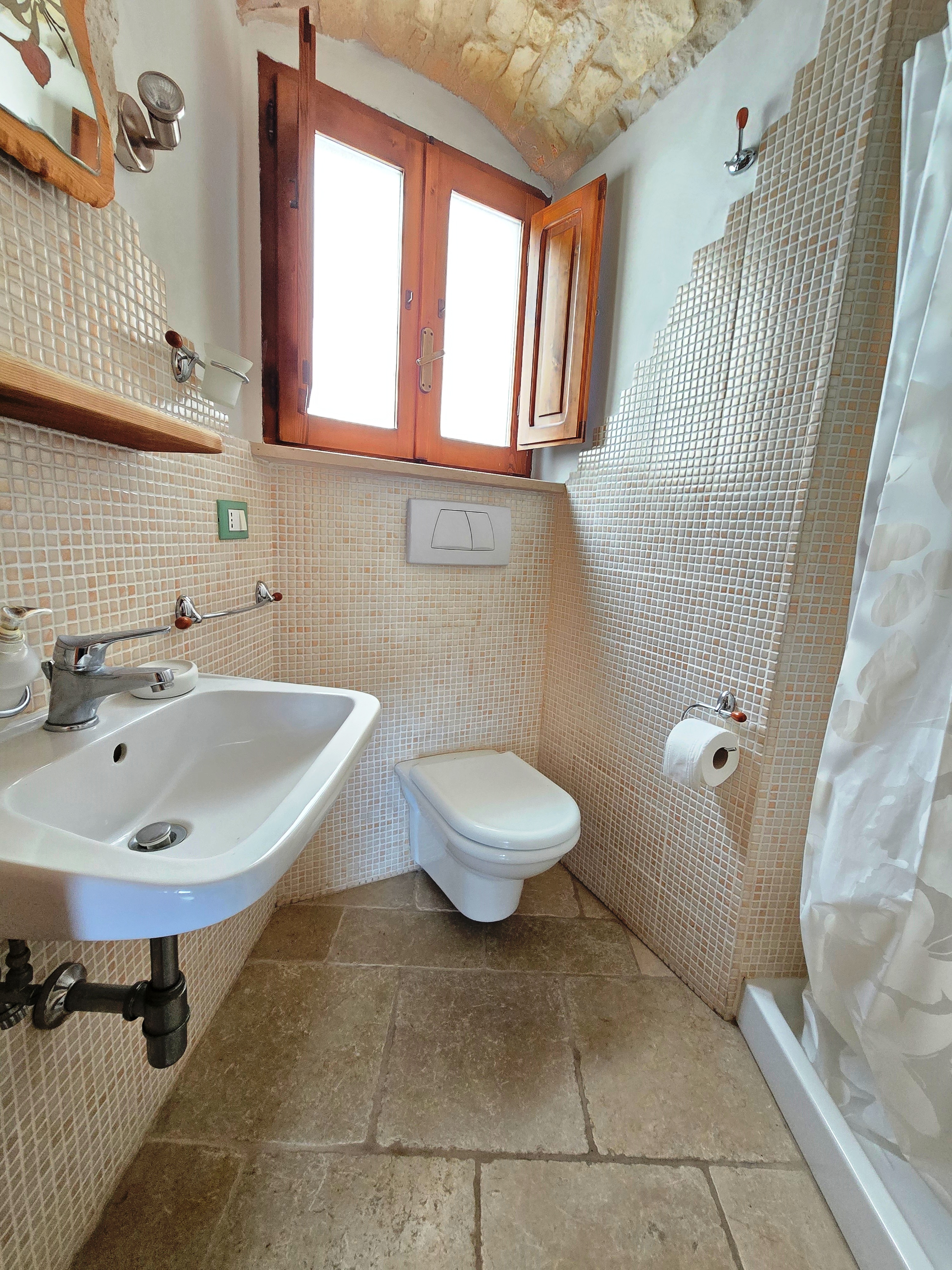 Het volledig gerenoveerde studio-appartement op de eerste verdieping is circa 30 m² groot en bestaat uit één ruimte met een woon-/slaapkamer, ingebouwde kitchenette, een kleine badkamer met douche en een prachtig panoramisch terras met een prachtig uitzicht op de eeuwenoude olijfgaarden in de omgeving en de Adriatische Zee.