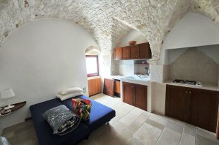 Een karakteristiek natuurstenen huis in het hart van het historische centrum van Ostuni, gelegen aan één van de oudste toegangspoorten van de Witte Stad.