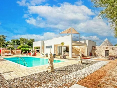 Te koop op het prachtige platteland van Carovigno, op een verhoogde en panoramische locatie met zeezicht, een prestigieuze villa met trullo en een infinity pool. De villa beschikt over een ruime woonkamer/keuken, drie slaapkamers en drie badkamers. Het is van alle moderne gemakken voorzien en de villa is tevens geschikt om het hele jaar door te bewonen. Neem gerust contact met ons op voor meer informatie of om een bezichtiging in te plannen.