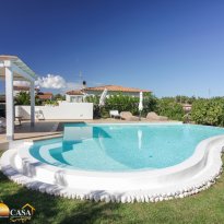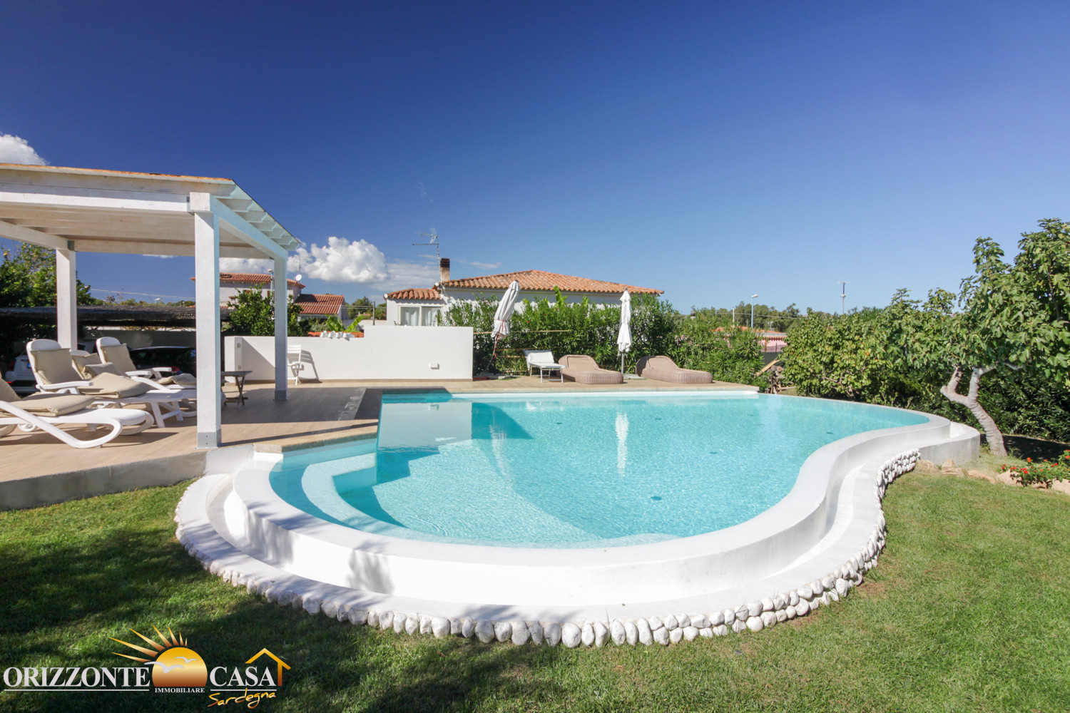 De villa is voorzien van moderne gemakken zoals airconditioning, dubbele beglazing, internetverbinding en zonnepanelen, wat bijdraagt aan energie-efficiëntie en hedendaags wooncomfort. Buiten wordt u omringd door een fraai aangelegde tuin met automatisch irrigatiesysteem, waar privacy en rust centraal staan. Het absolute hoogtepunt is het privézwembad, perfect om te ontspannen onder de Sardijnse zon.
