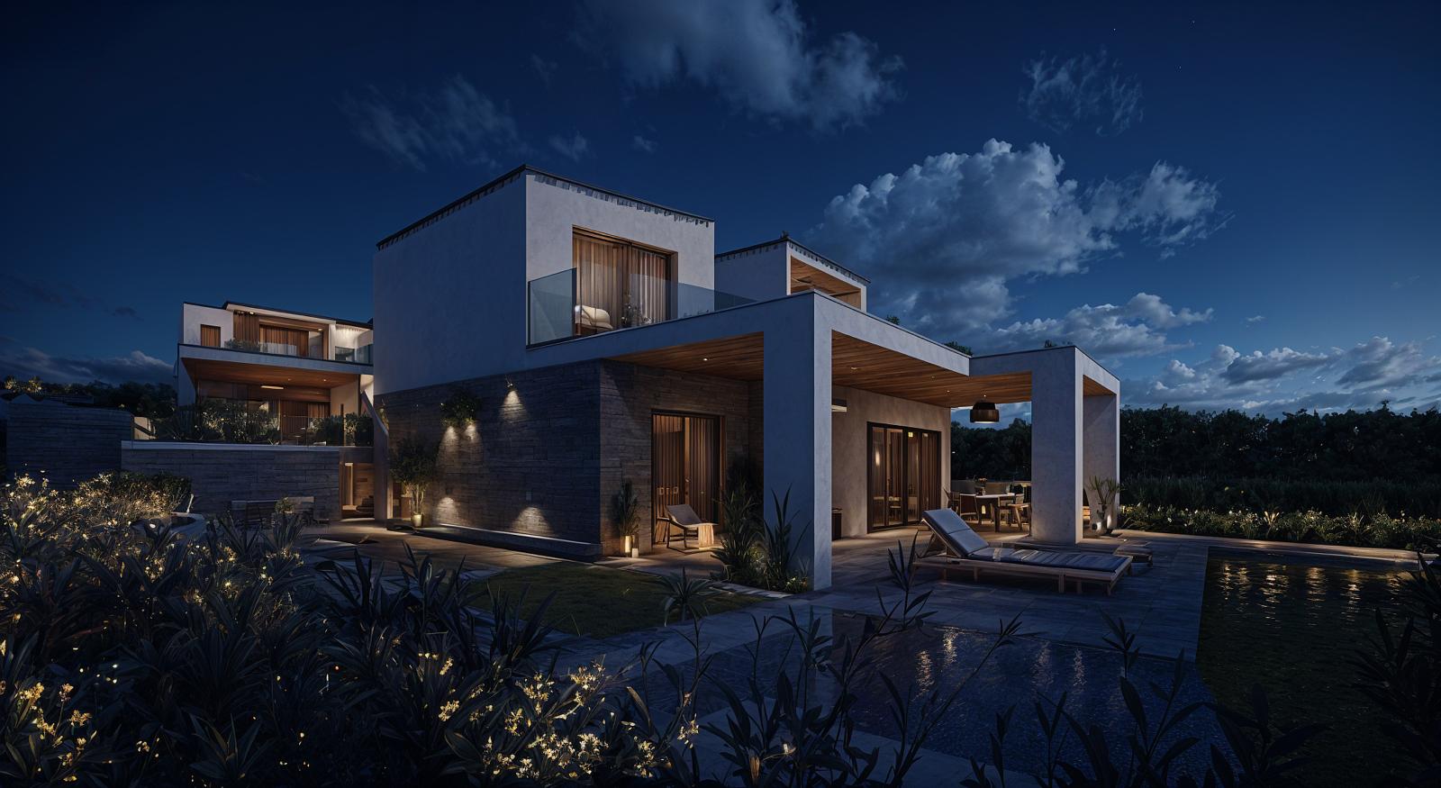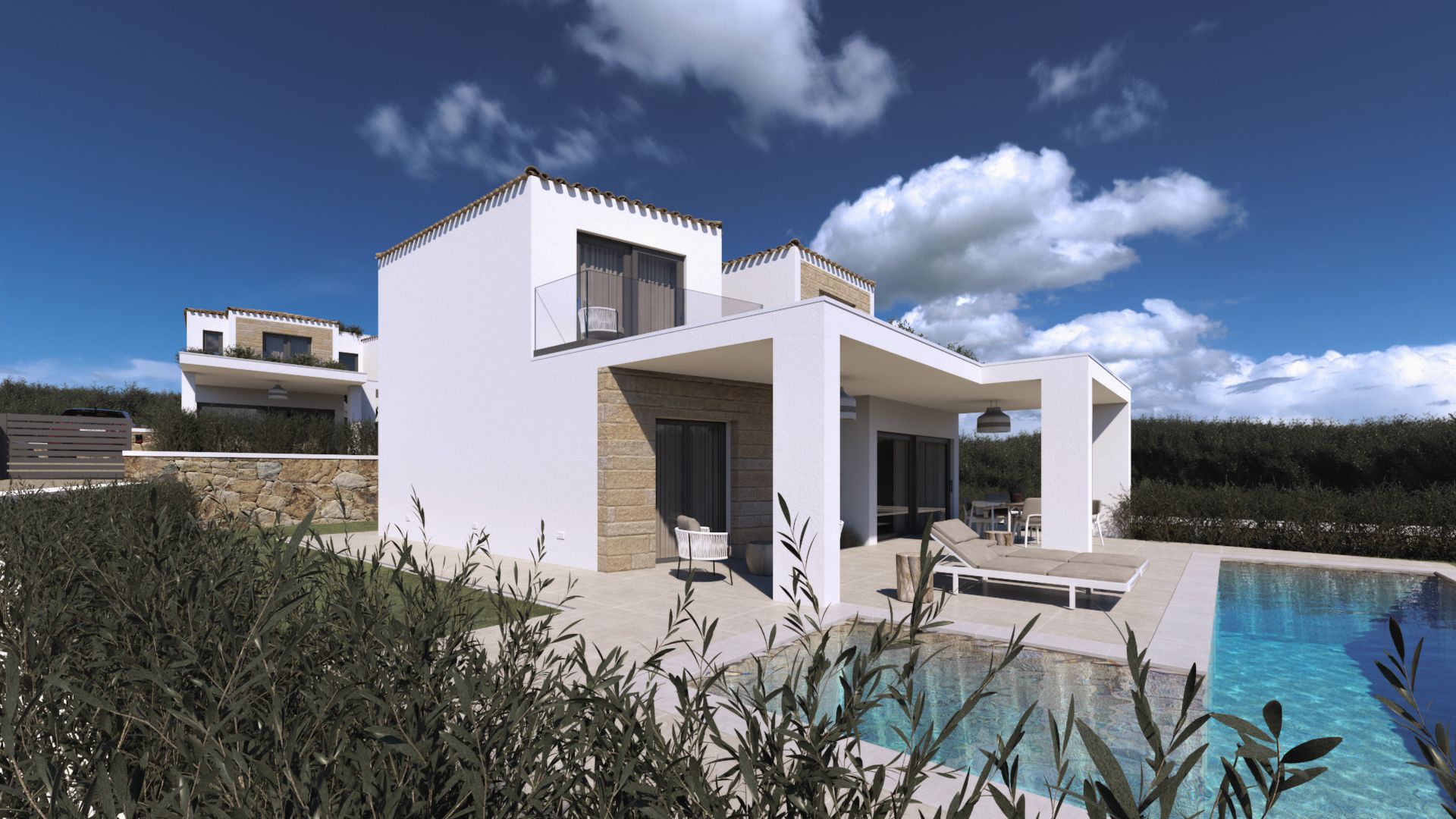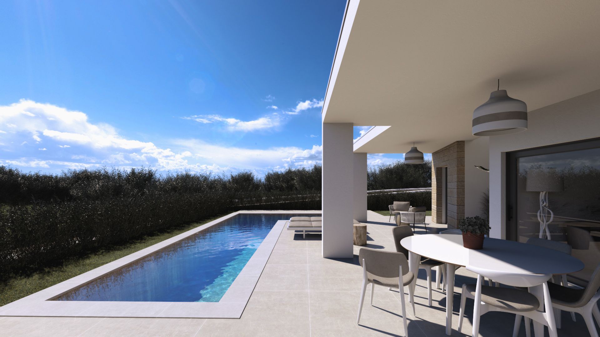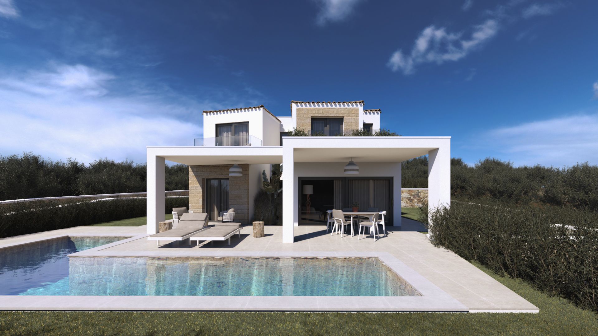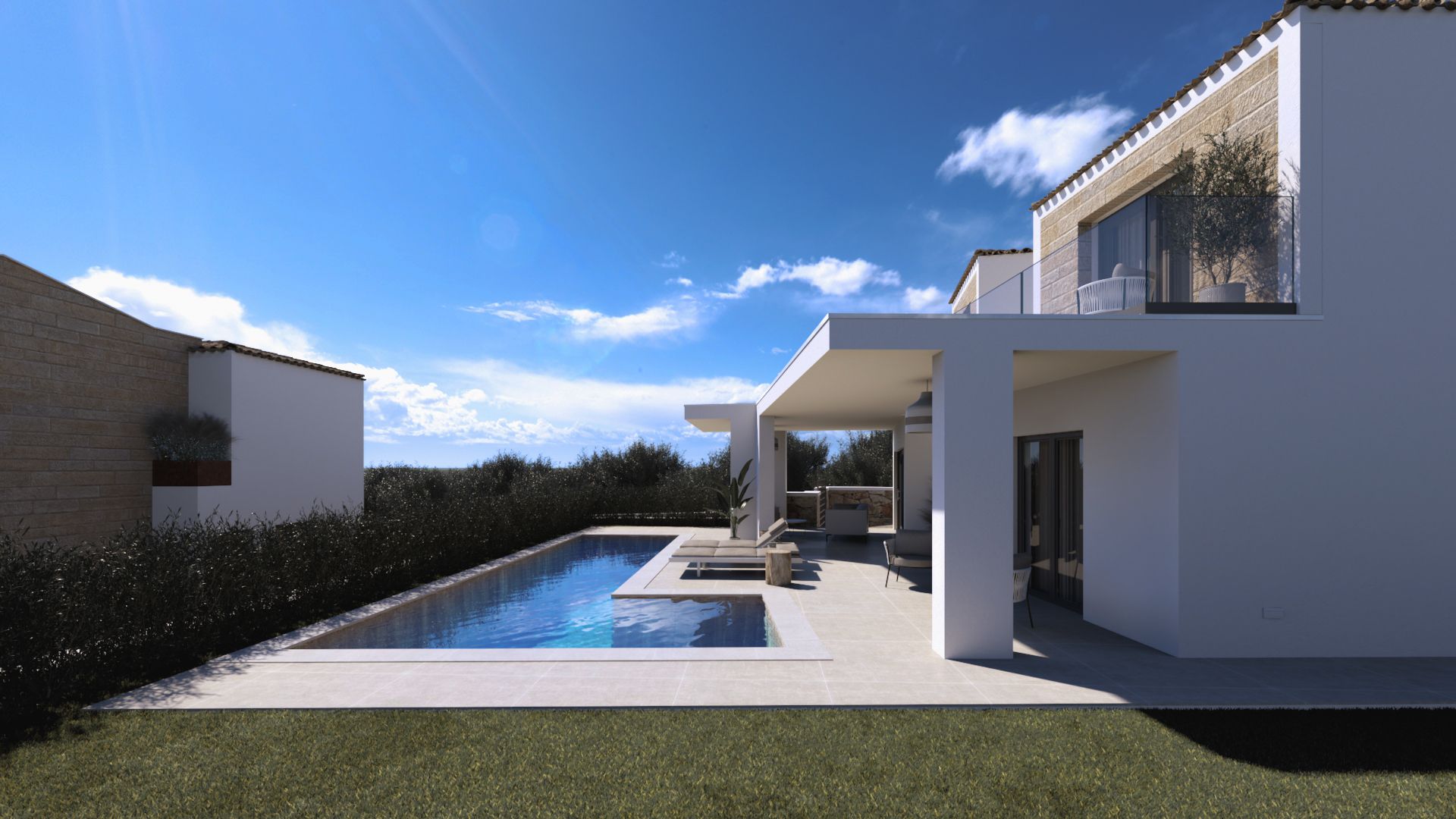 Binnen zorgen grote aluminium schuiframen met dubbele beglazing voor een prachtige lichtinval en een naadloze overgang tussen binnen en buiten. Dit creëert een open, luchtig gevoel dat perfect past bij het mediterrane leven. Dankzij de geïntegreerde zonnepanelen profiteer je bovendien van energie-efficiëntie en lagere kosten, een waardevolle investering voor de toekomst.